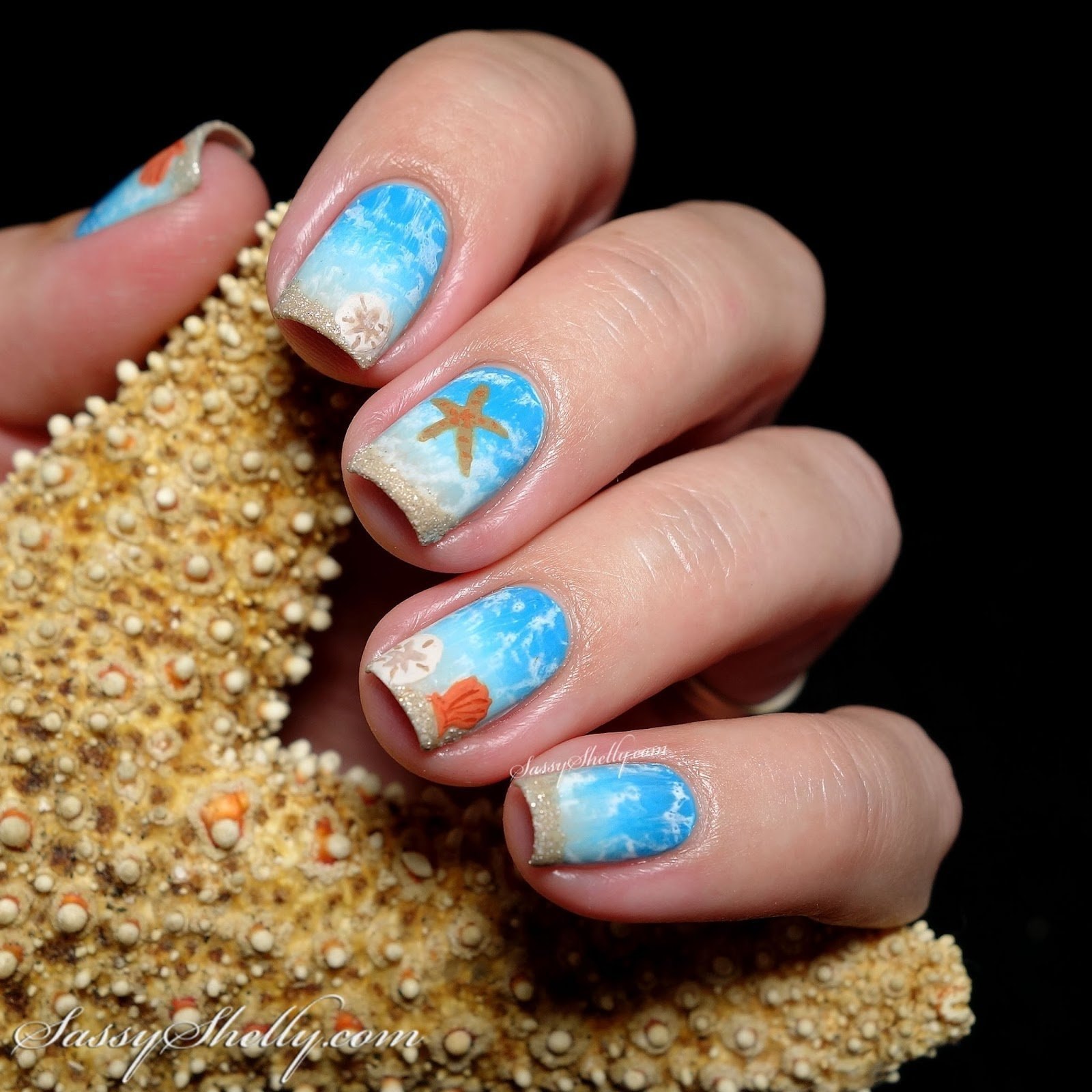 Пляжный маникюр с ракушкой