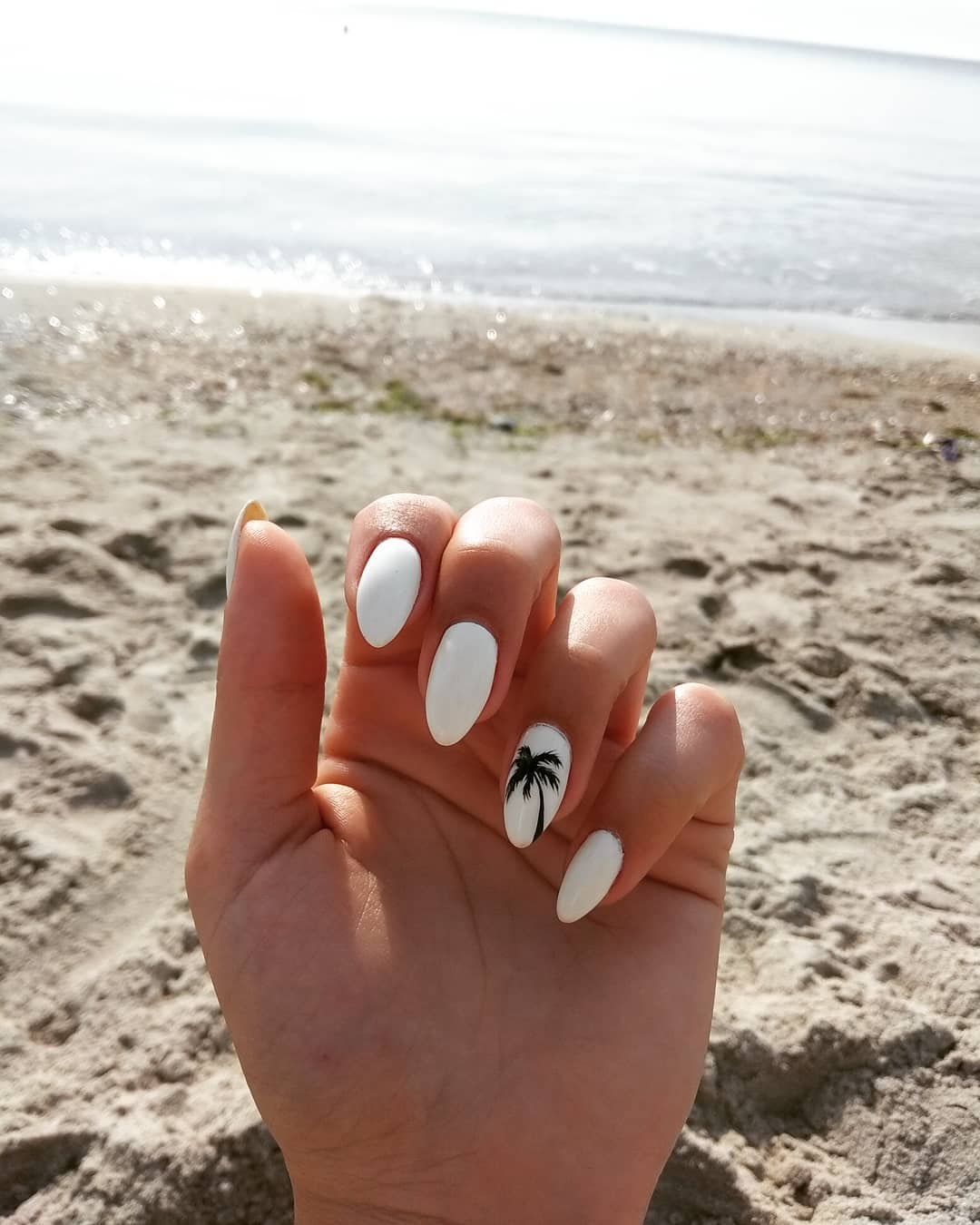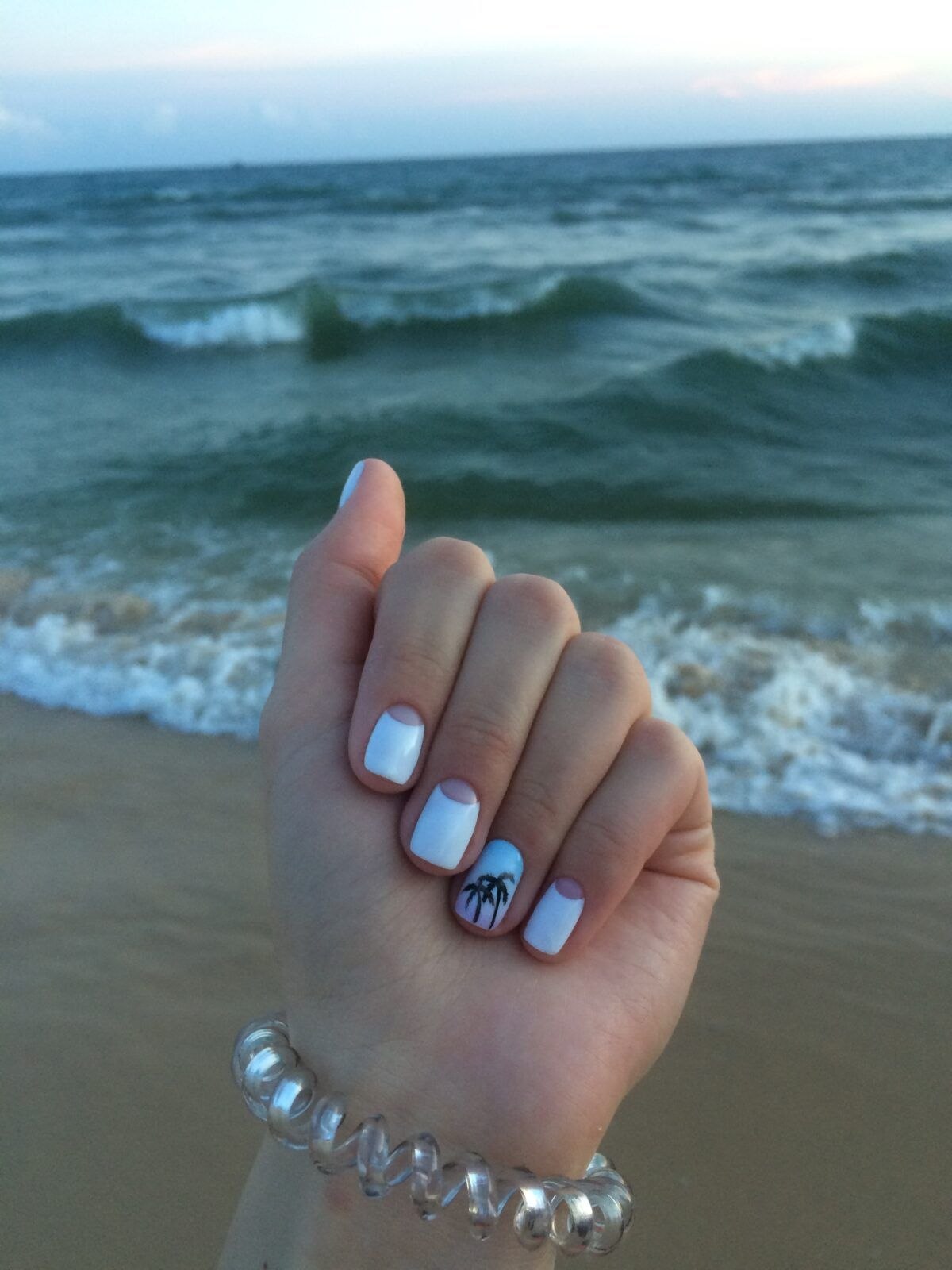 Белый маникюр на море
