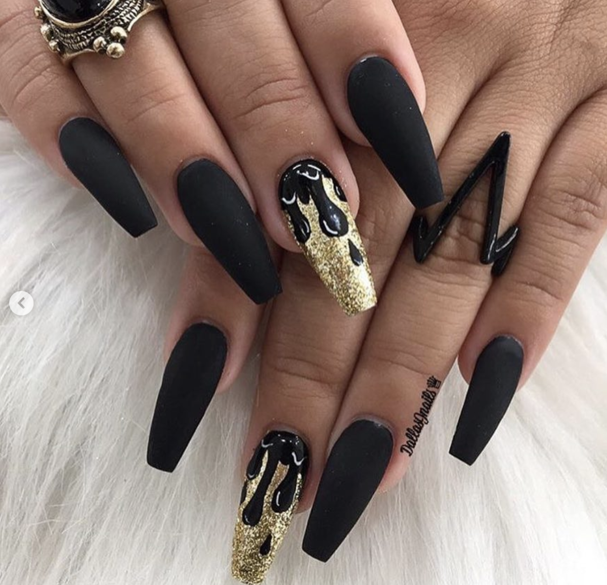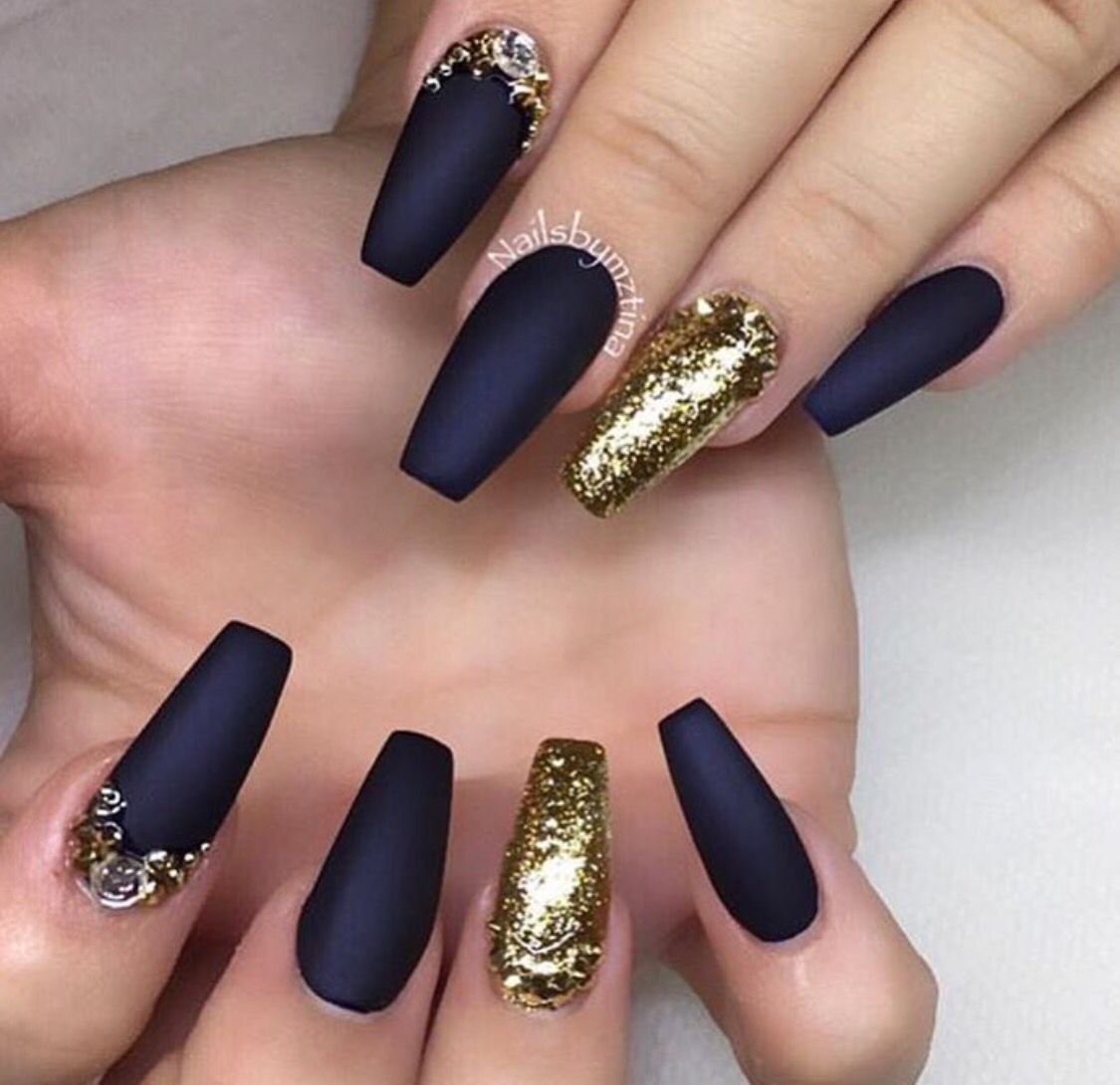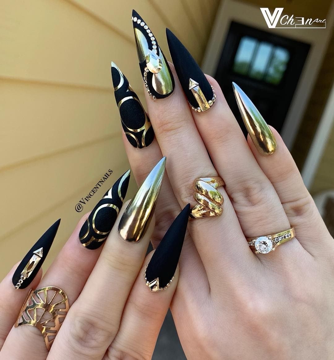 Ногти балерина черные с золотом