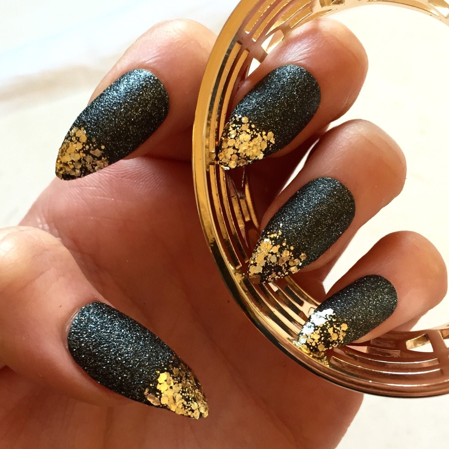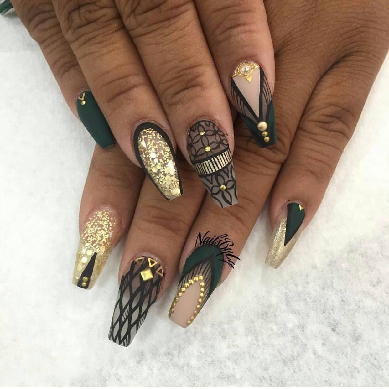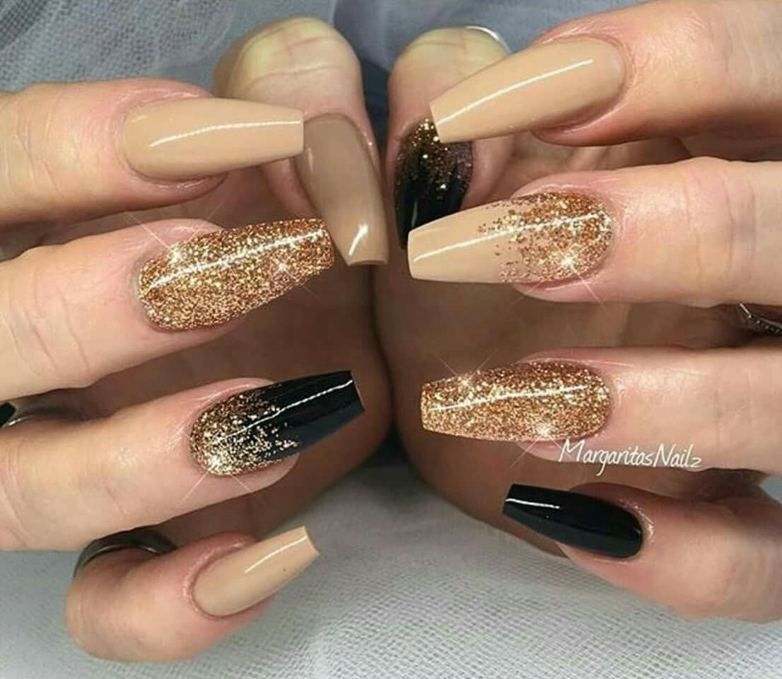 Ногти балерина черные с золотом
