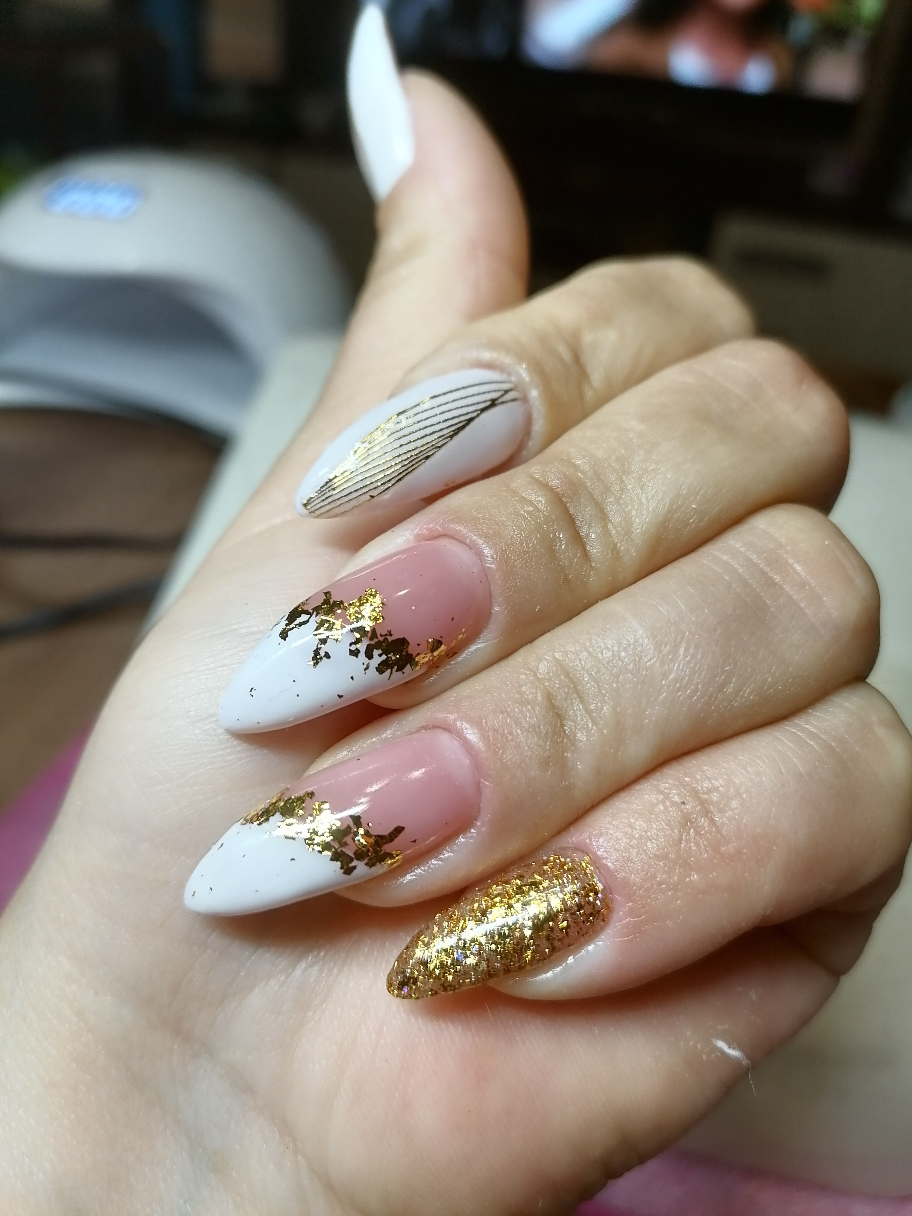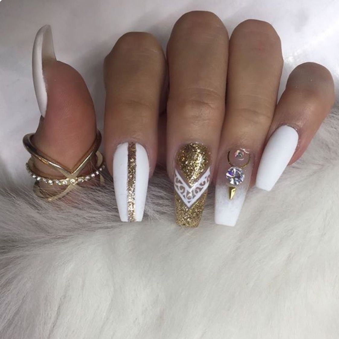 Ногти белые с золотом