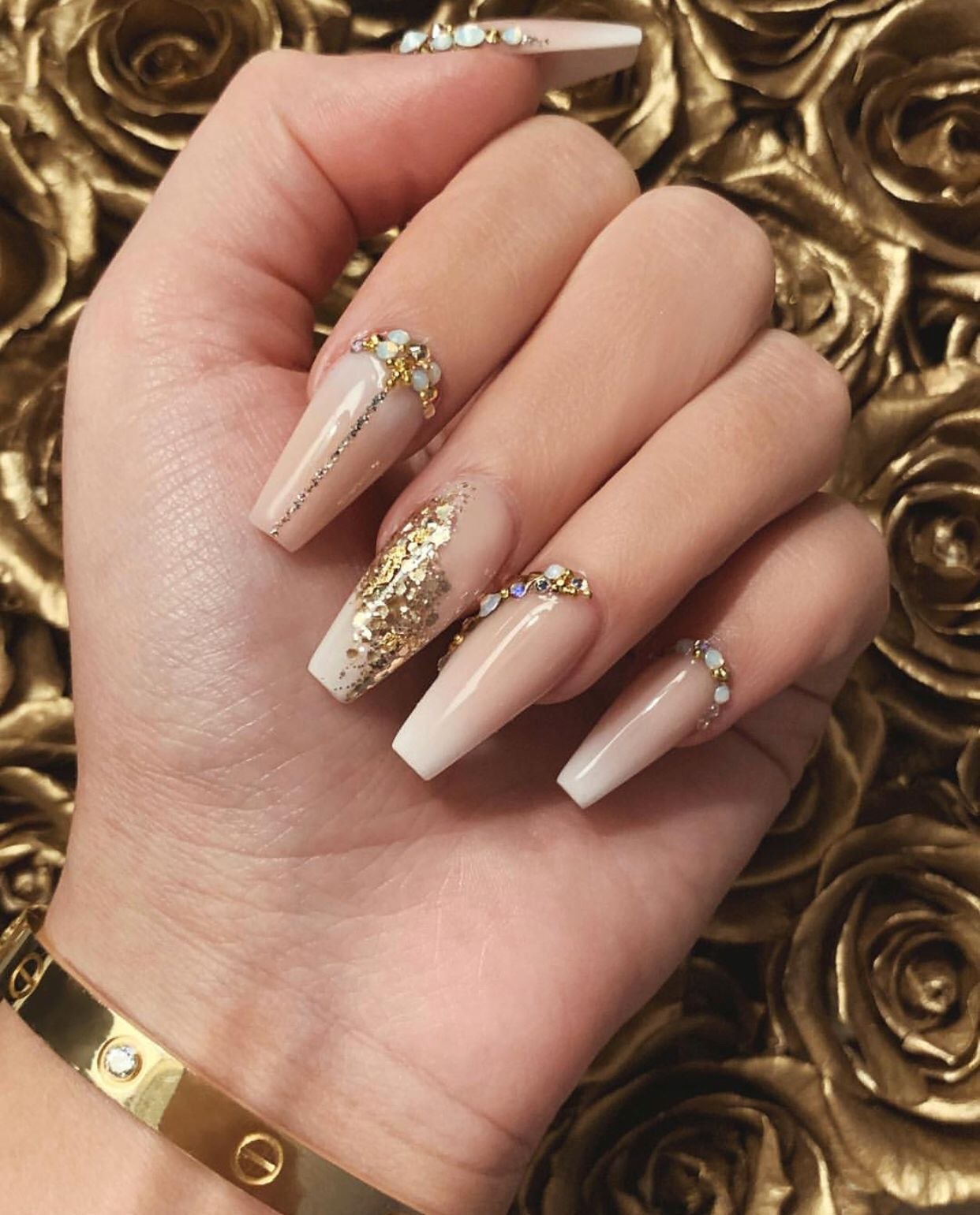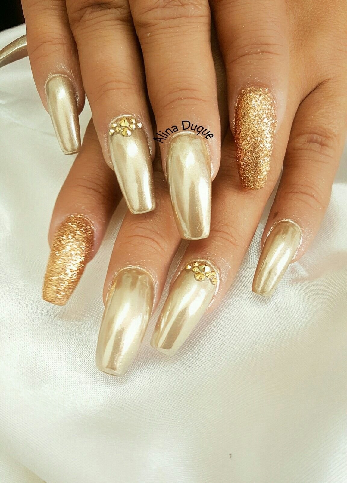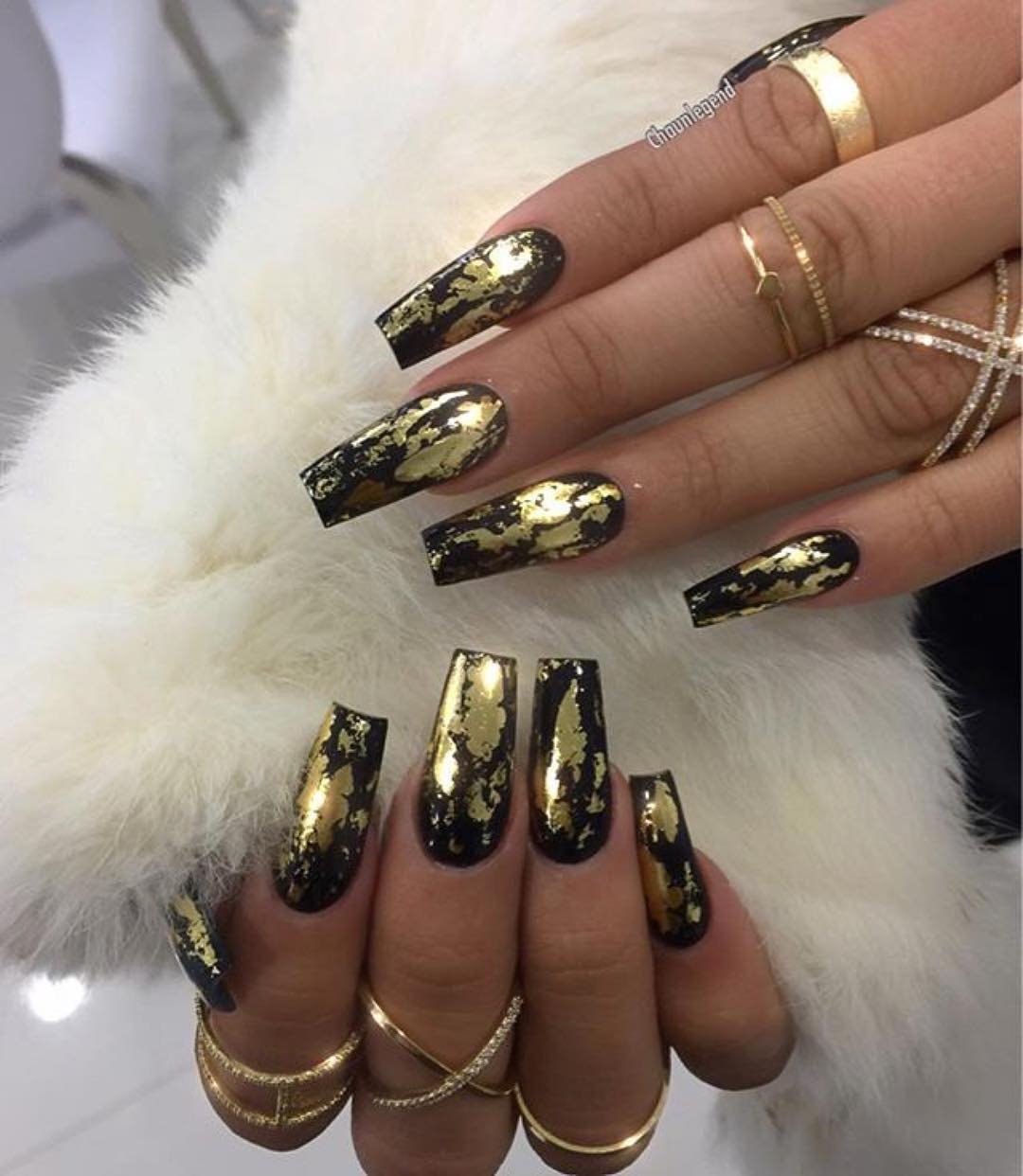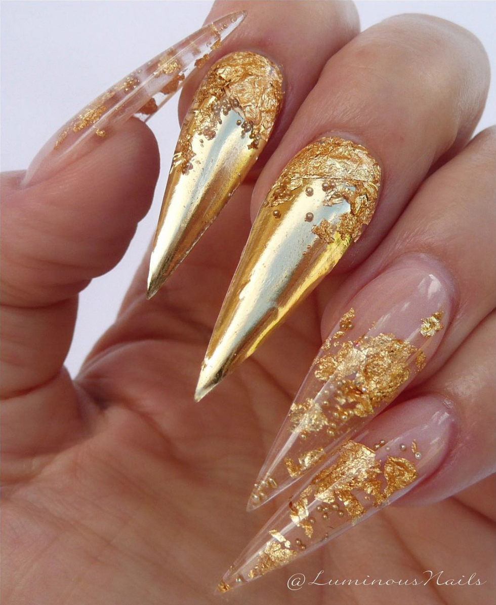 Маникюр с золотом на длинные ногти