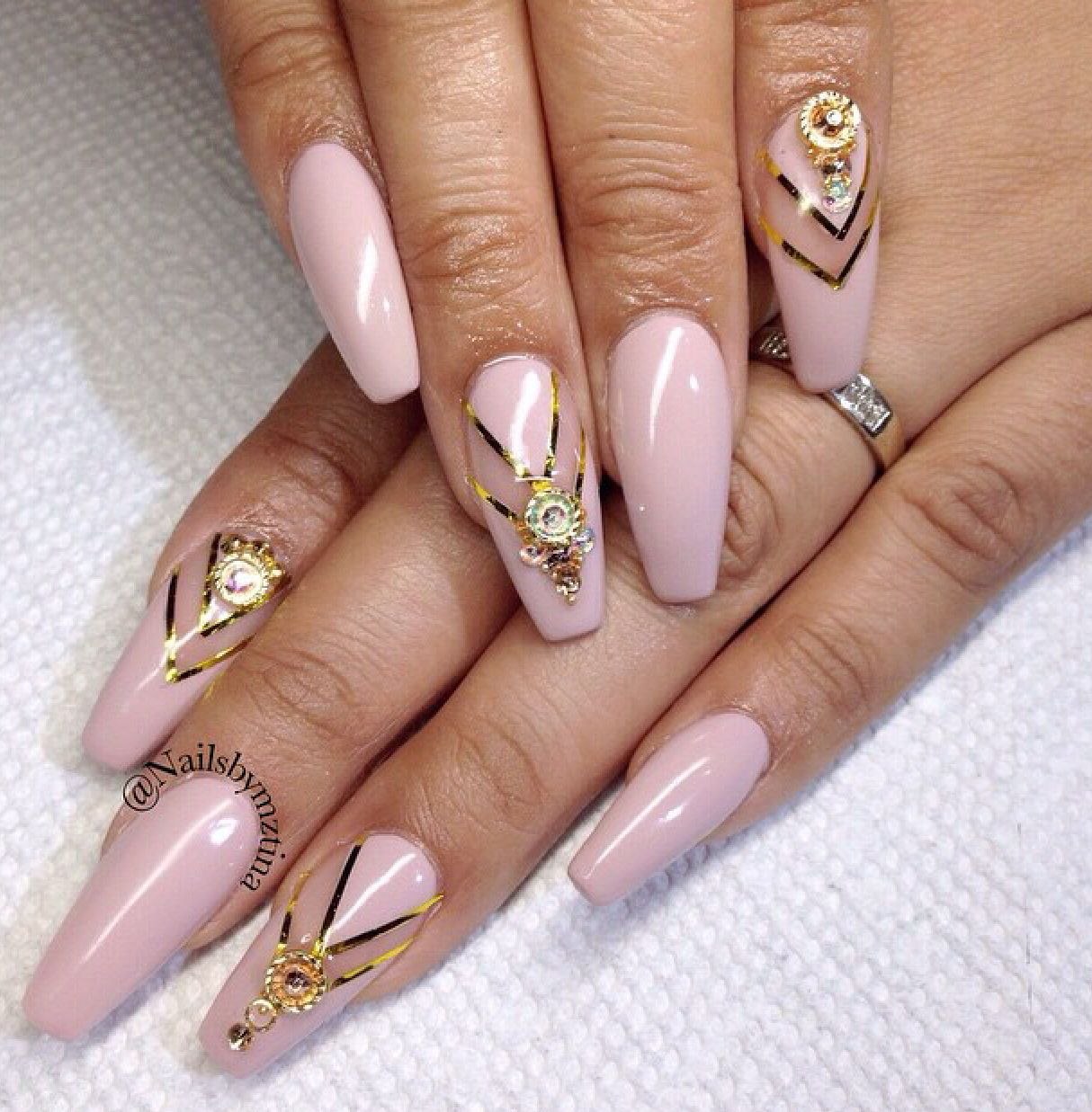 Маникюр розовый с золотом длинные