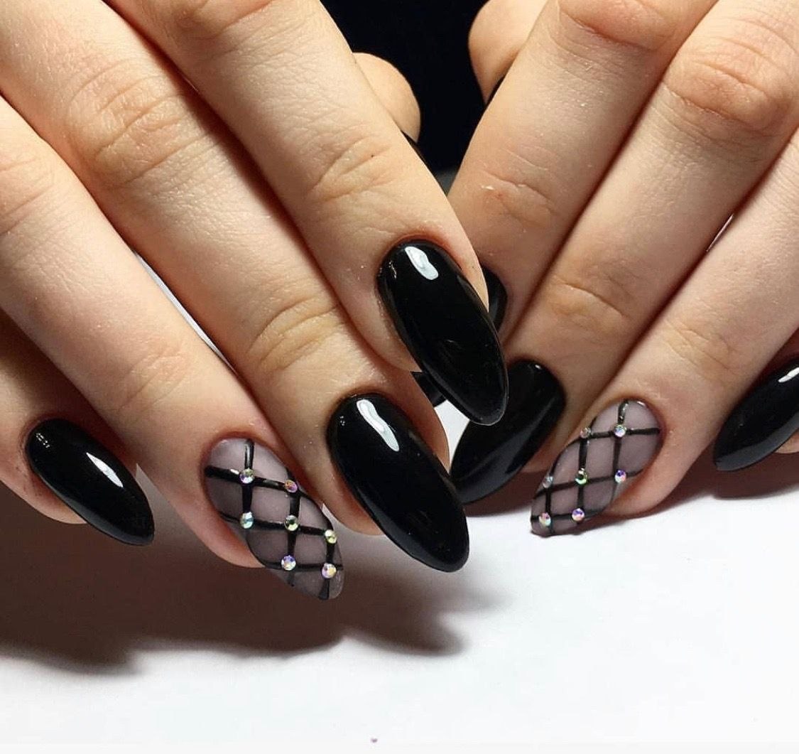 Чёрный маникюр со стразами