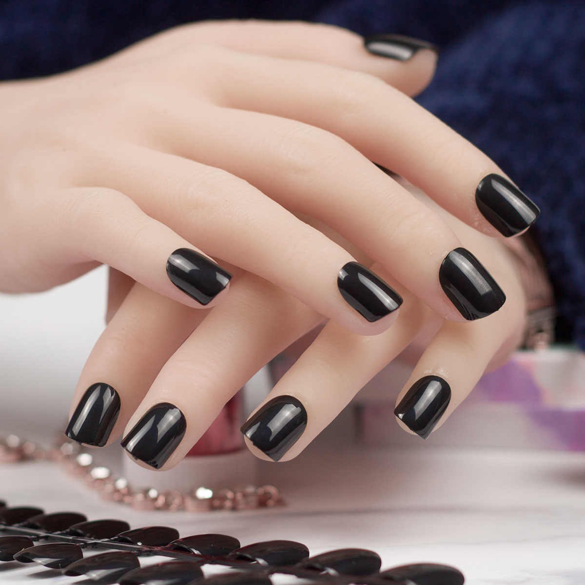 Черные глянцевые ногти