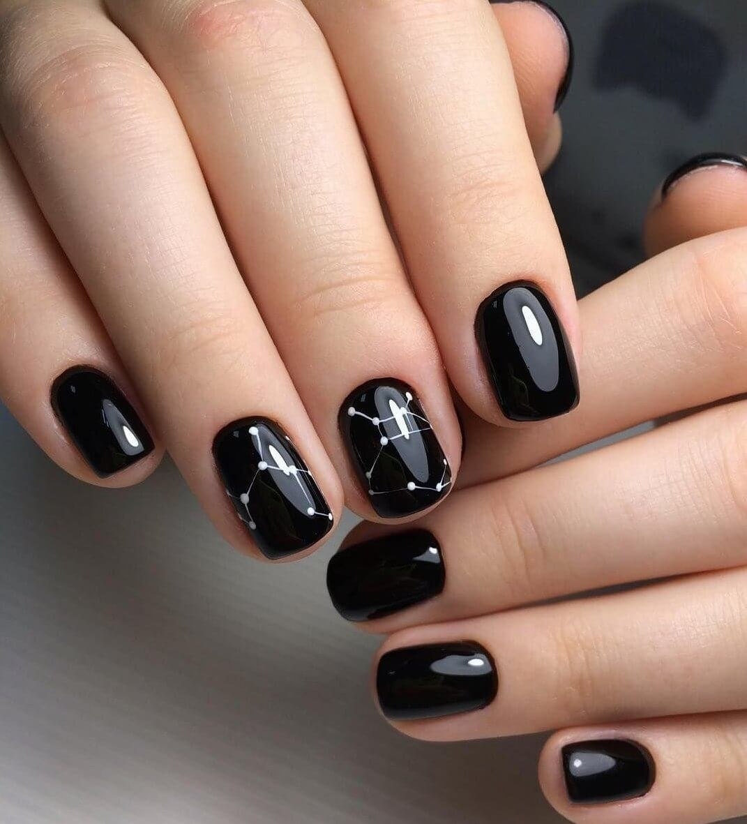 Чёрный маникюр на короткие ногти 2020