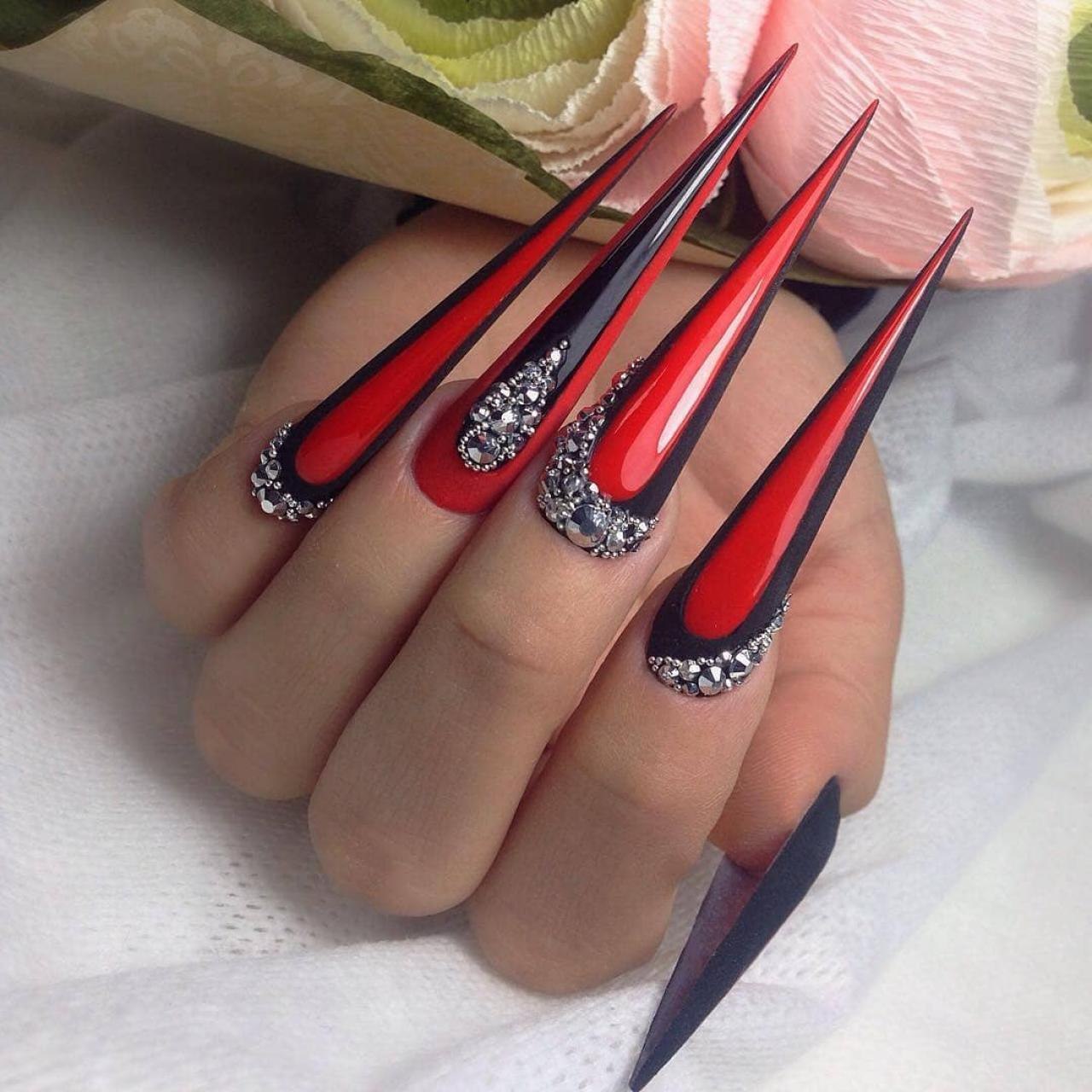Маникюр стилеты длинные красные