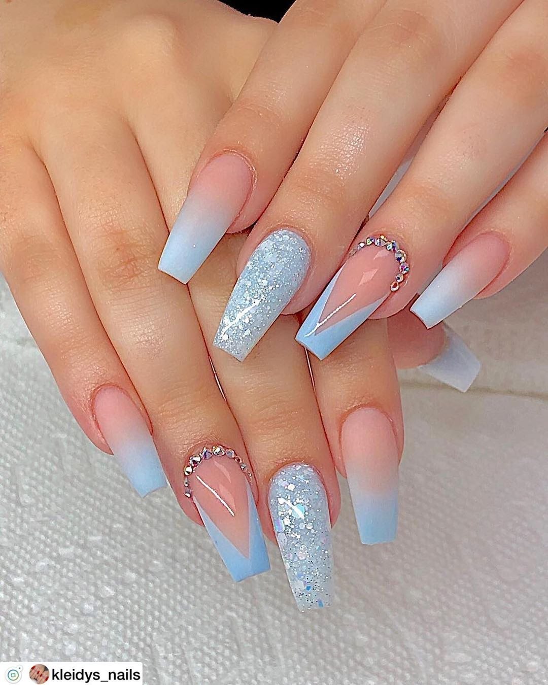 Голубой маникюр на длинные ногти