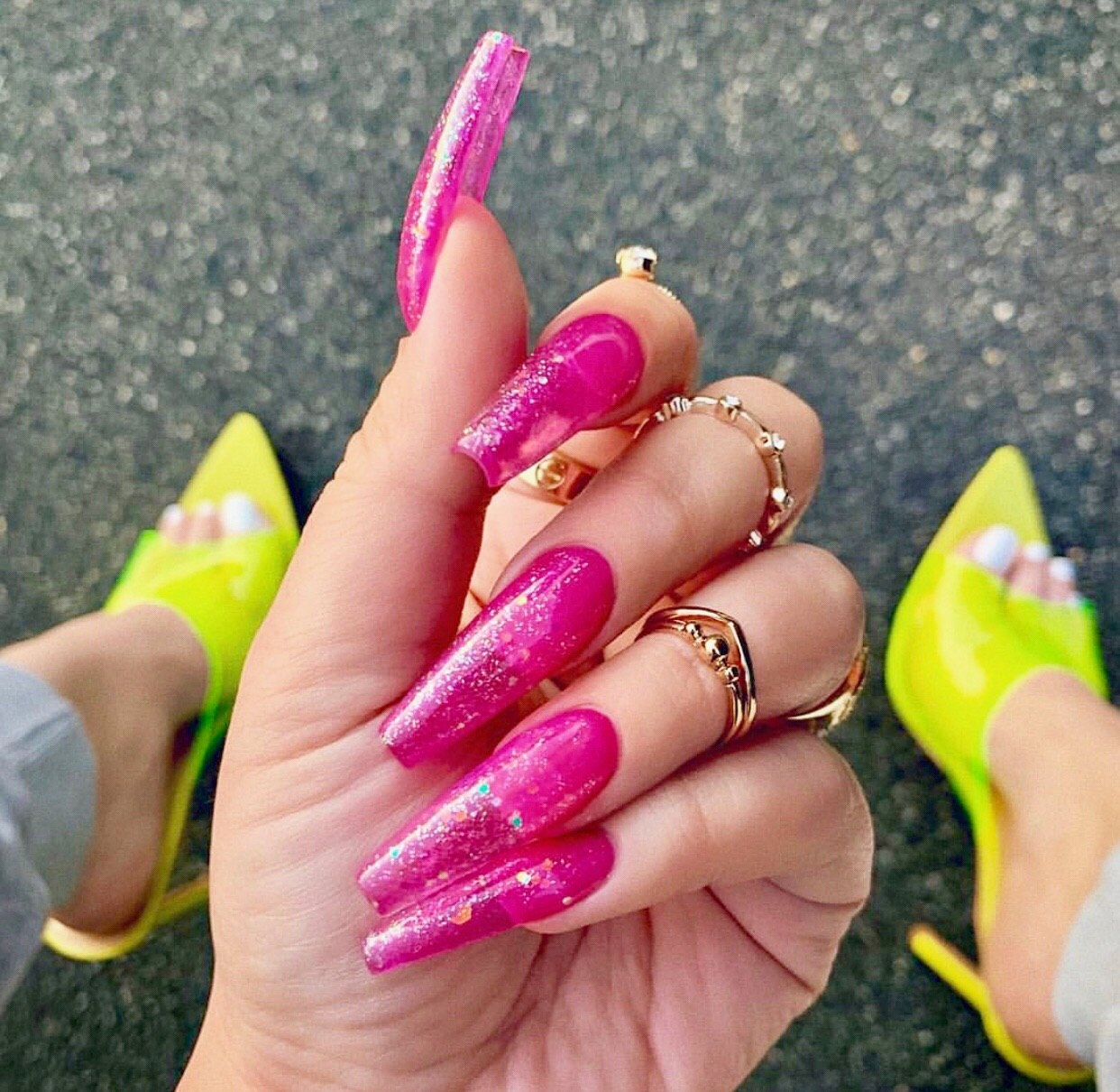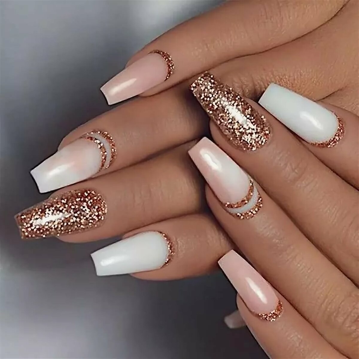 Блестящий маникюр на длинные квадратные ногти