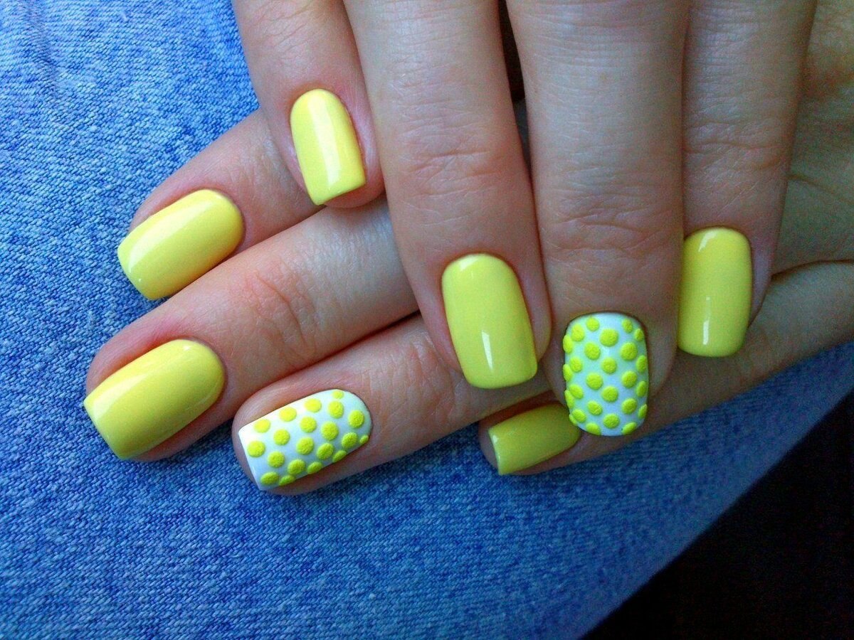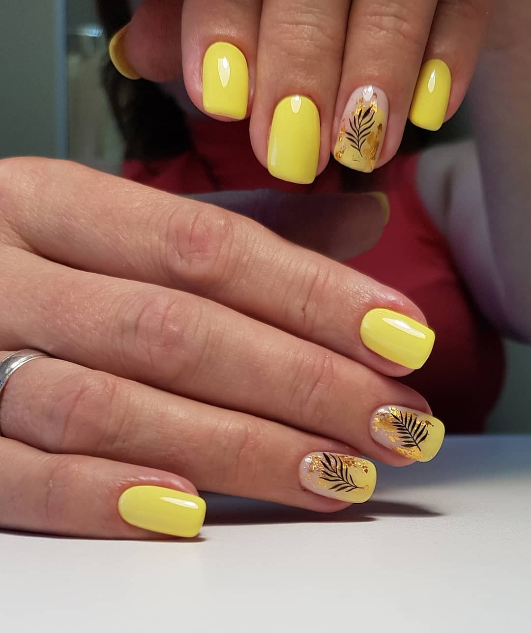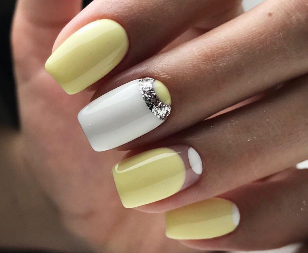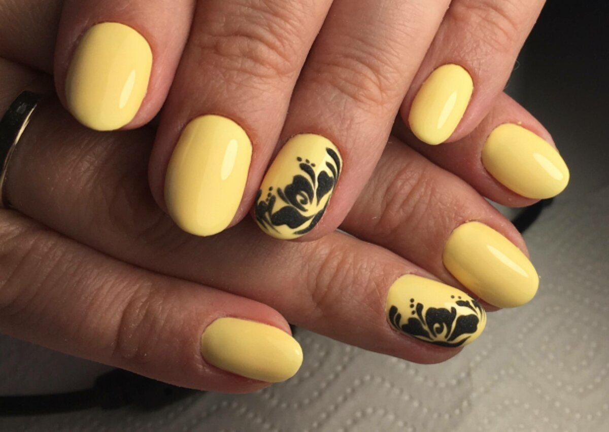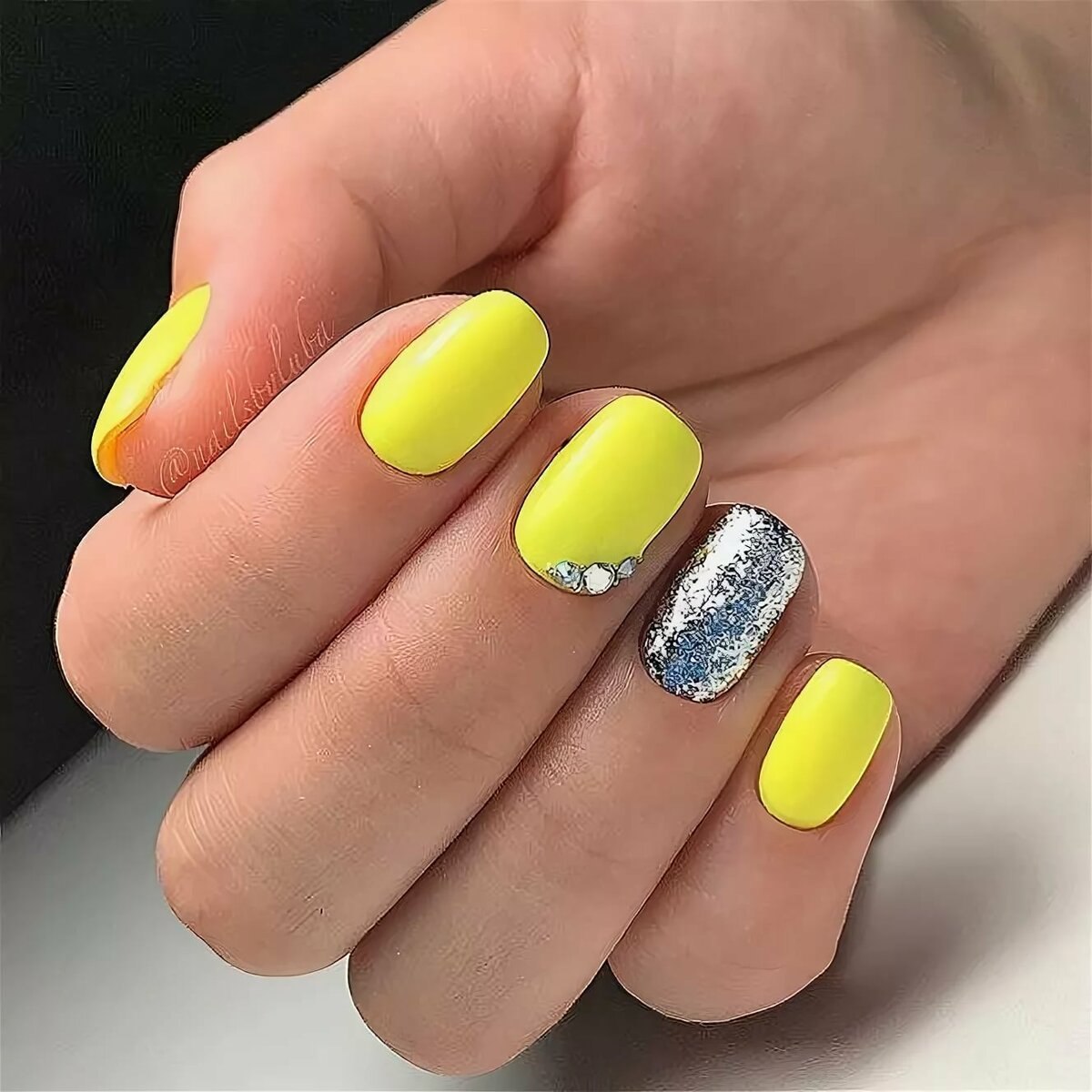 Гель лак желтый дизайн с другими цветами на ногтях (33 фото)