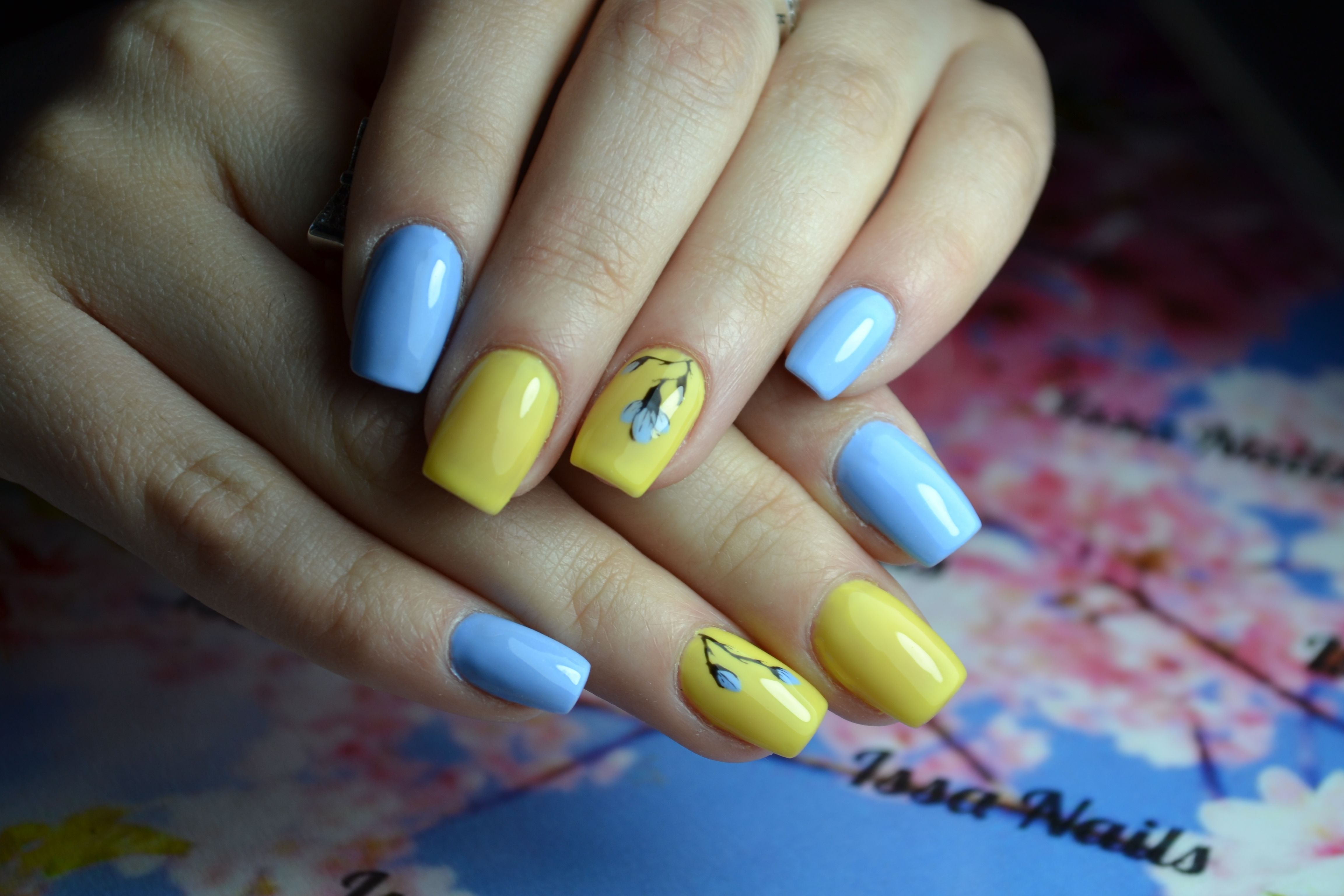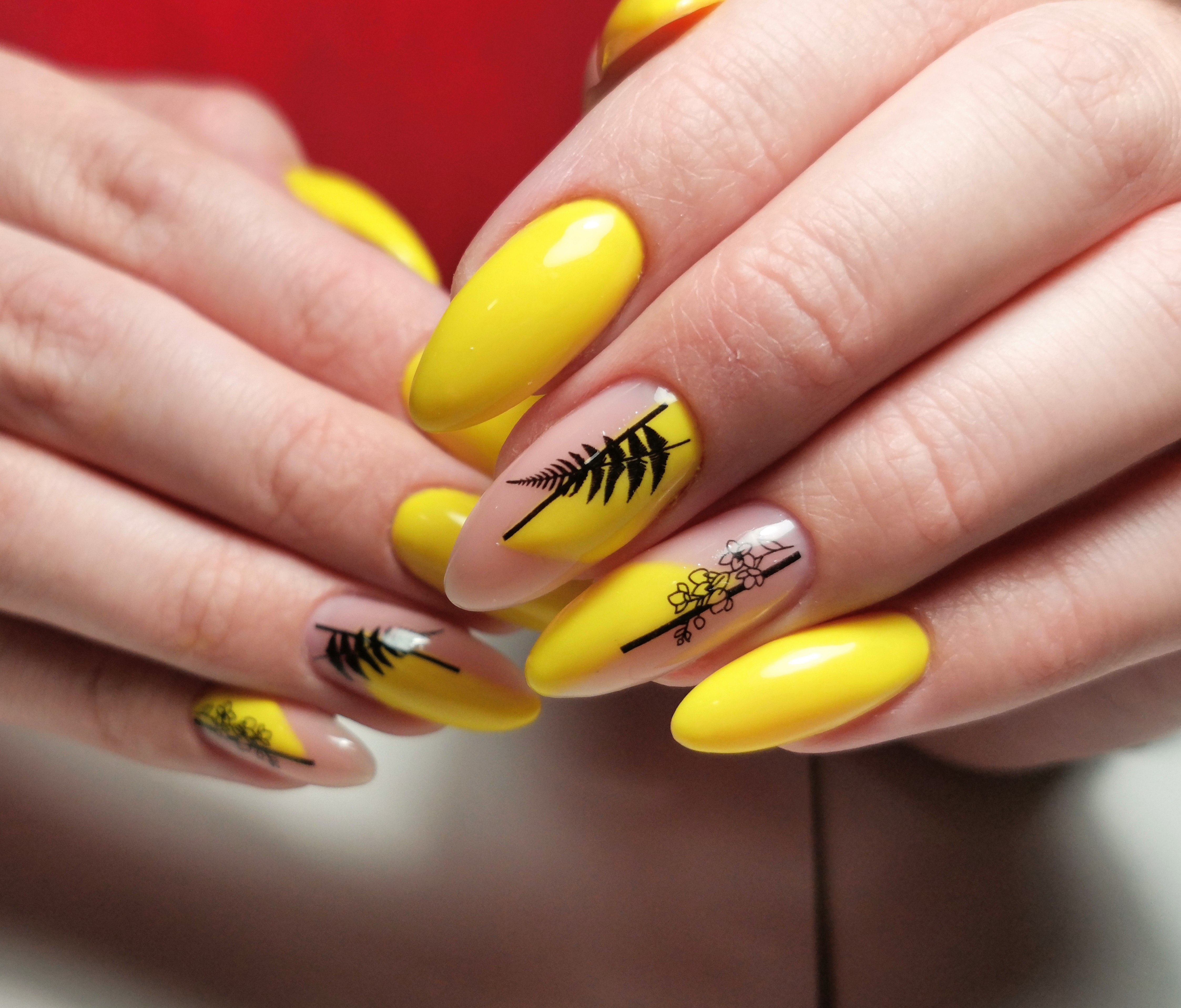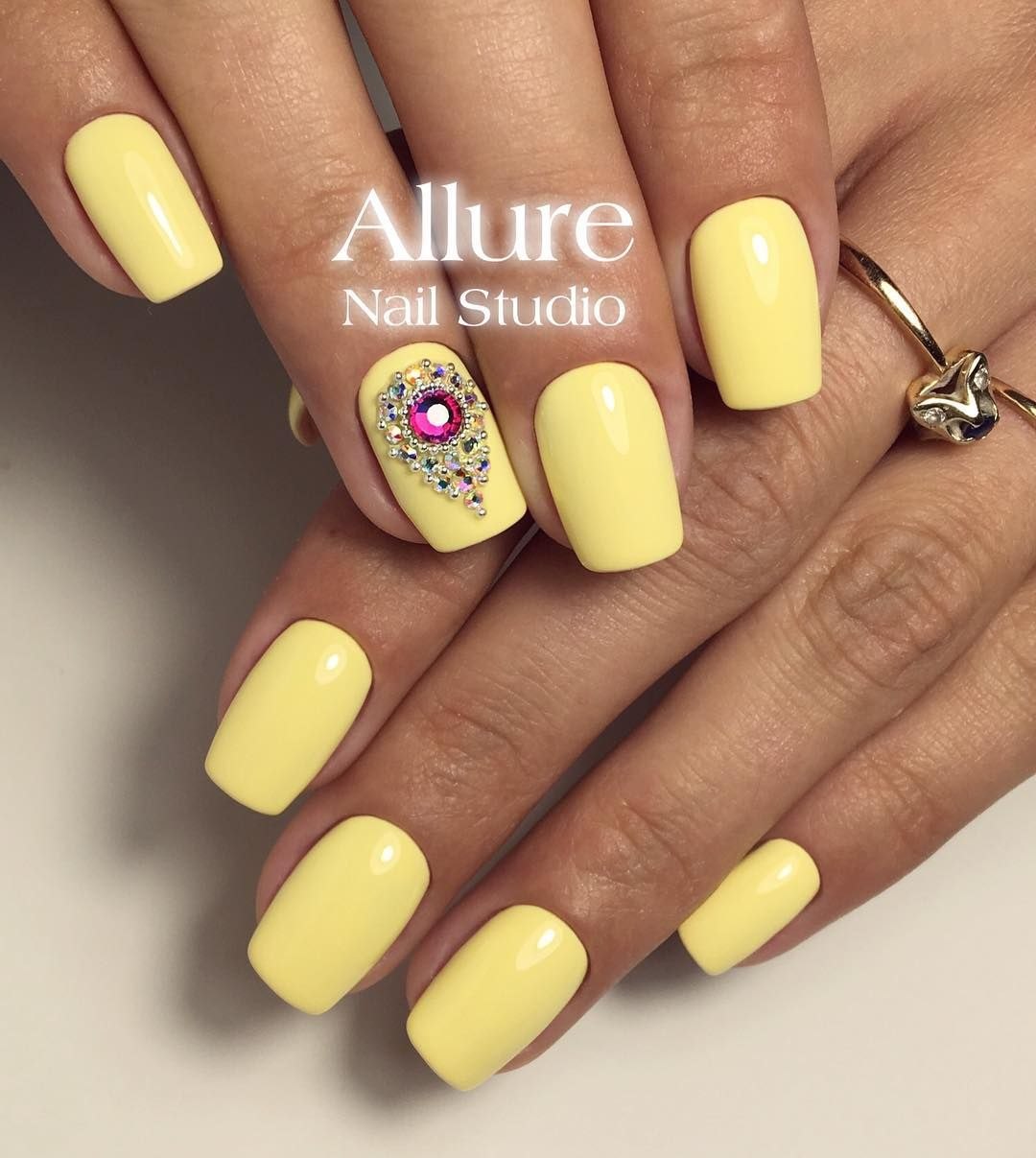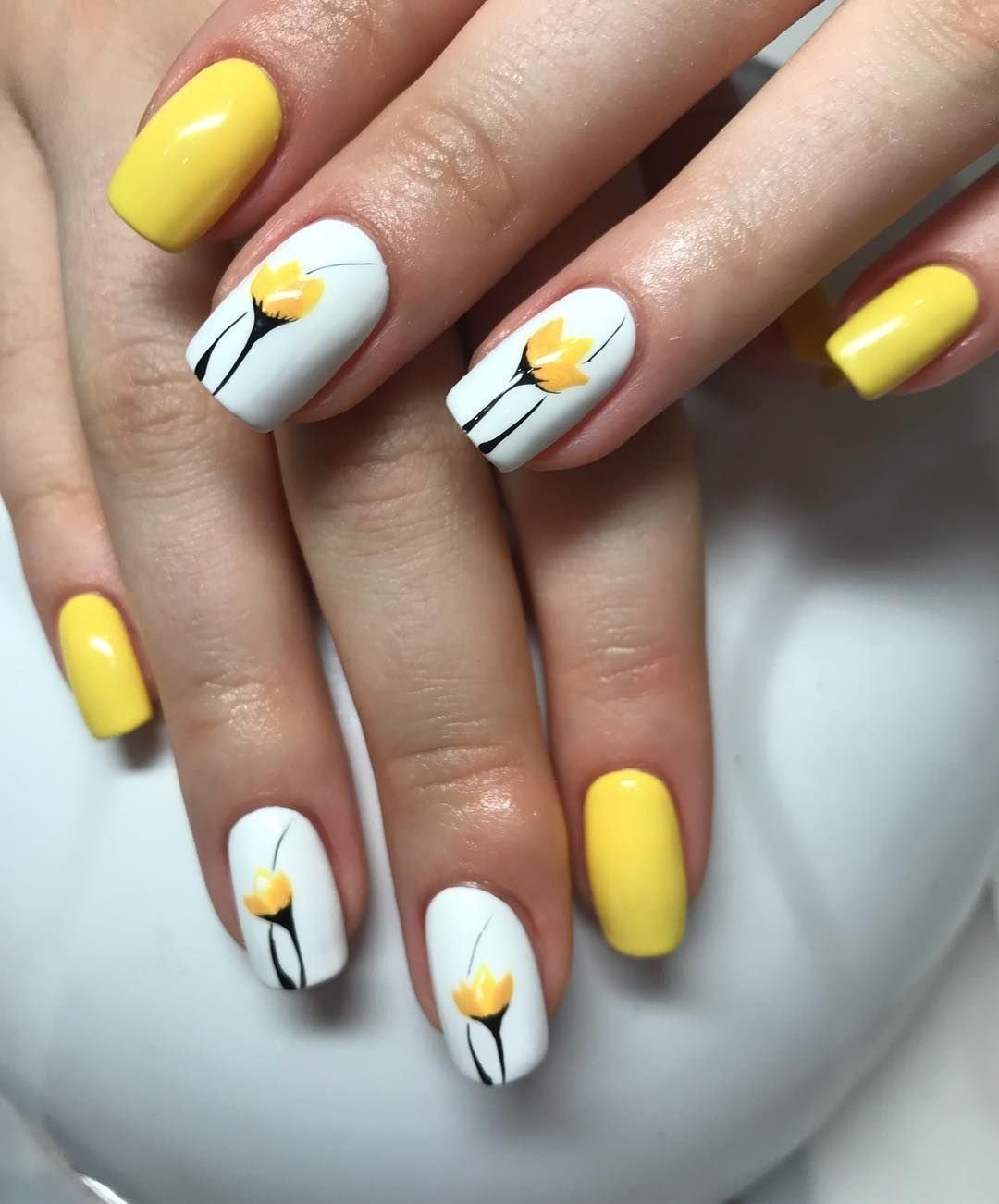 Гель лак желтый дизайн с другими цветами на ногтях (33 фото)