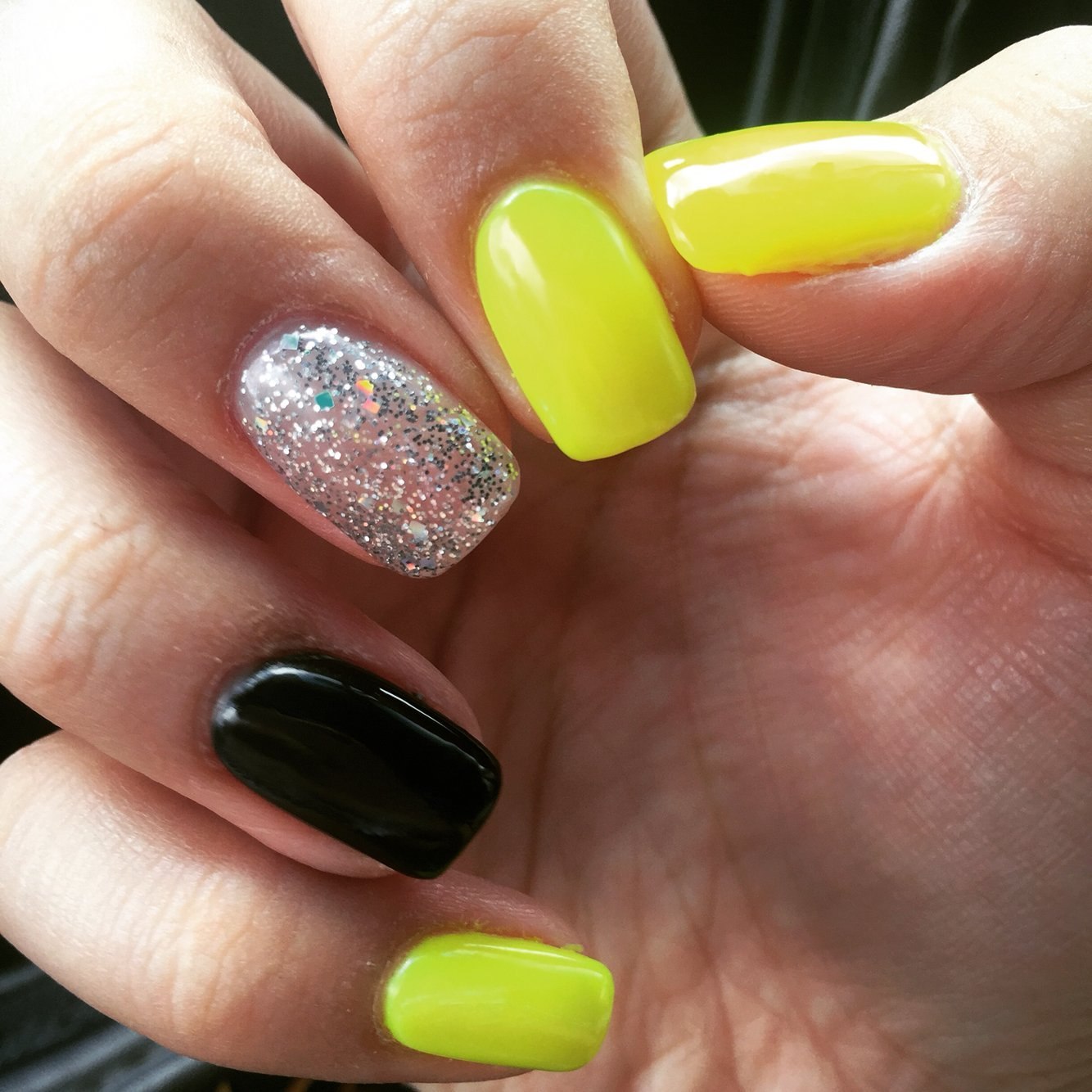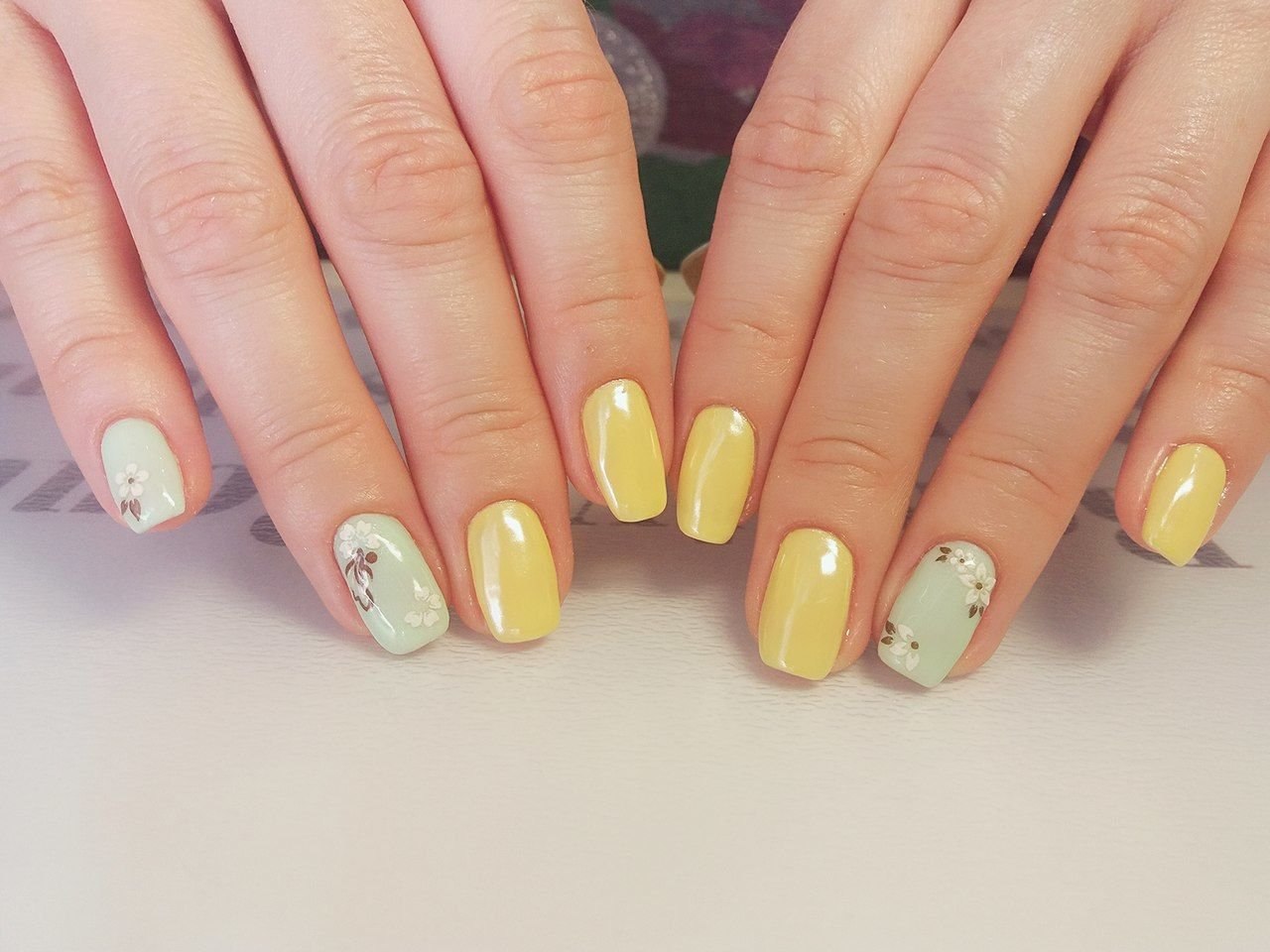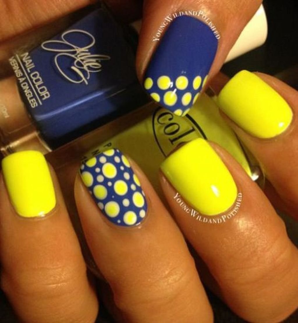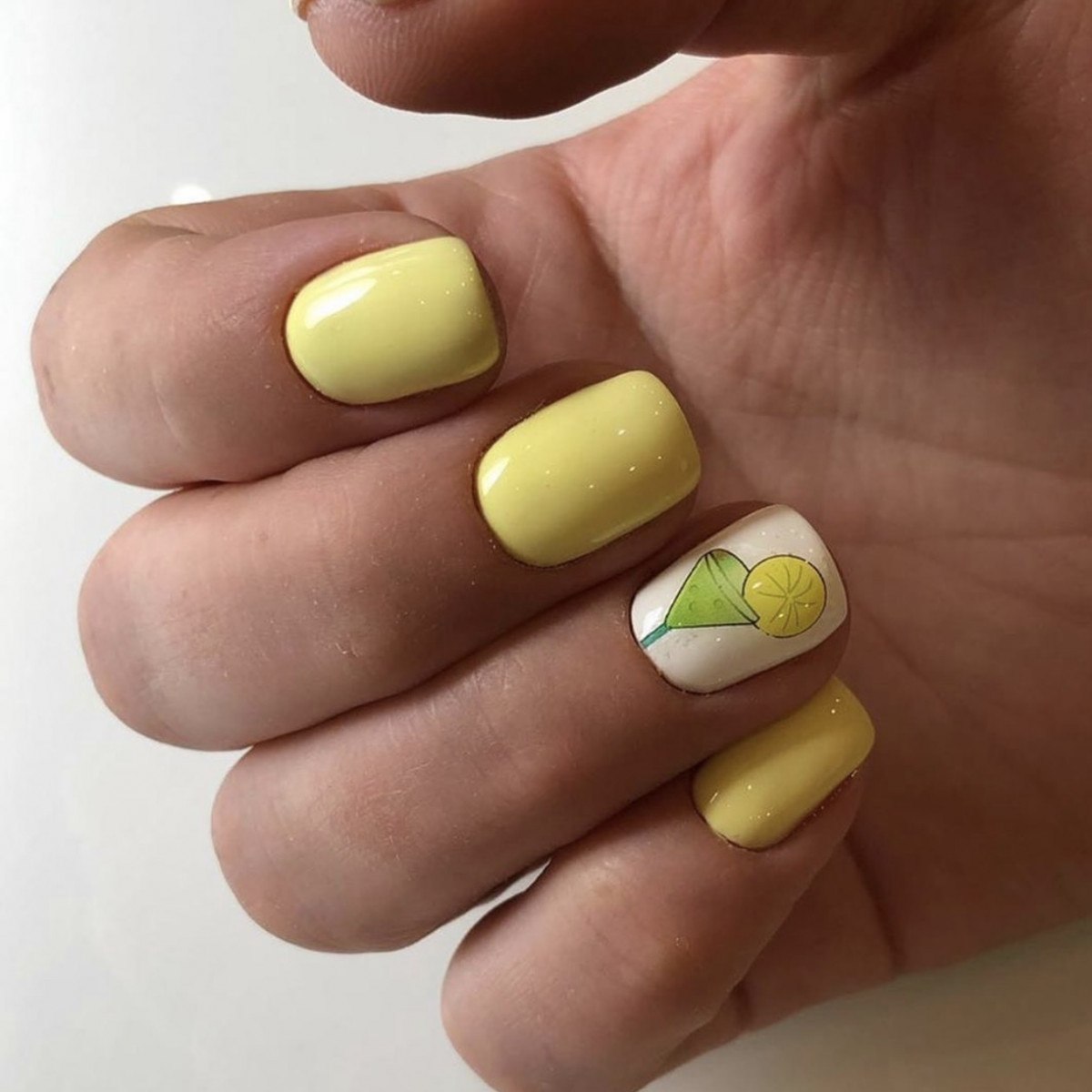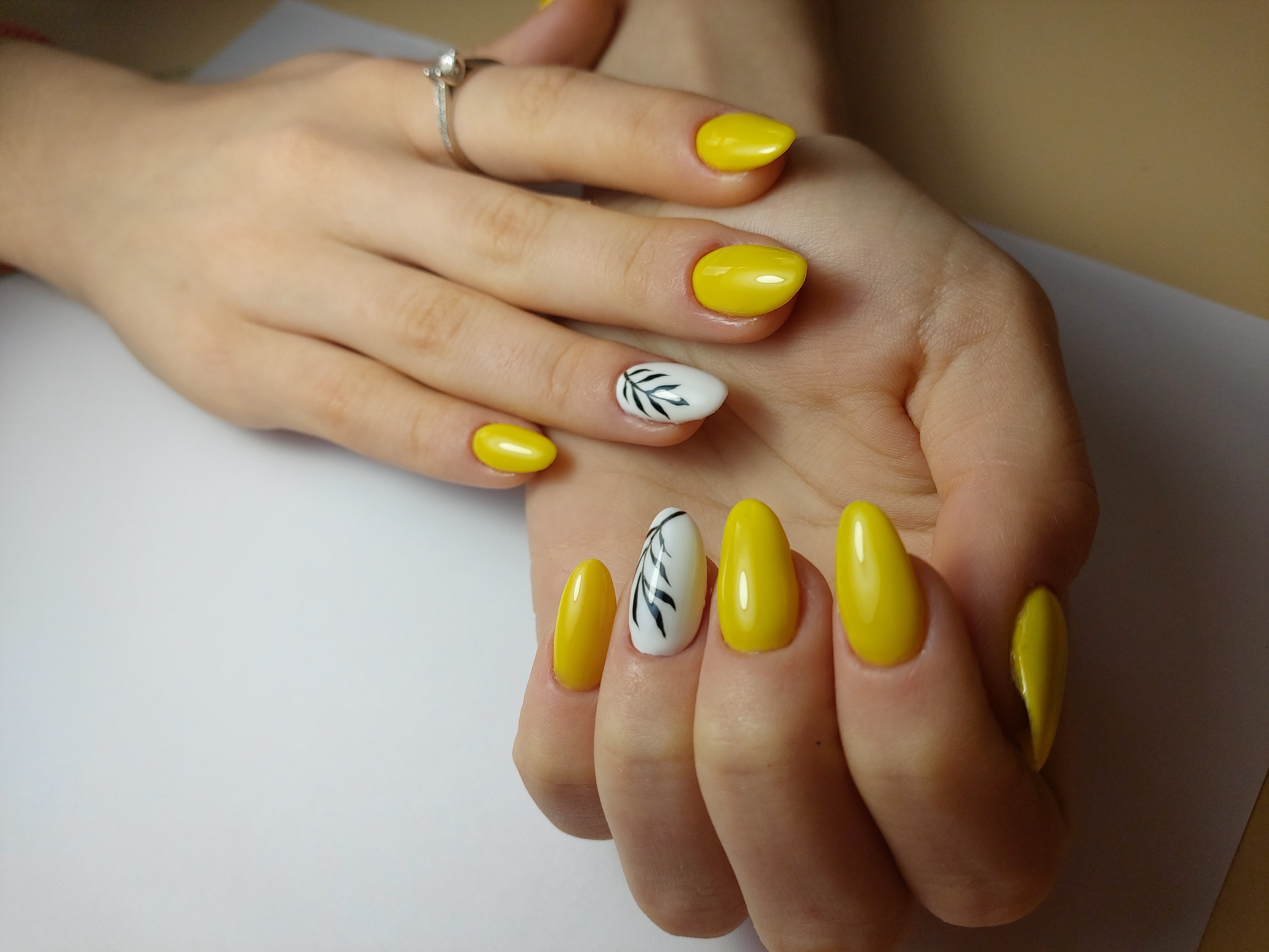 Гель лак желтый дизайн с другими цветами на ногтях (33 фото)