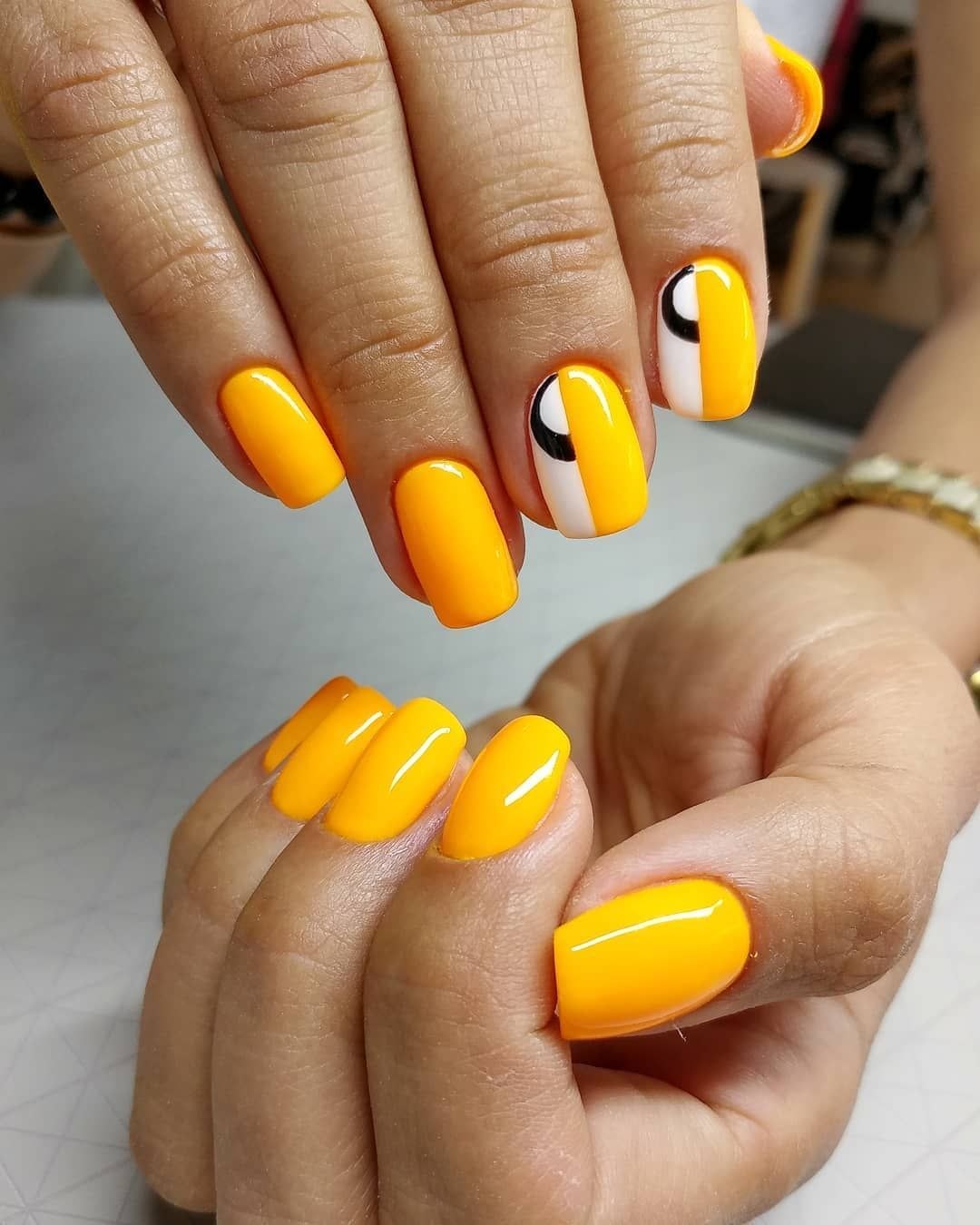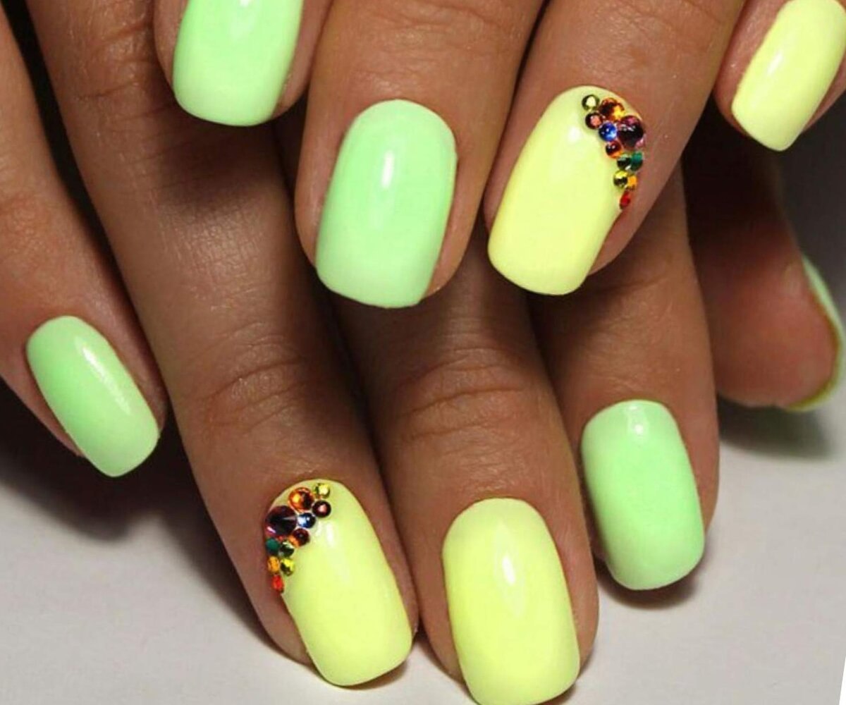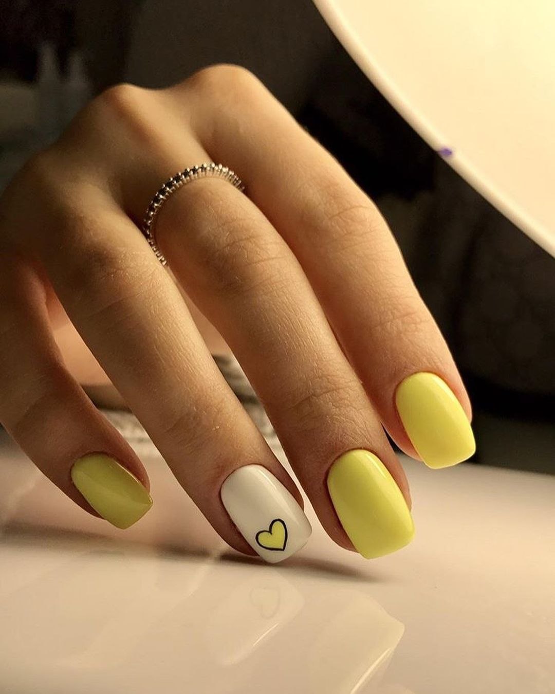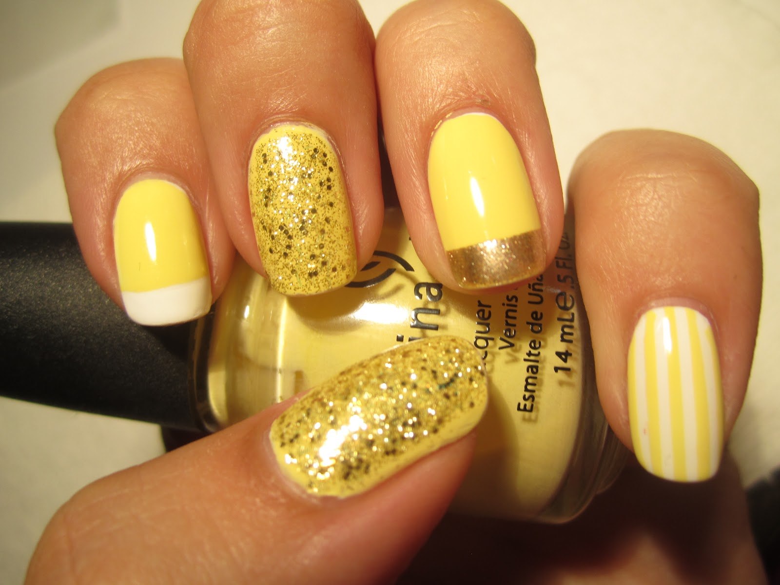 Гель лак желтый дизайн с другими цветами на ногтях (33 фото)