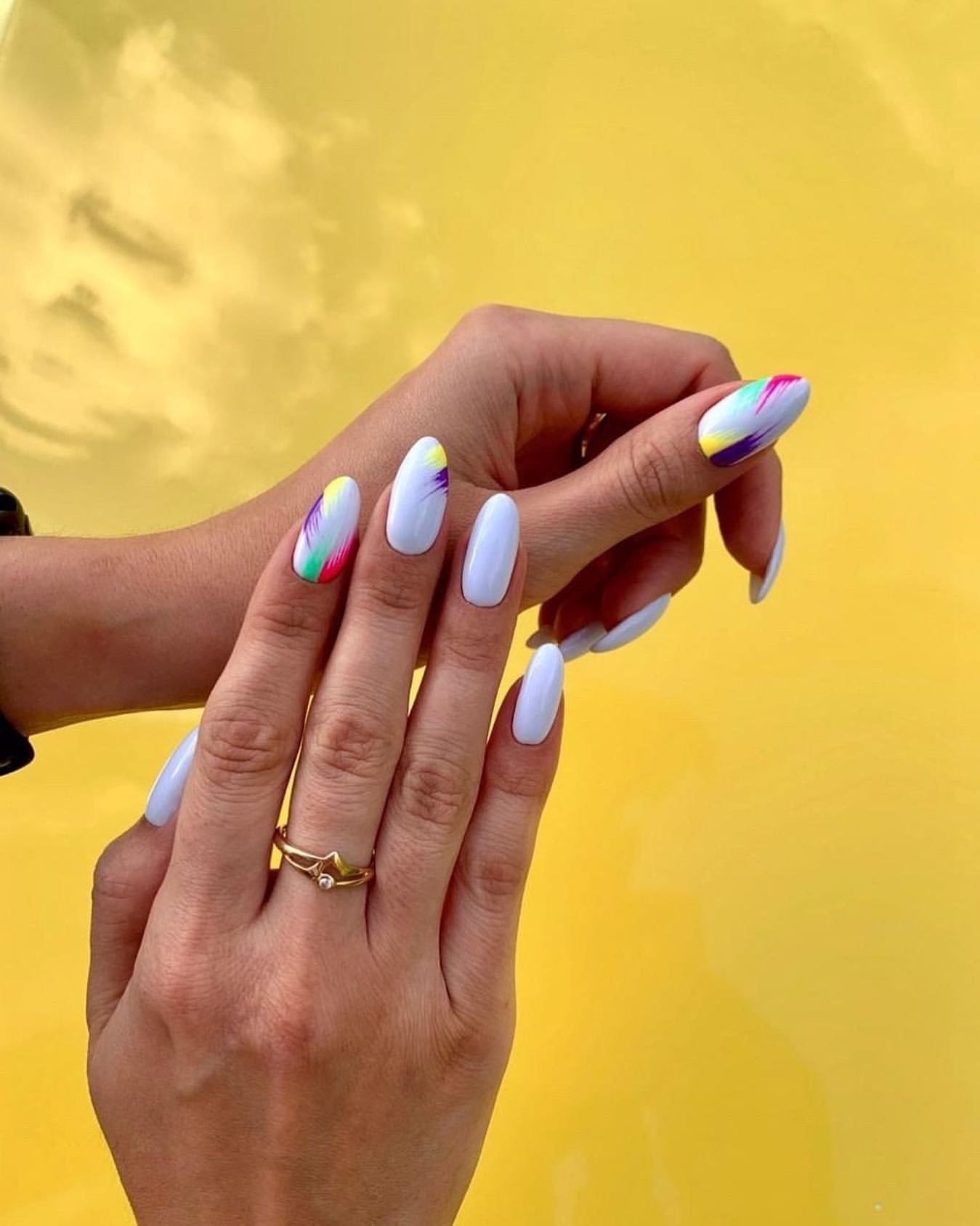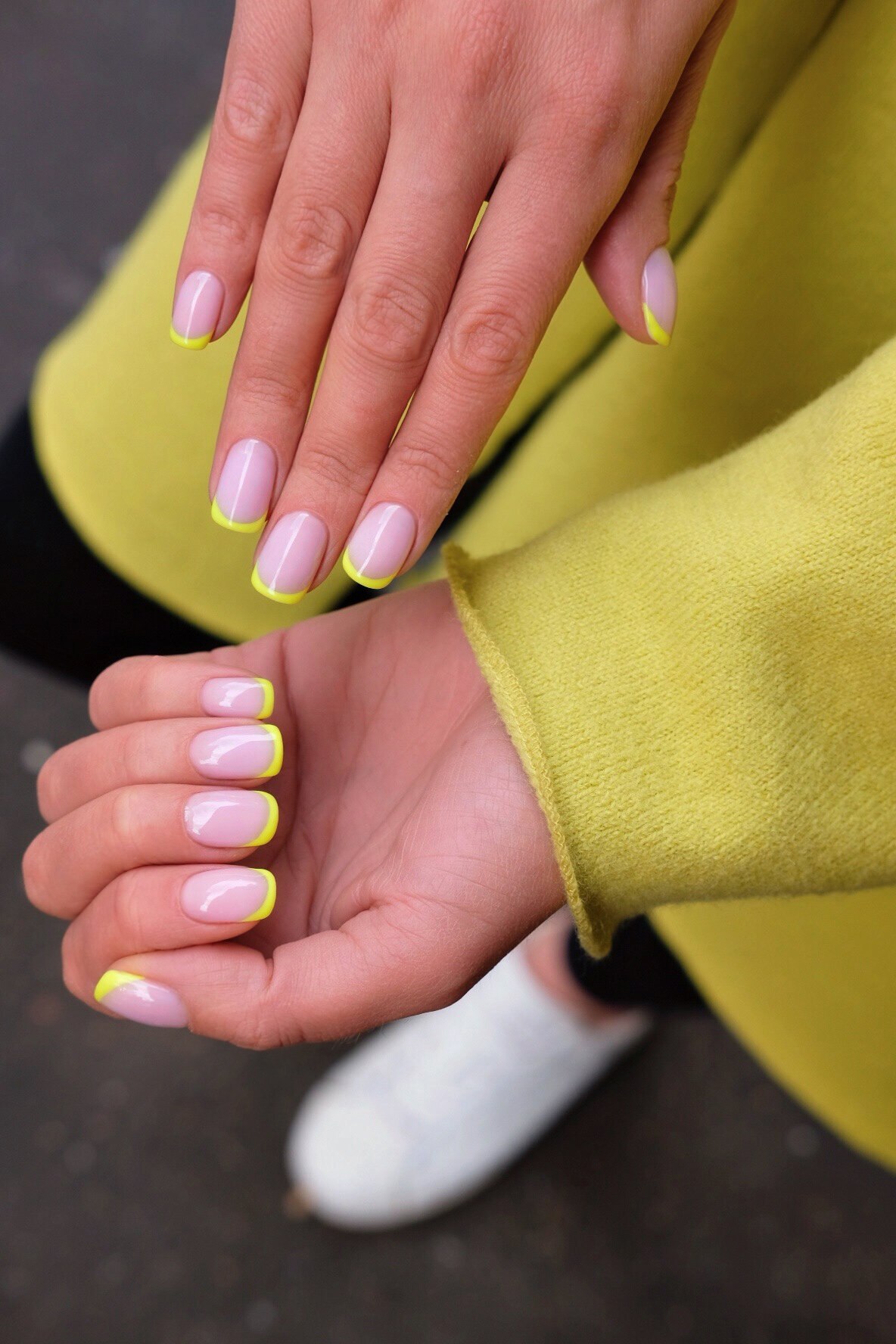 Желтый маникюр разные руки