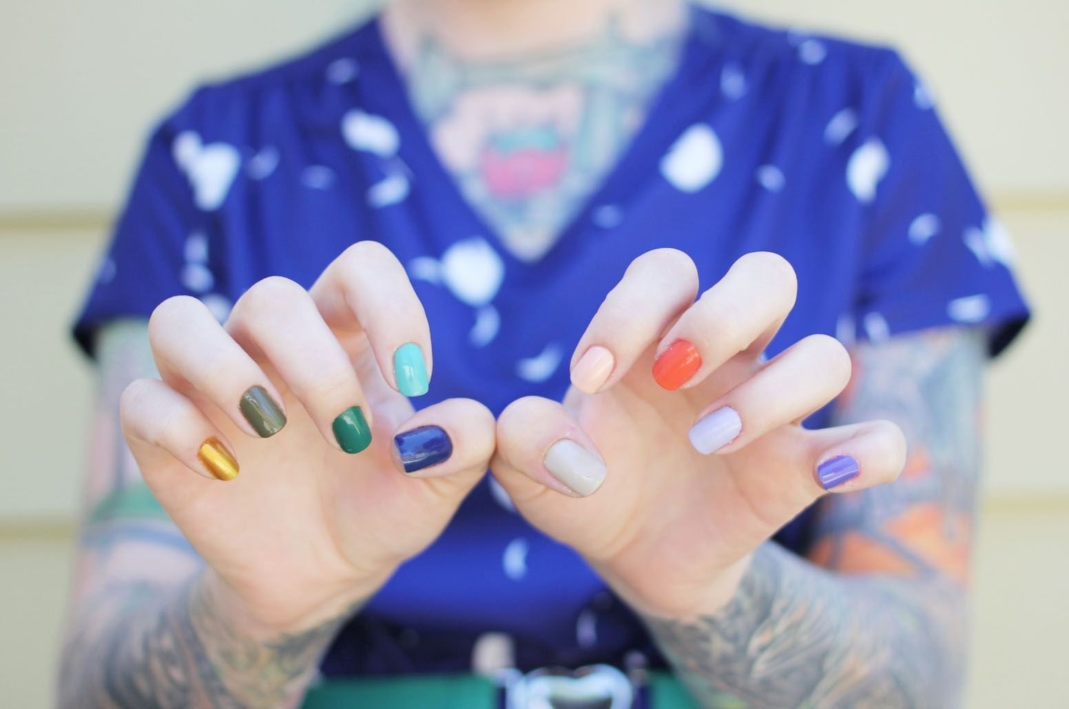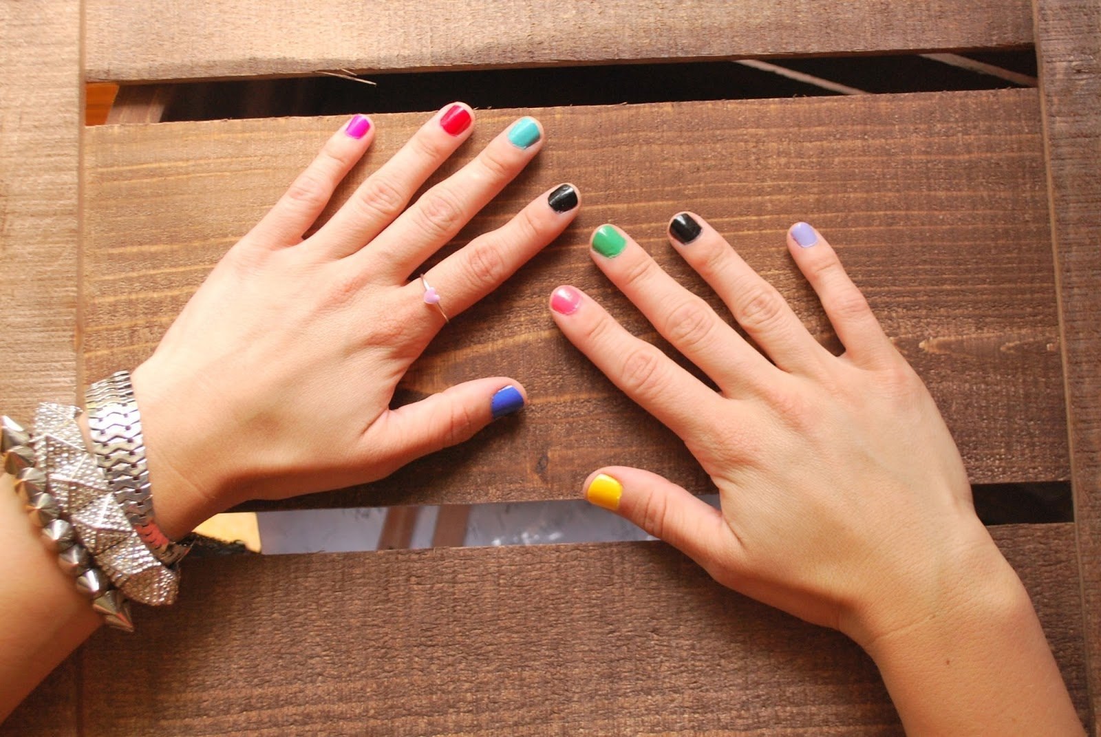 Покрытие ногтей разными цветами