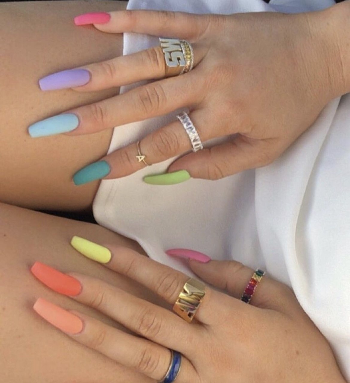 Разноцветный маникюр на длинные ногти