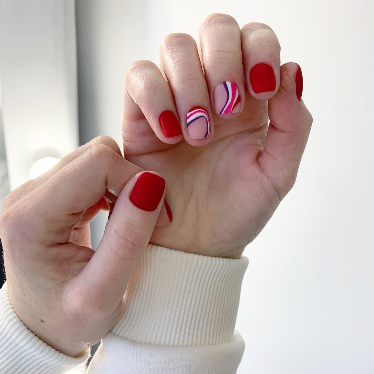 Маникюр разные руки красный