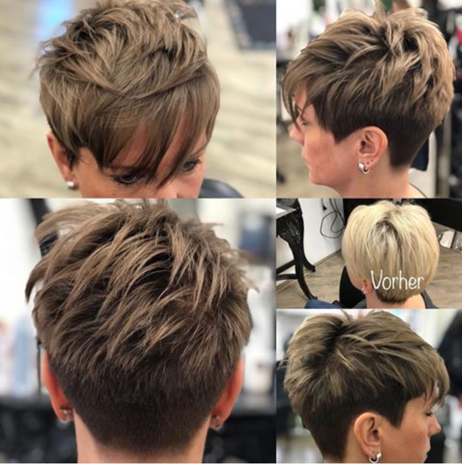Короткая женская стрижка Пикси Боб вид сзади и спереди