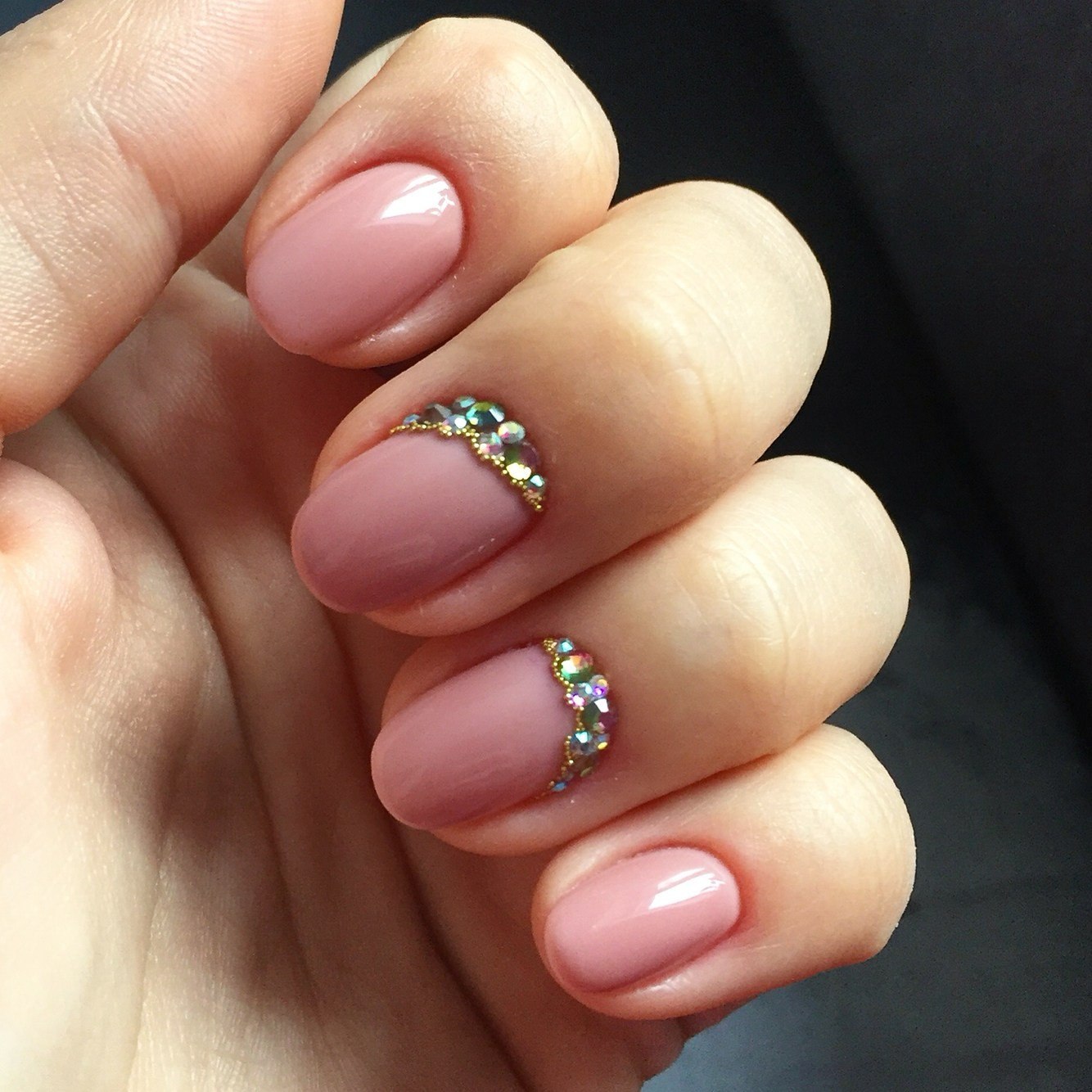 Маникюр на овальные ногти со стразами