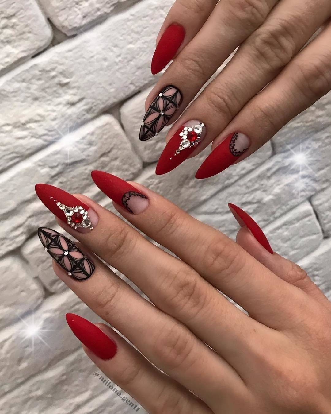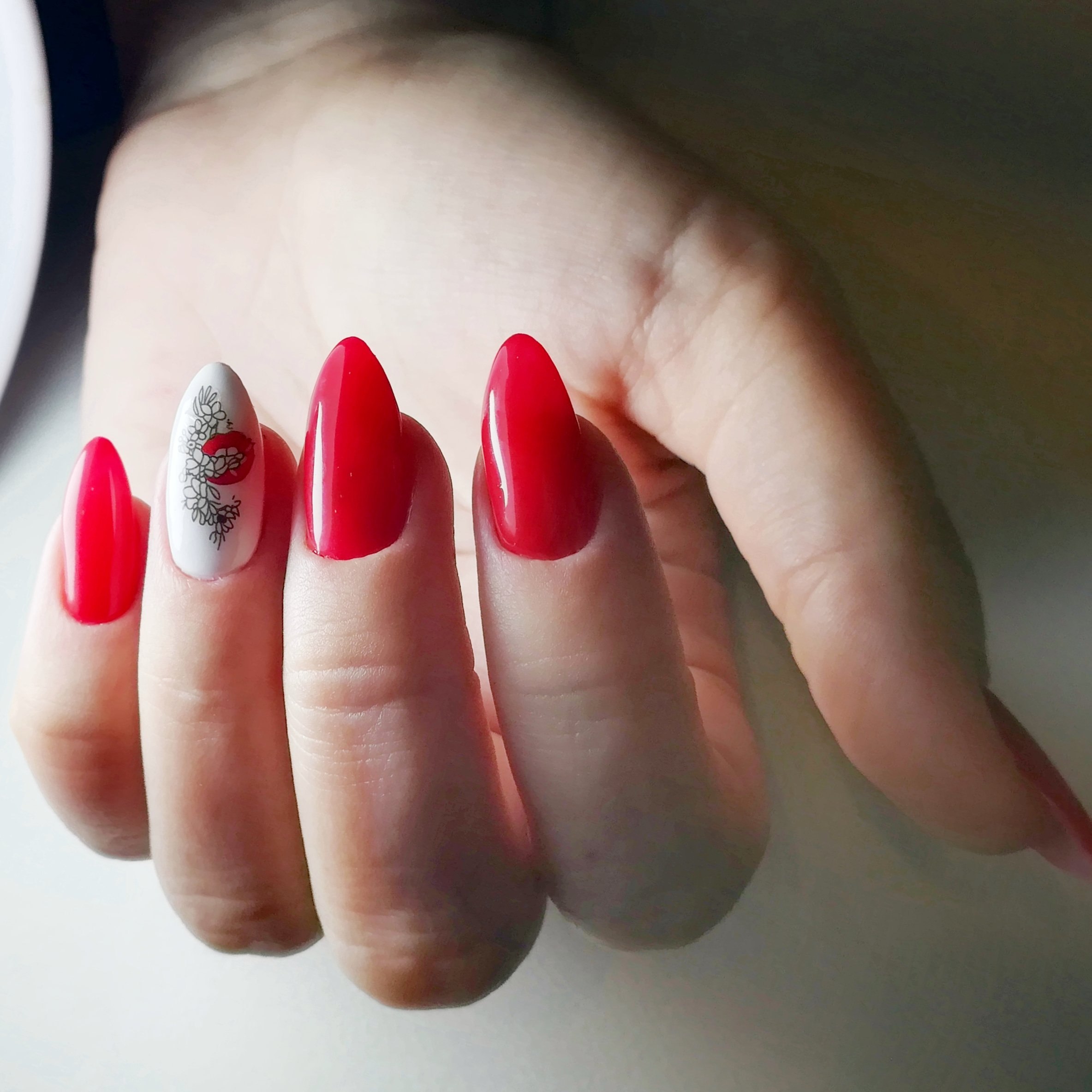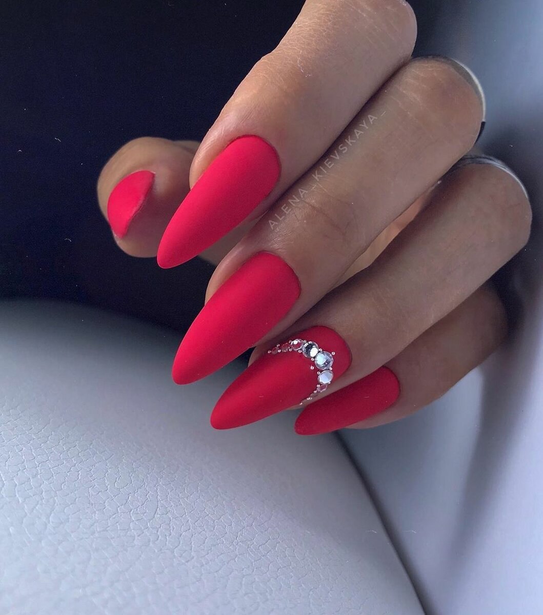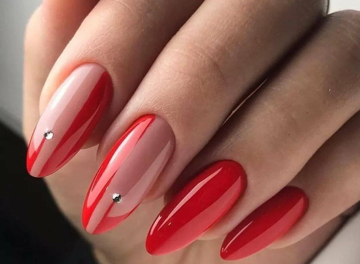 Красные ногти маникюр миндаль с дизайном (27 фото)