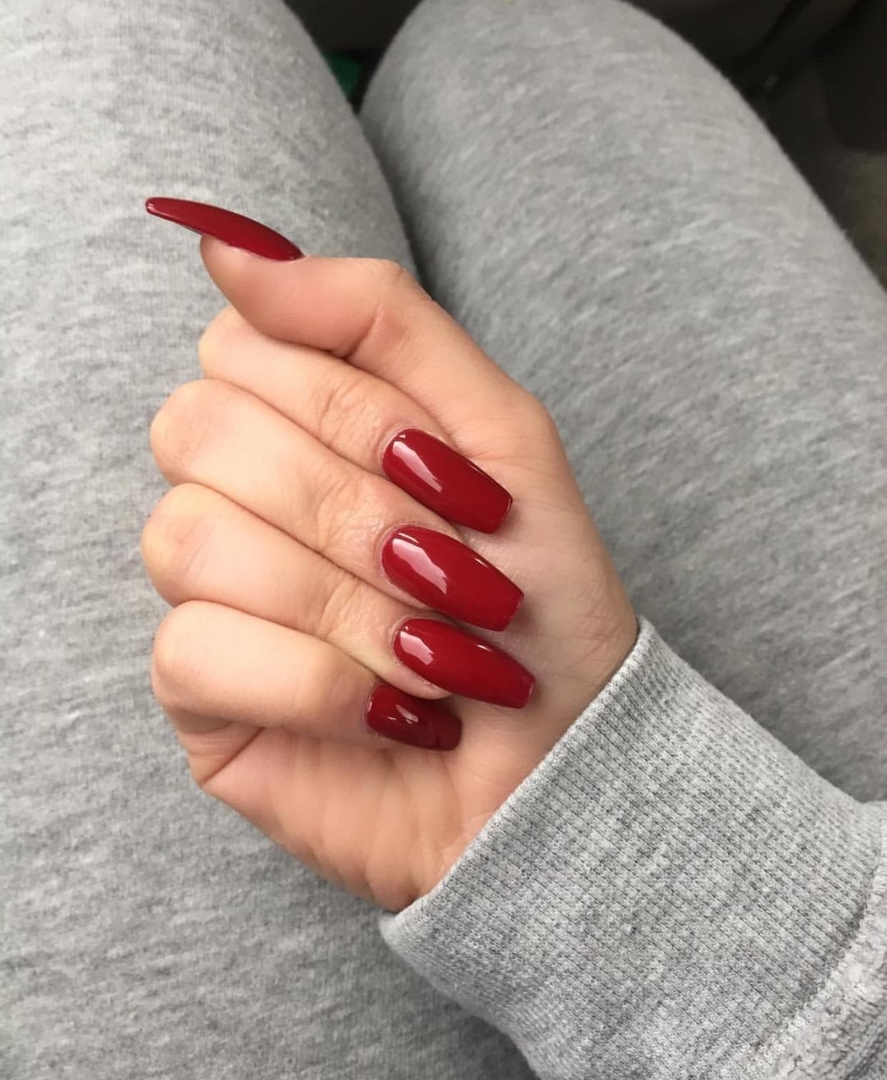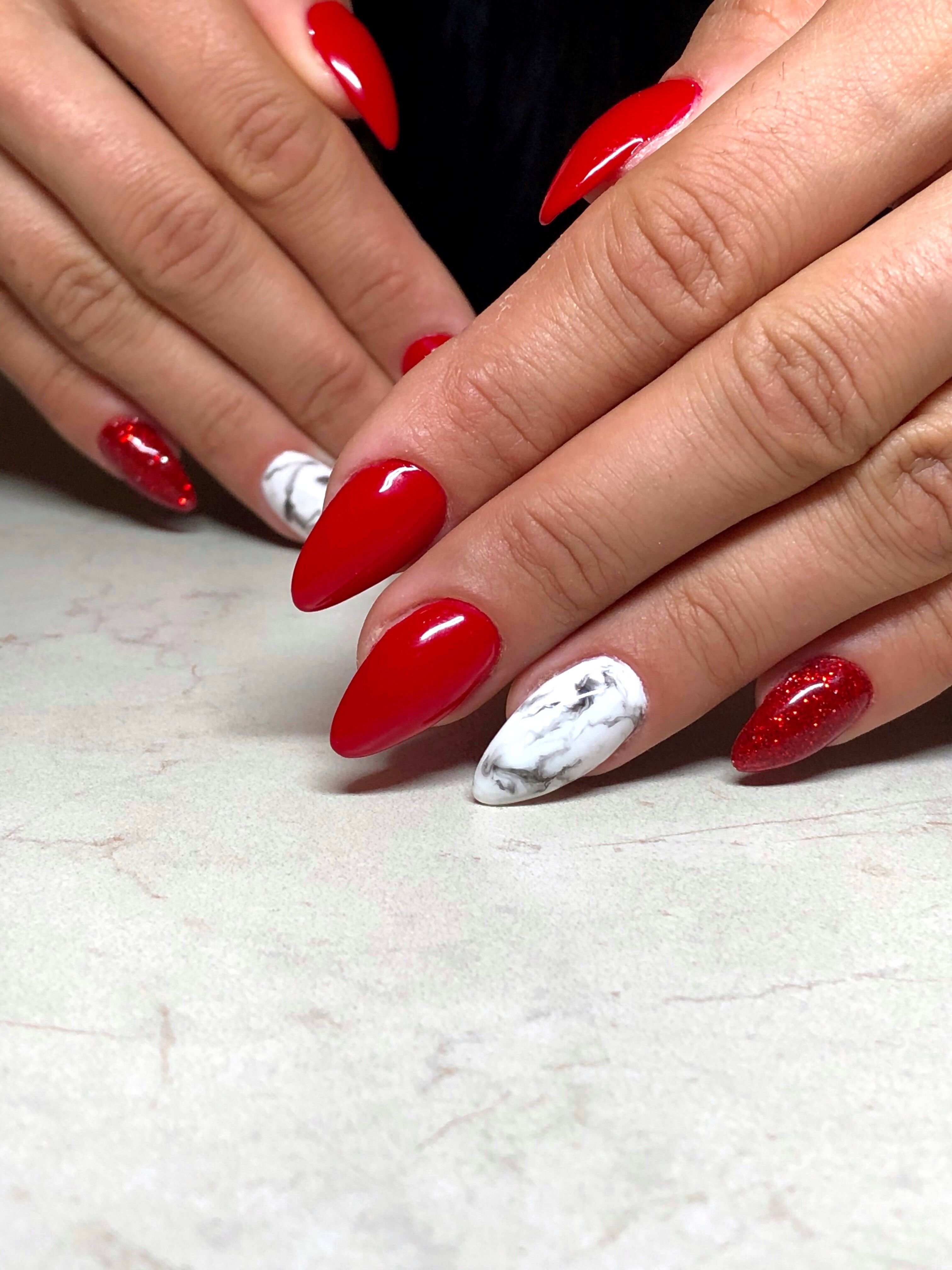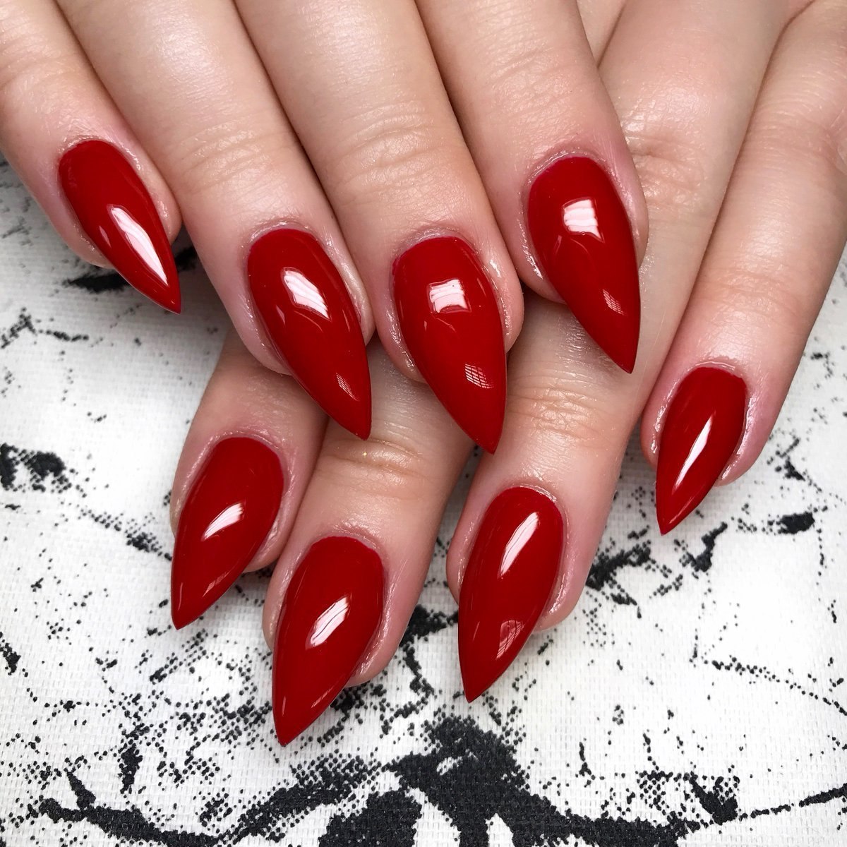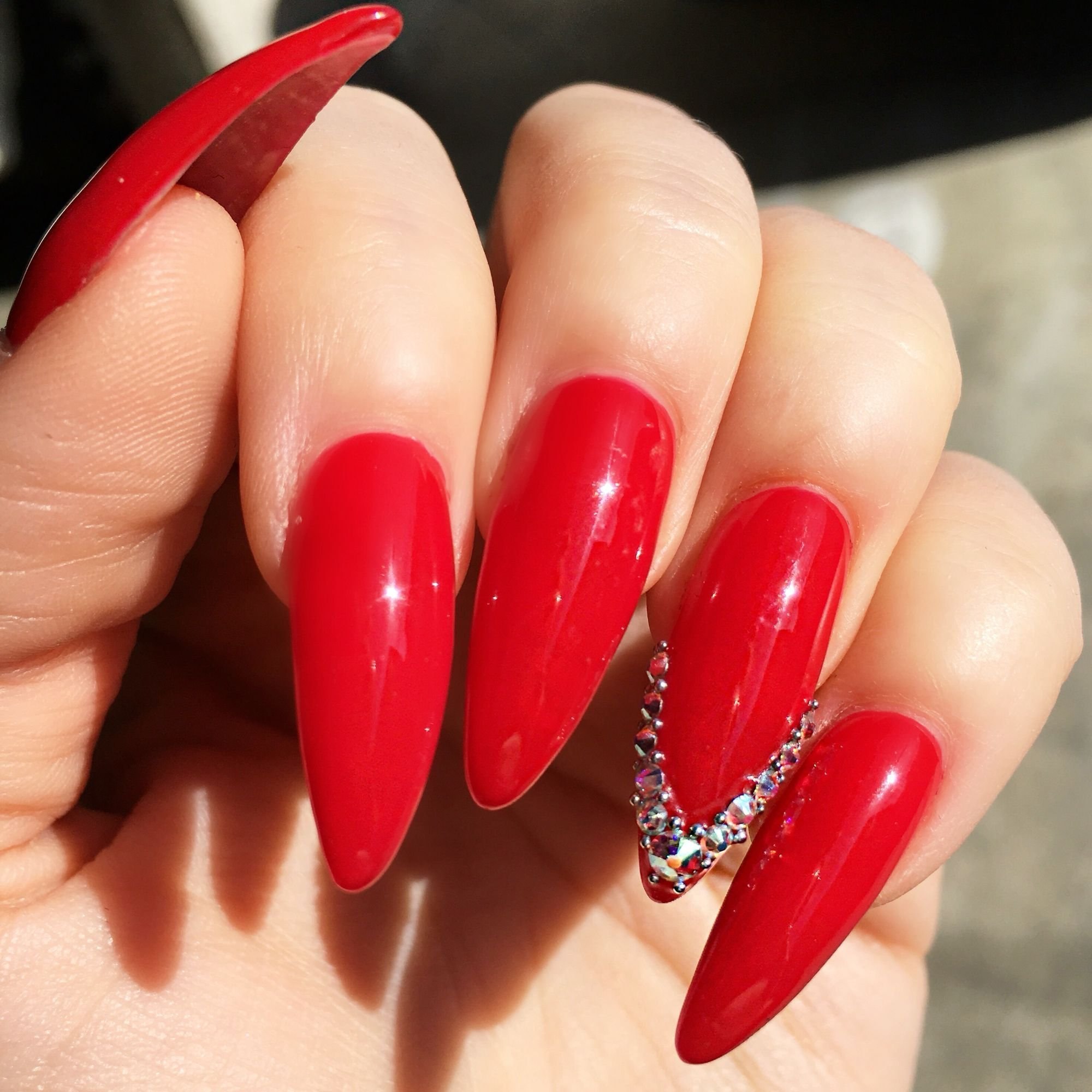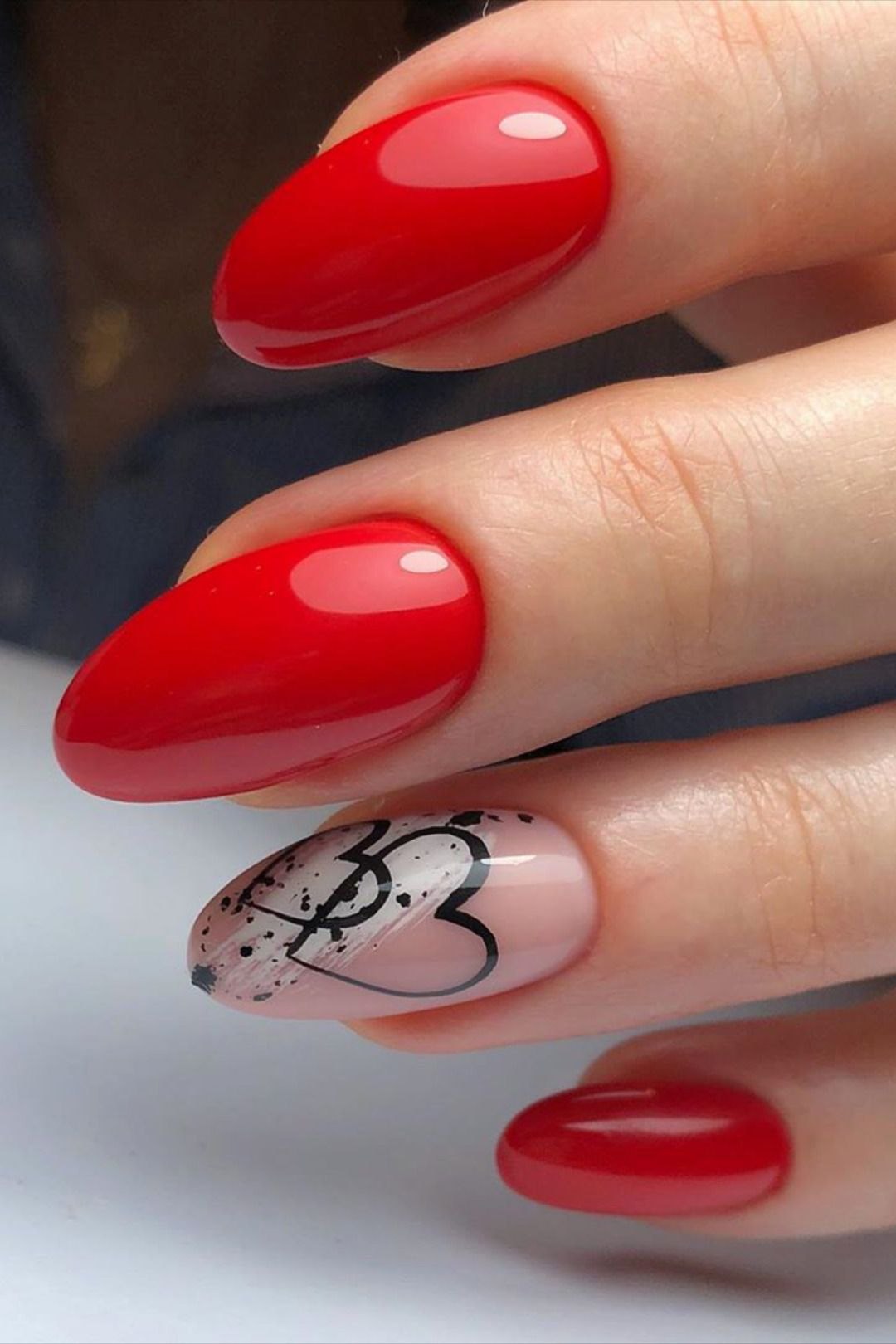 Красные ногти маникюр миндаль с дизайном (27 фото)