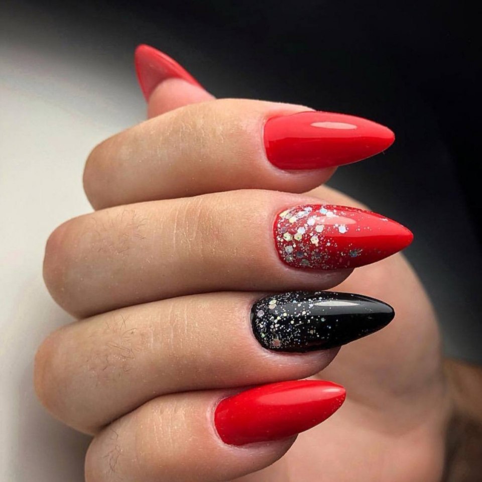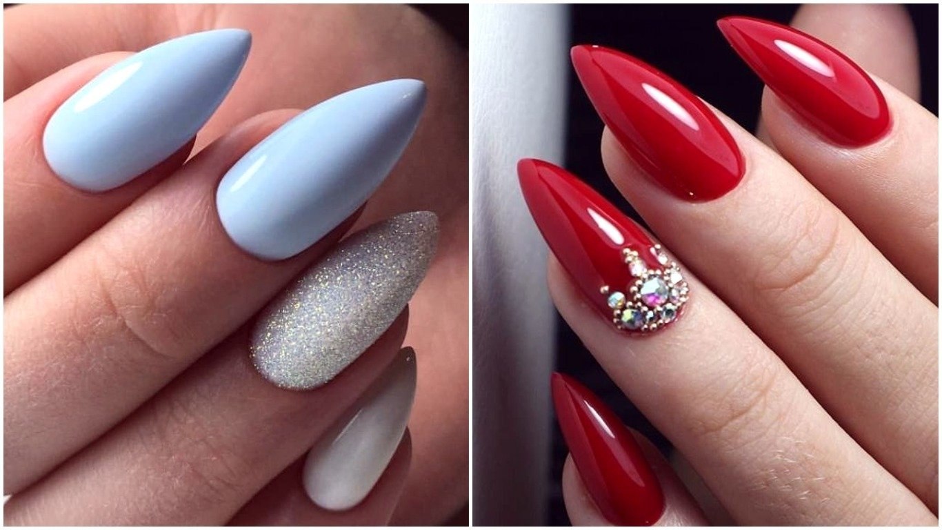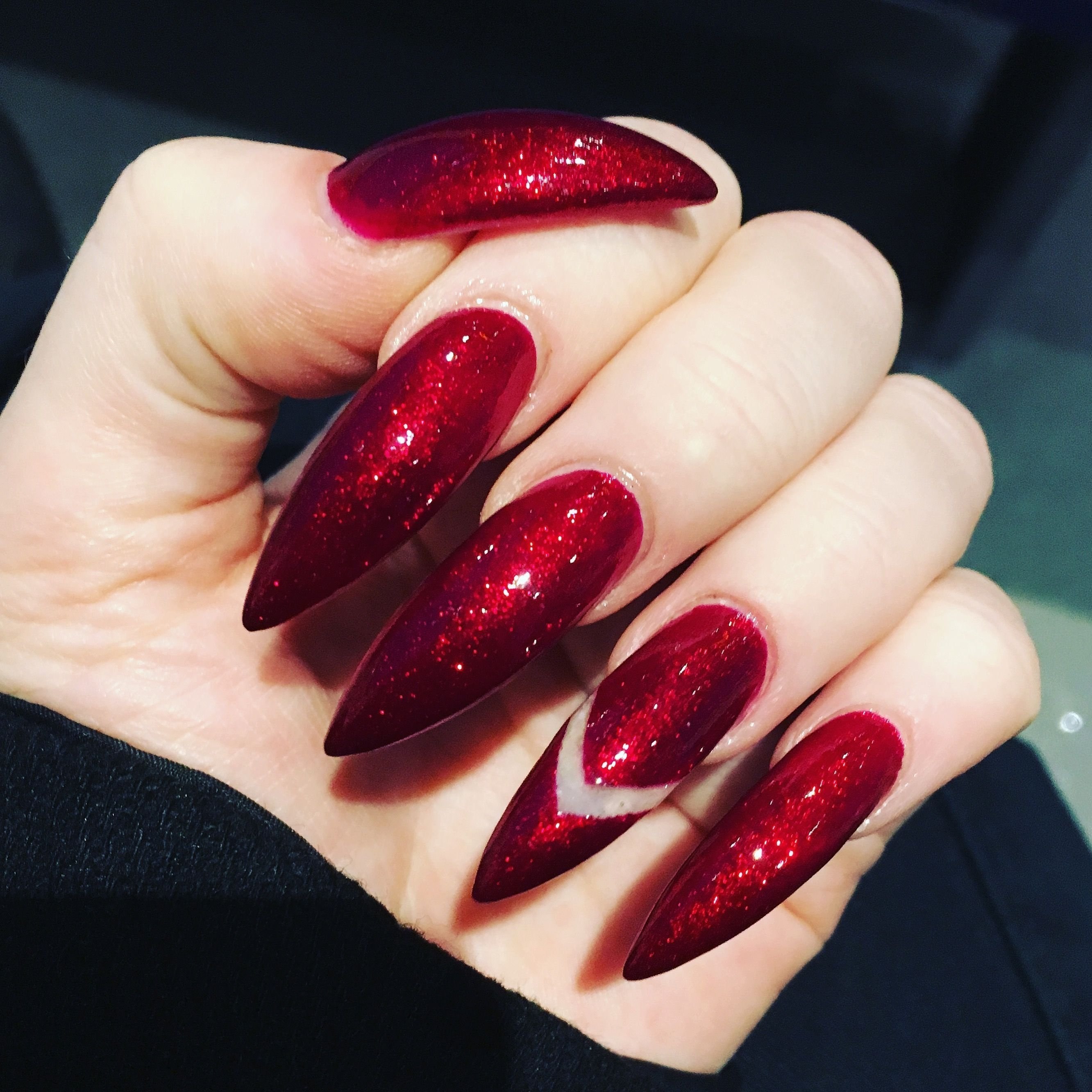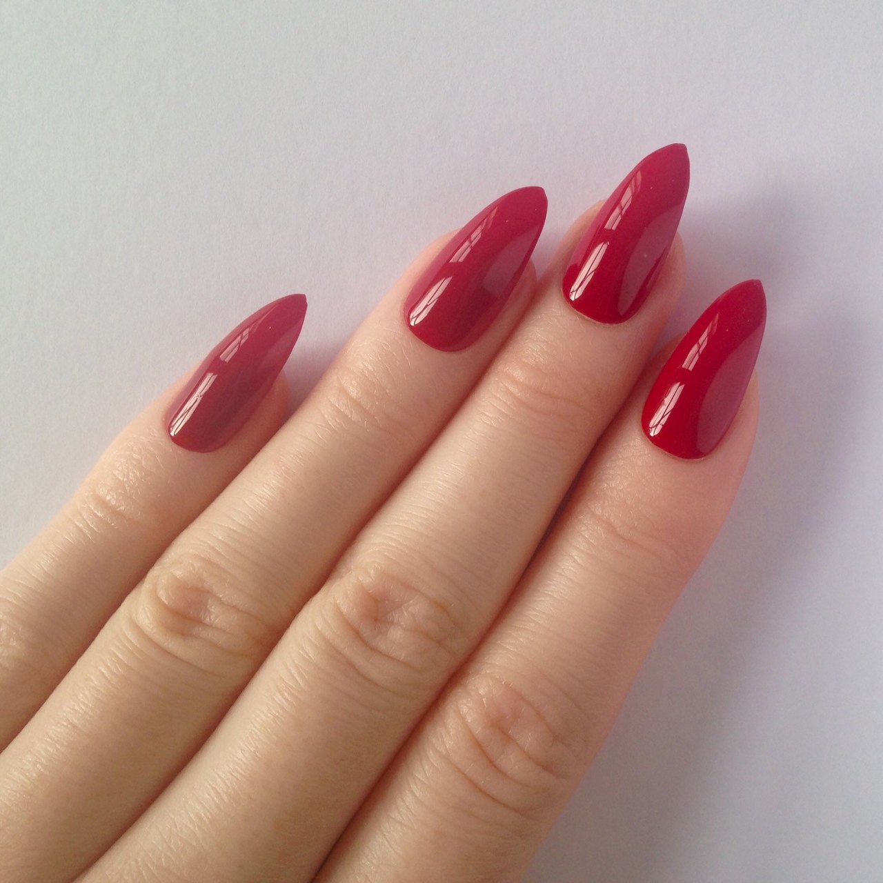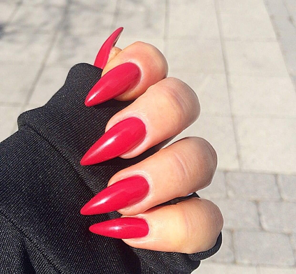 Красный маникюр на длинные ногти миндалевидной формы (31 фото)