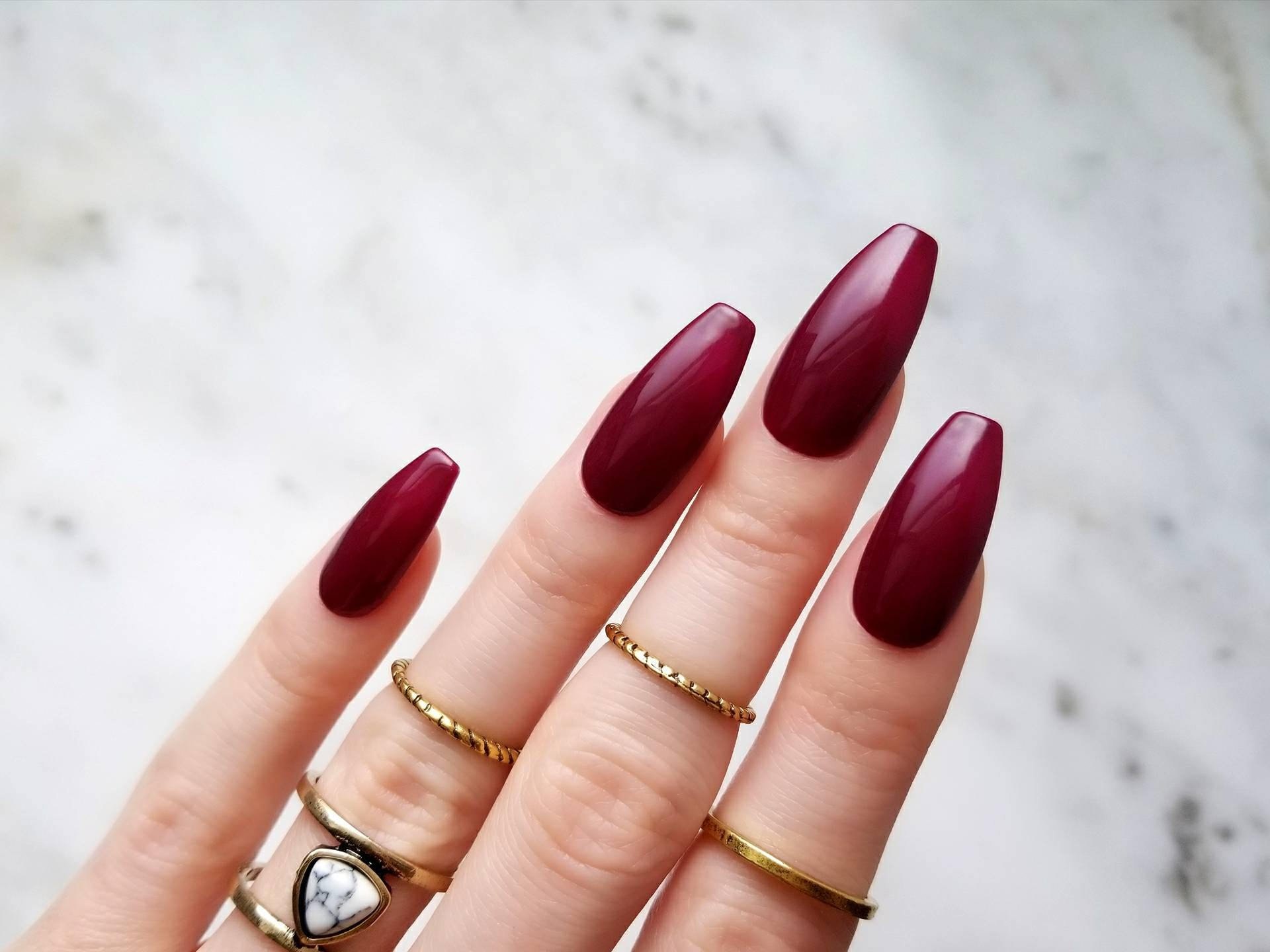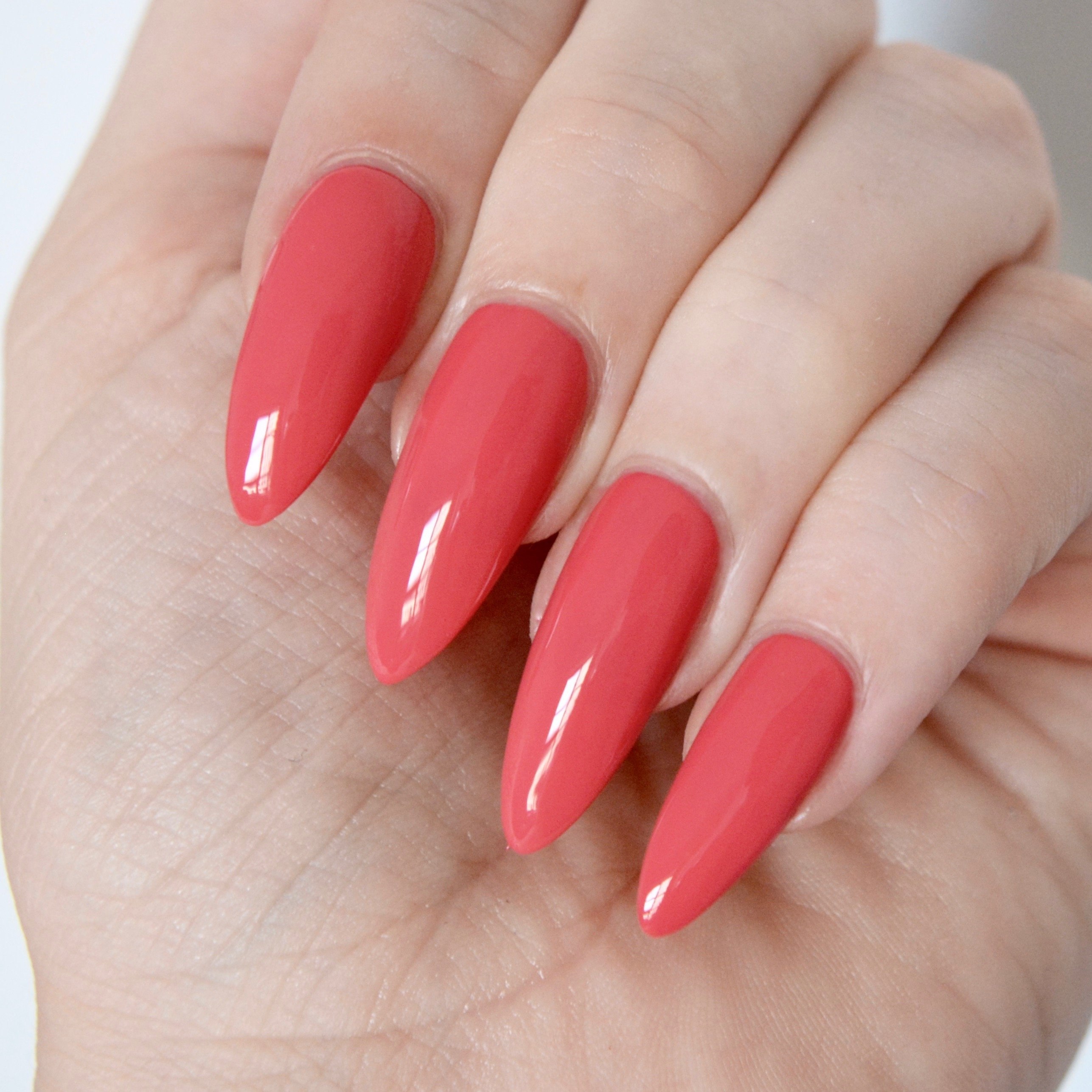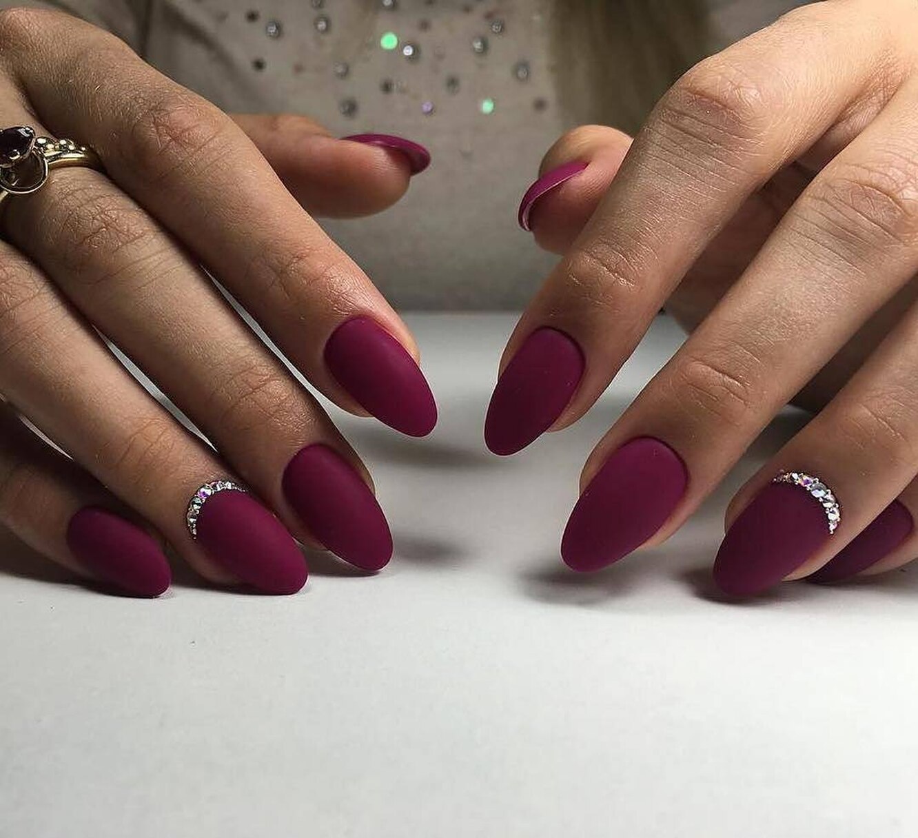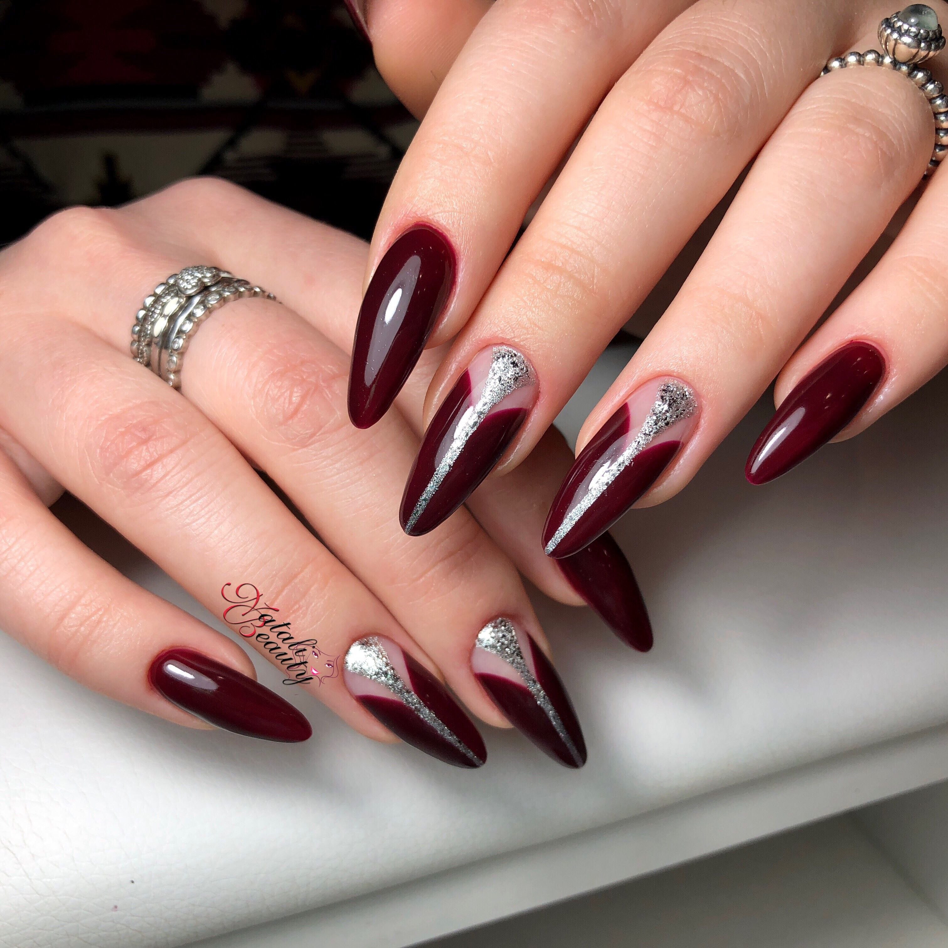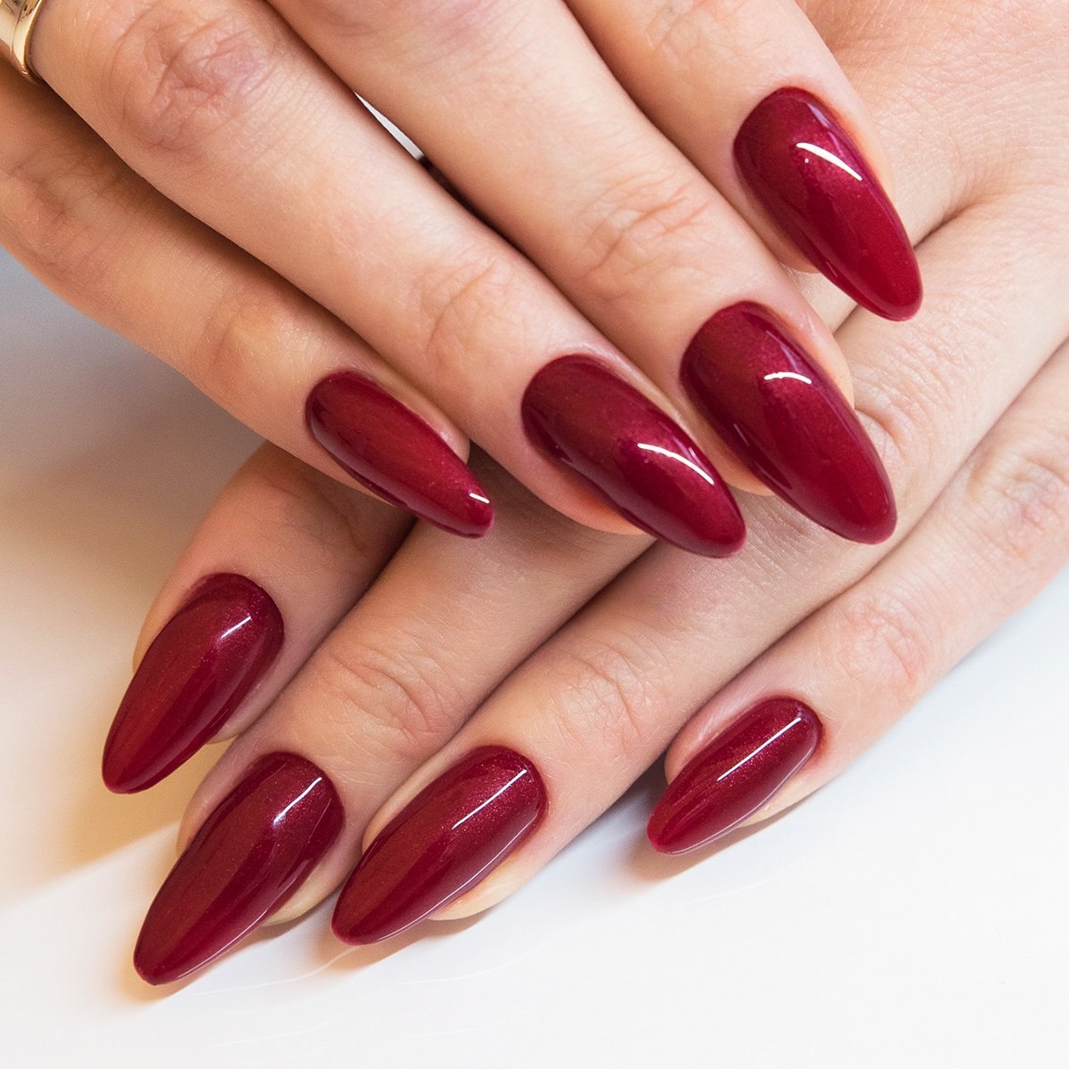 Красный маникюр на длинные ногти миндалевидной формы (31 фото)