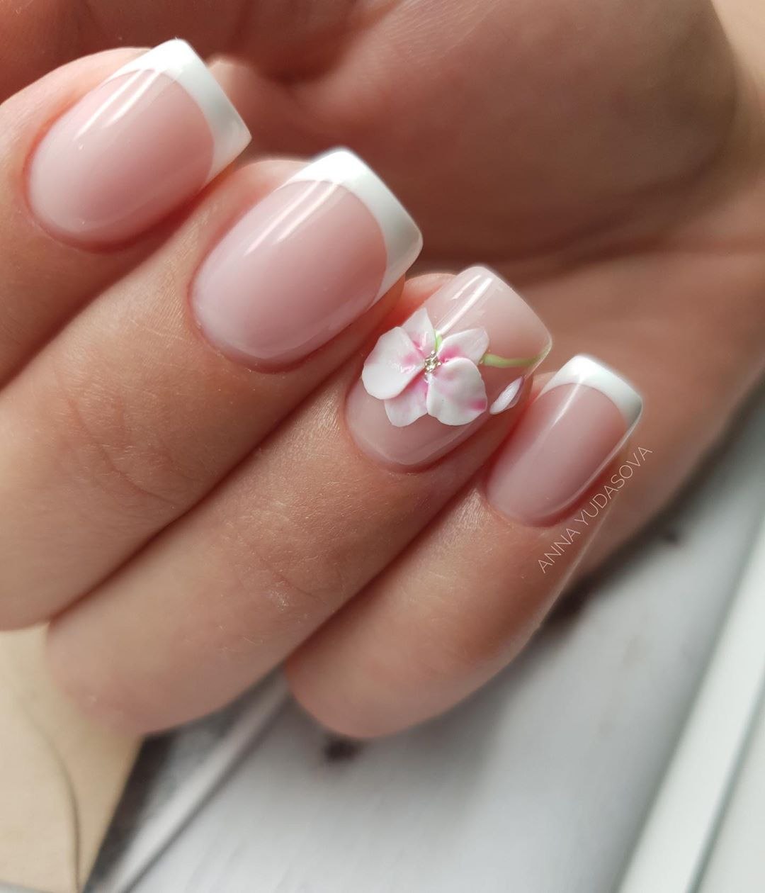 Красивый французский маникюр на короткие ногти