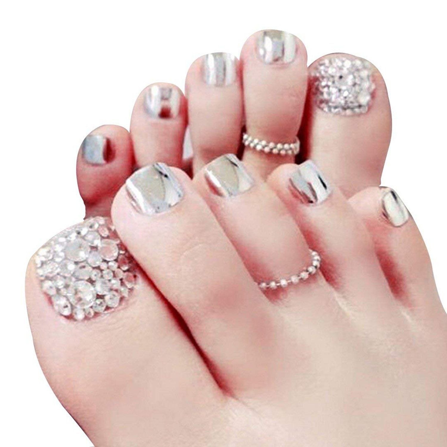 Педикюр на ногах с блестками