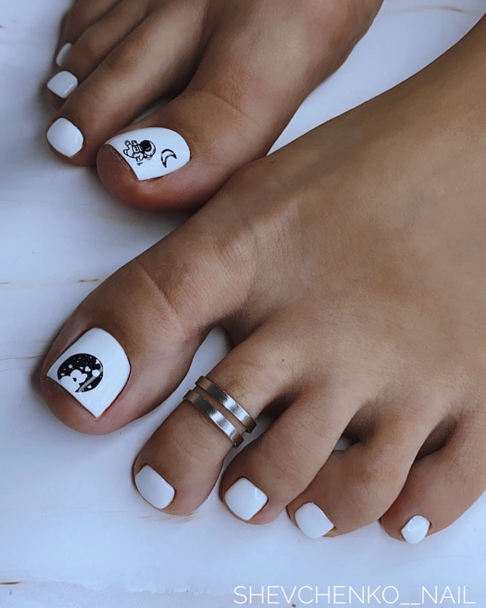 Педикюр белый с дизайном на большом пальце (27 фото)