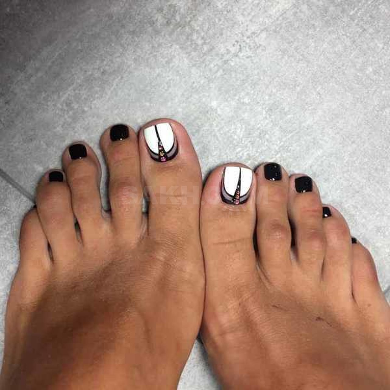 Педикюр черный с белым