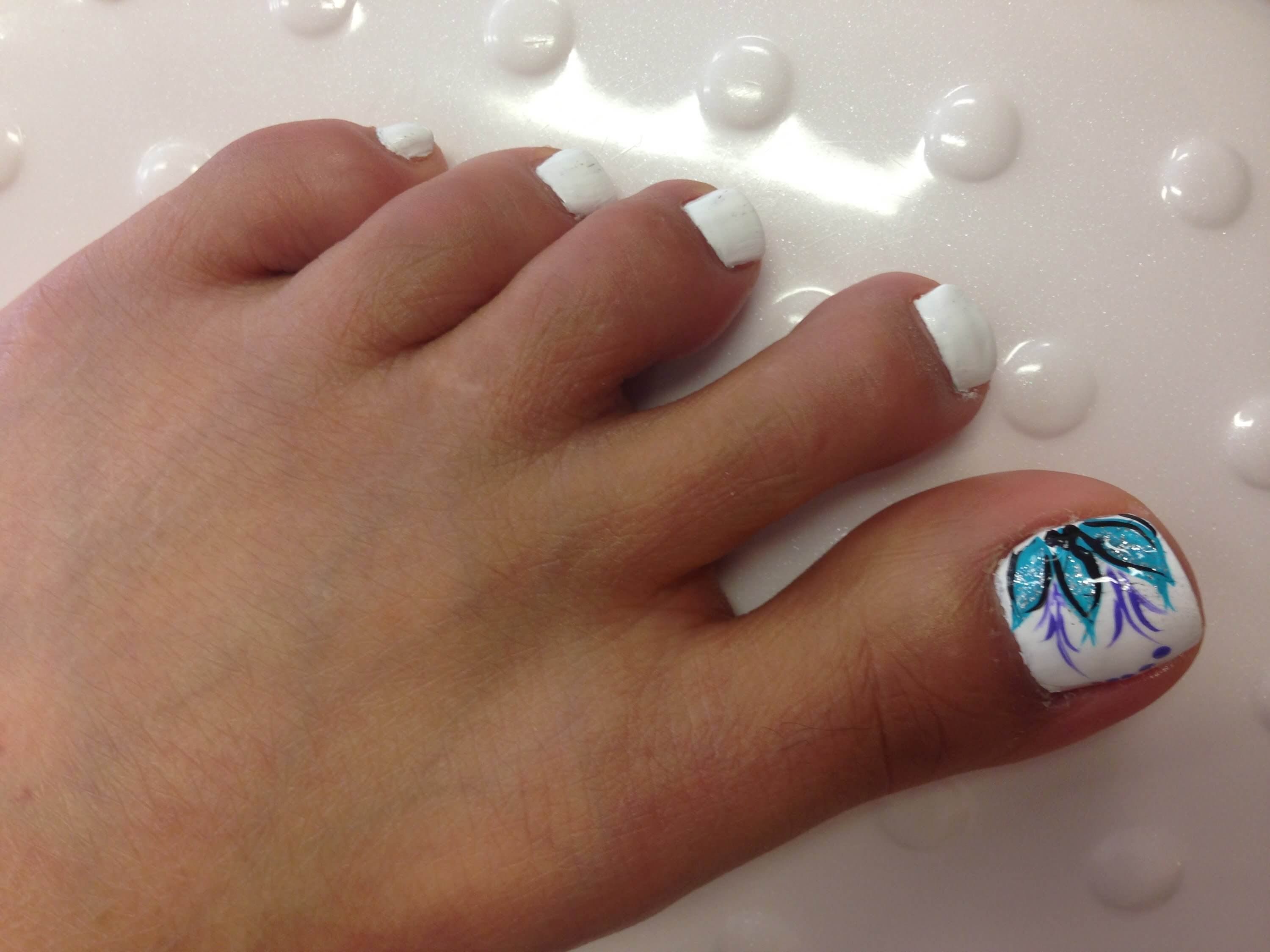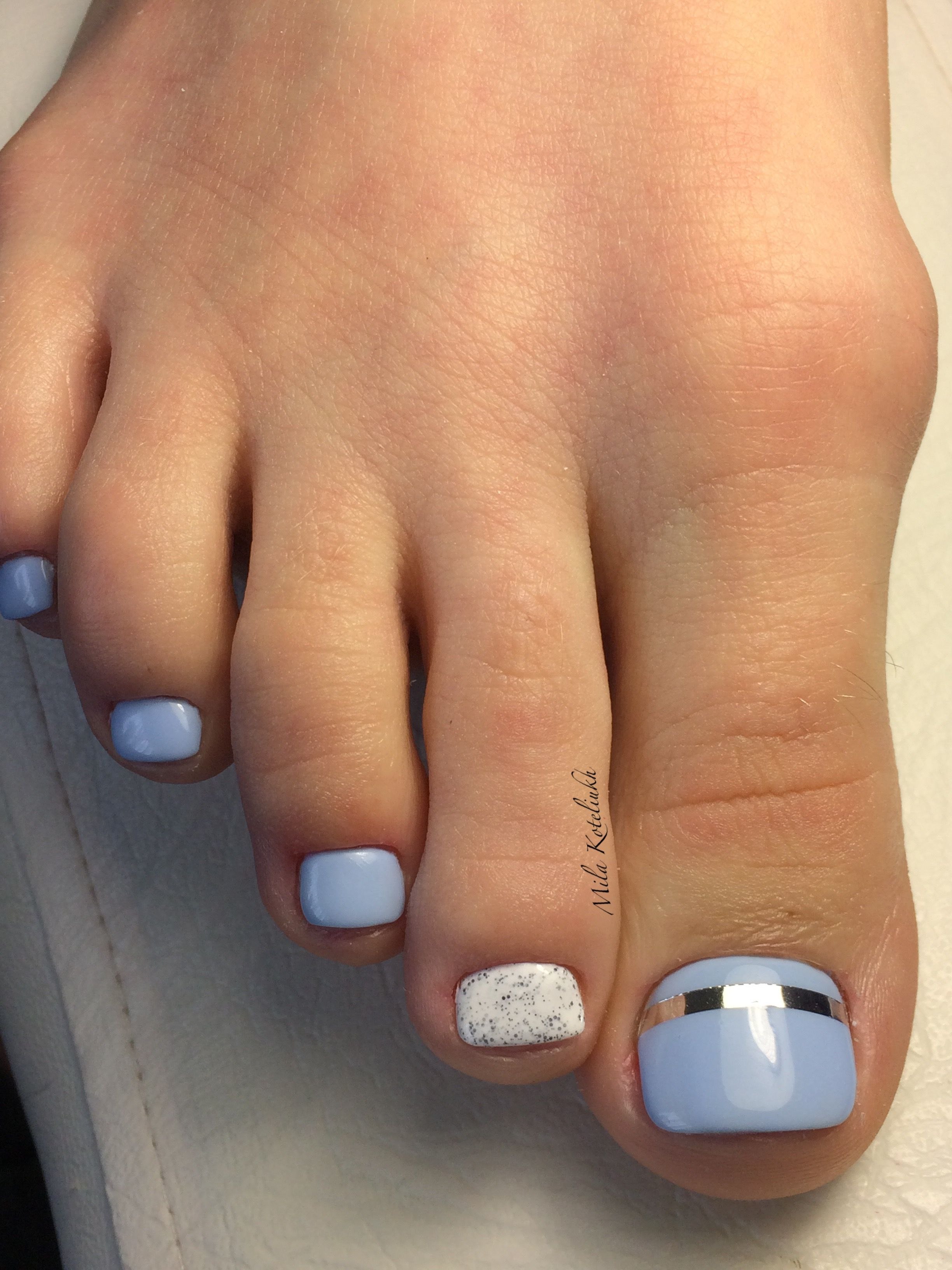 Педикюр голубой с белым
