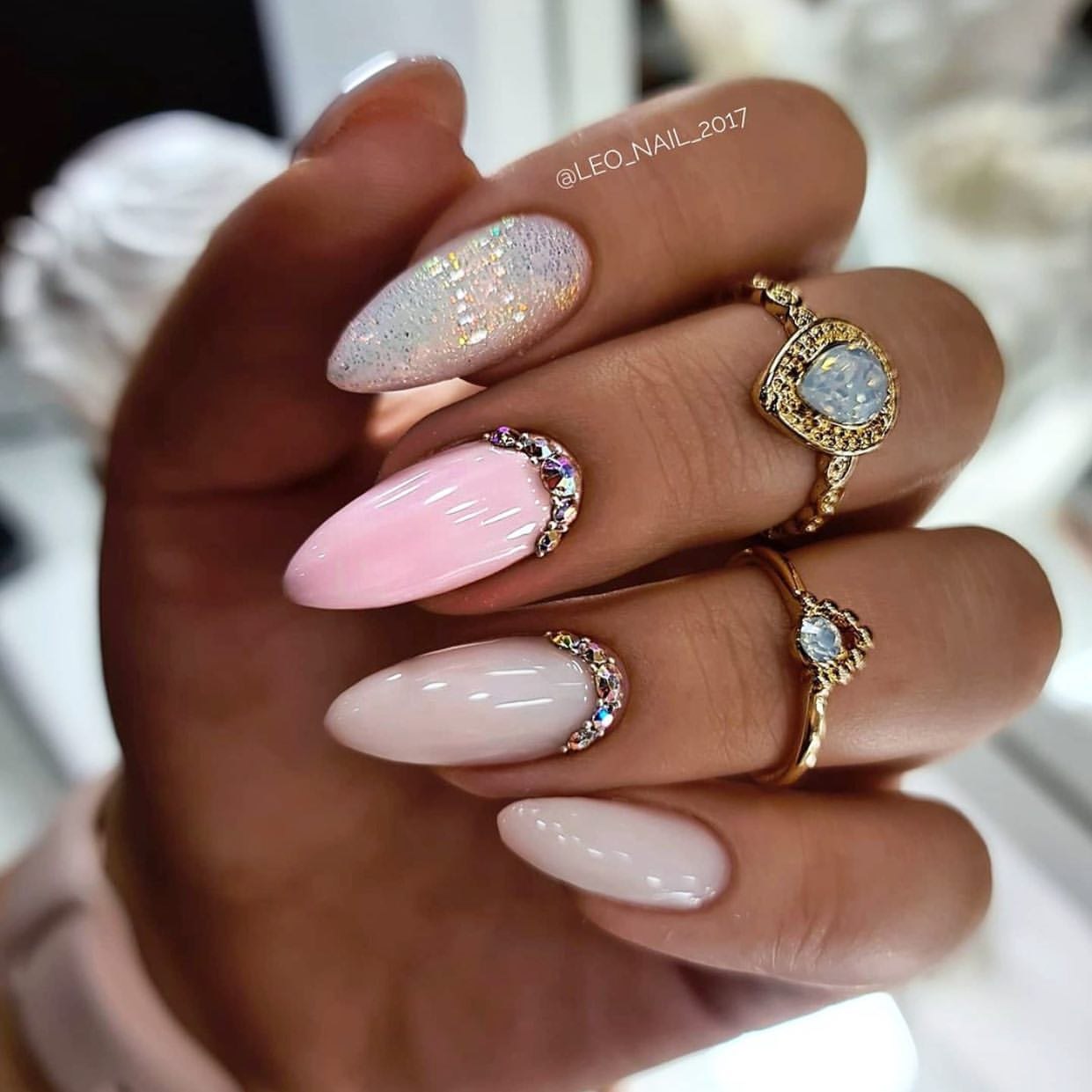 Шикарный маникюр на миндалевидные ногти