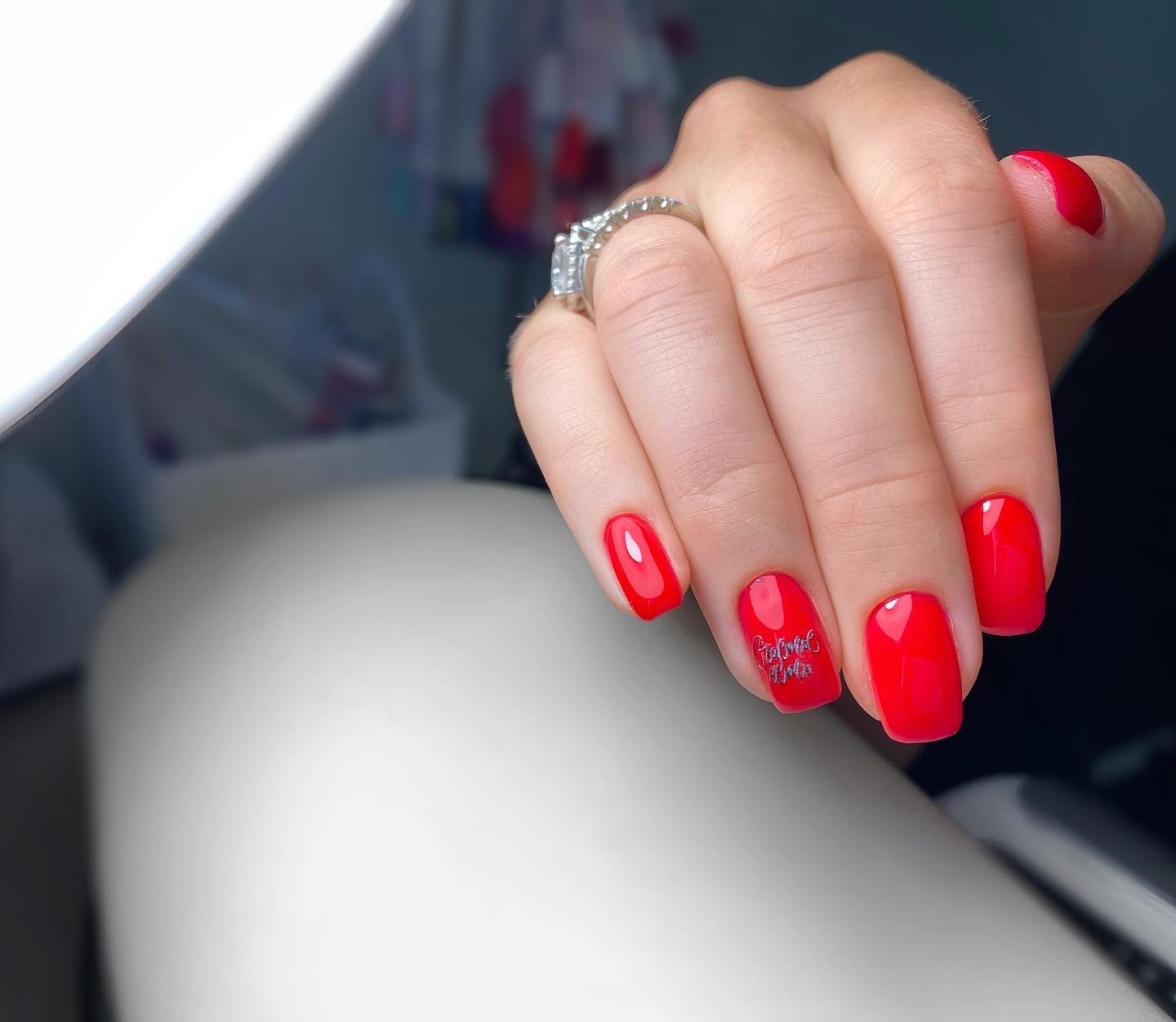 Красный маникюр на короткие ногти квадратной