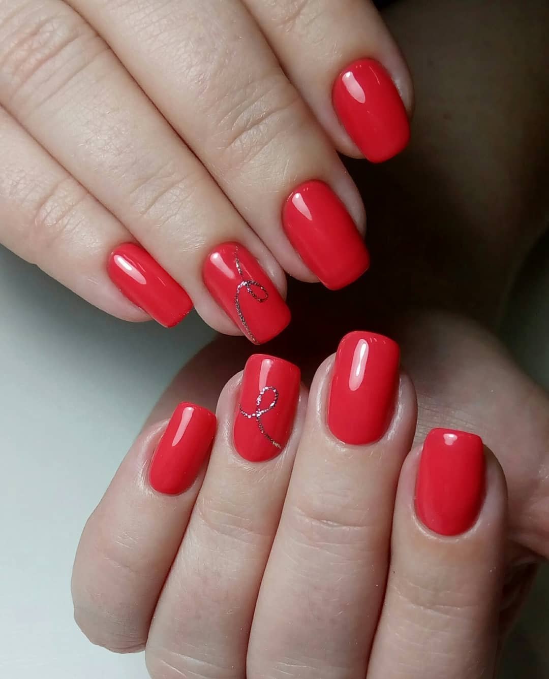 Офисный праздничный красный маникюр на короткие ногти
