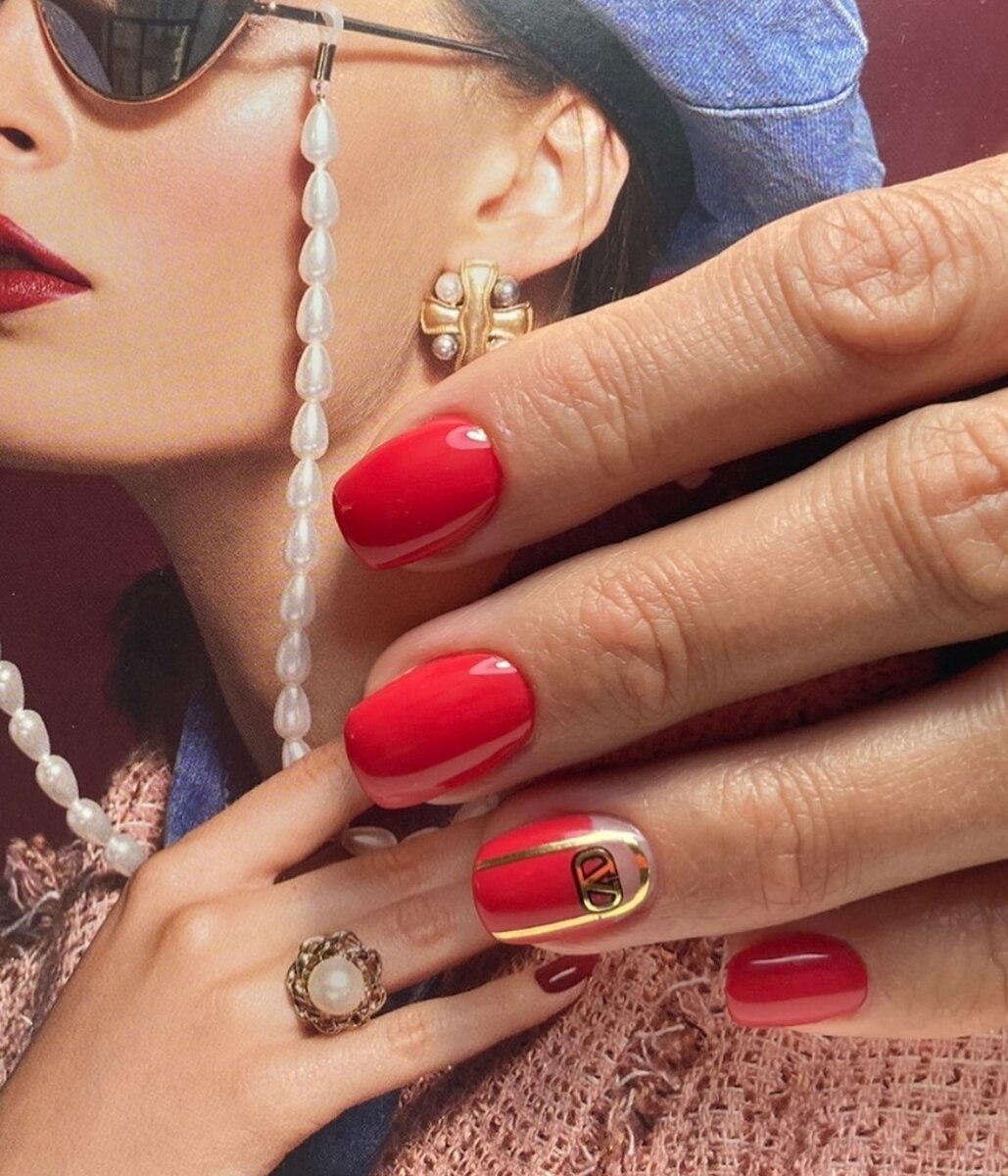 Маникюр красный с золотом 2021
