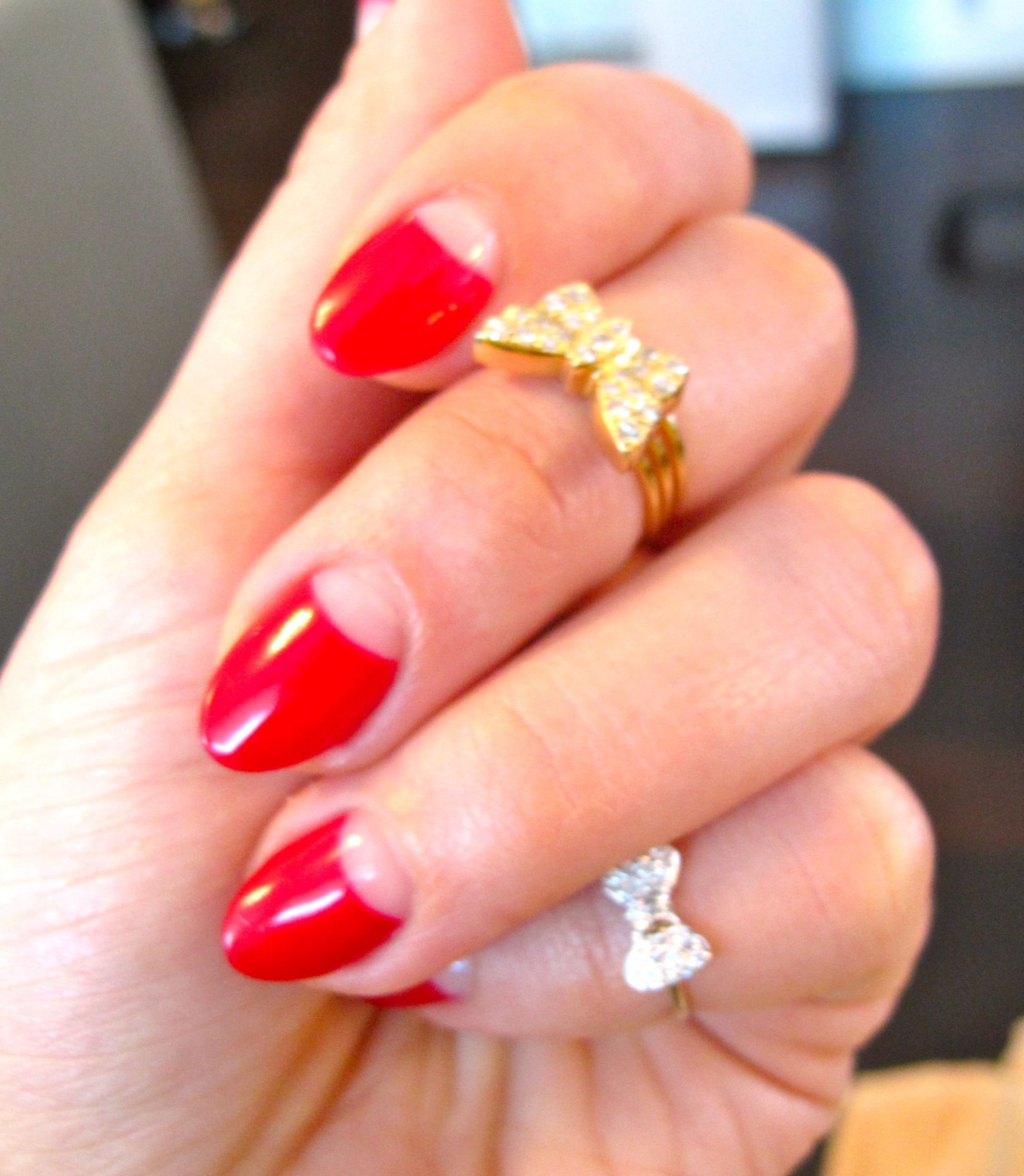 Красный маникюр с полумесяцем