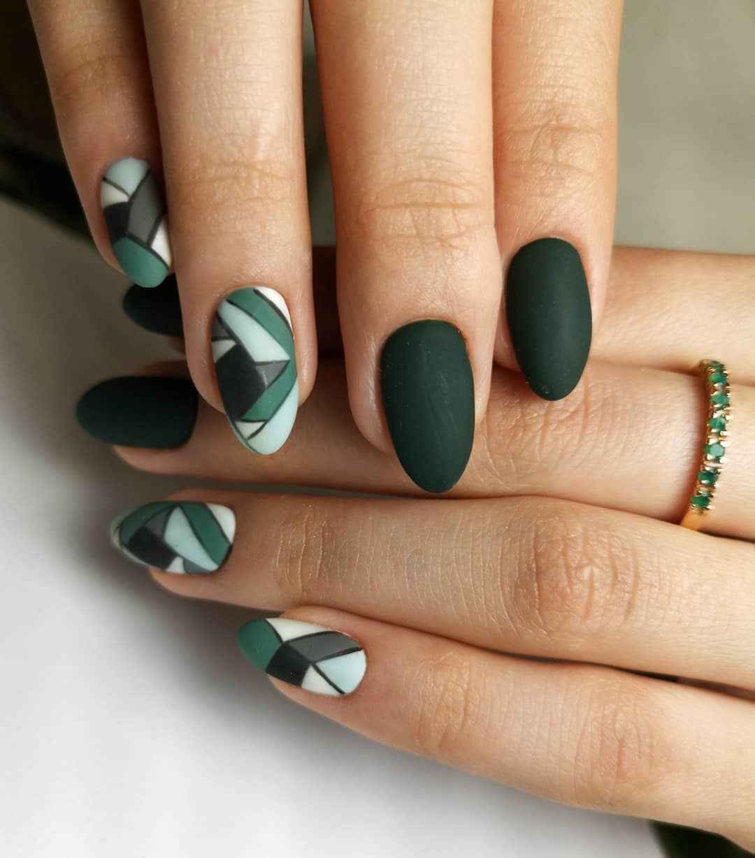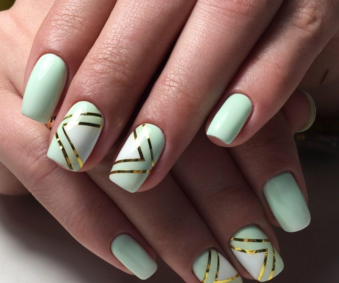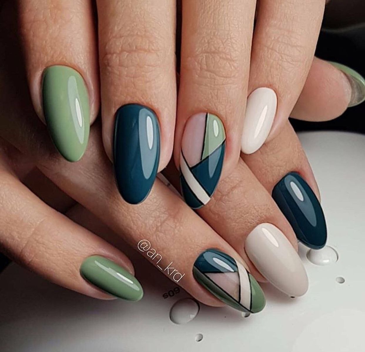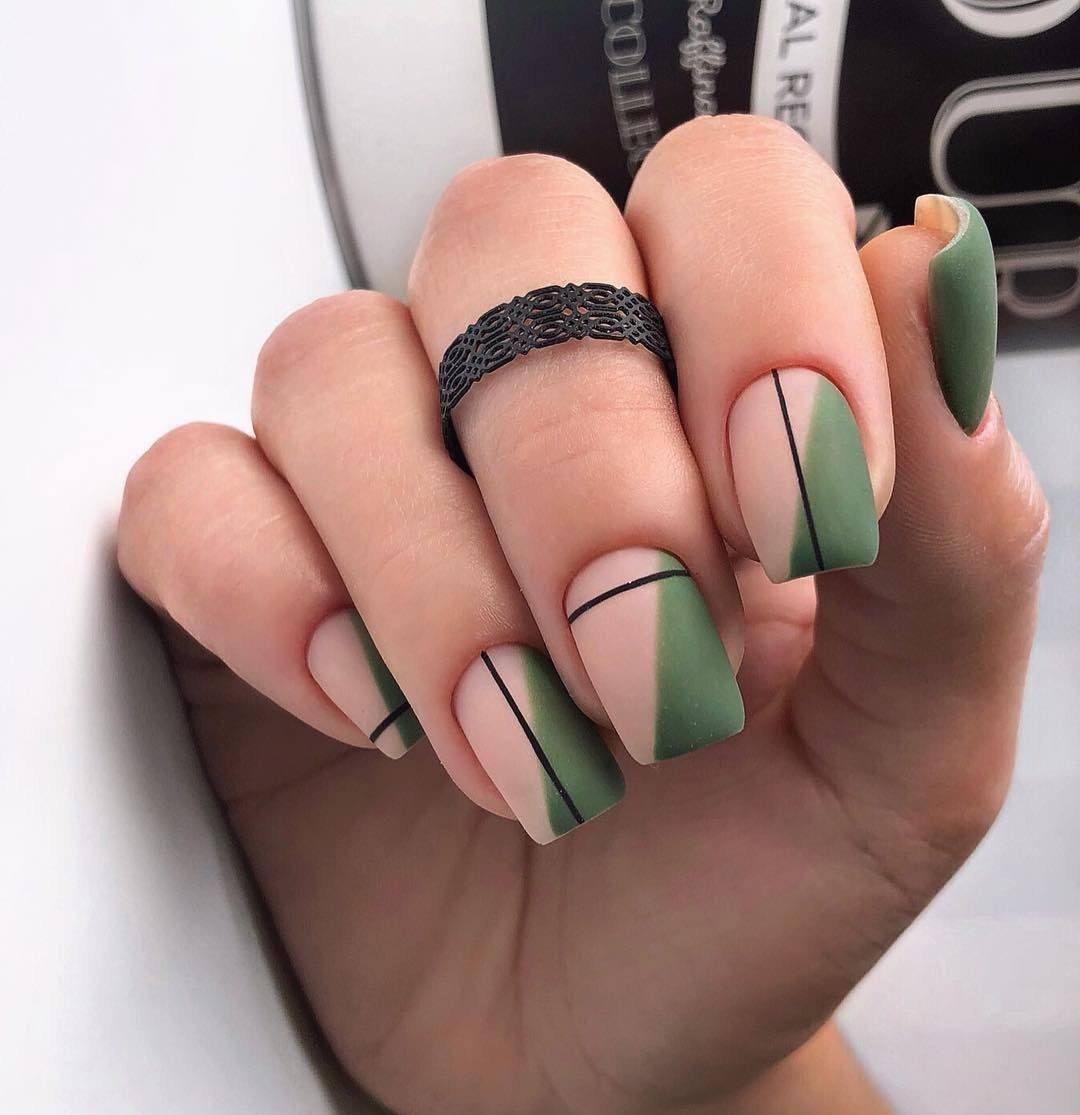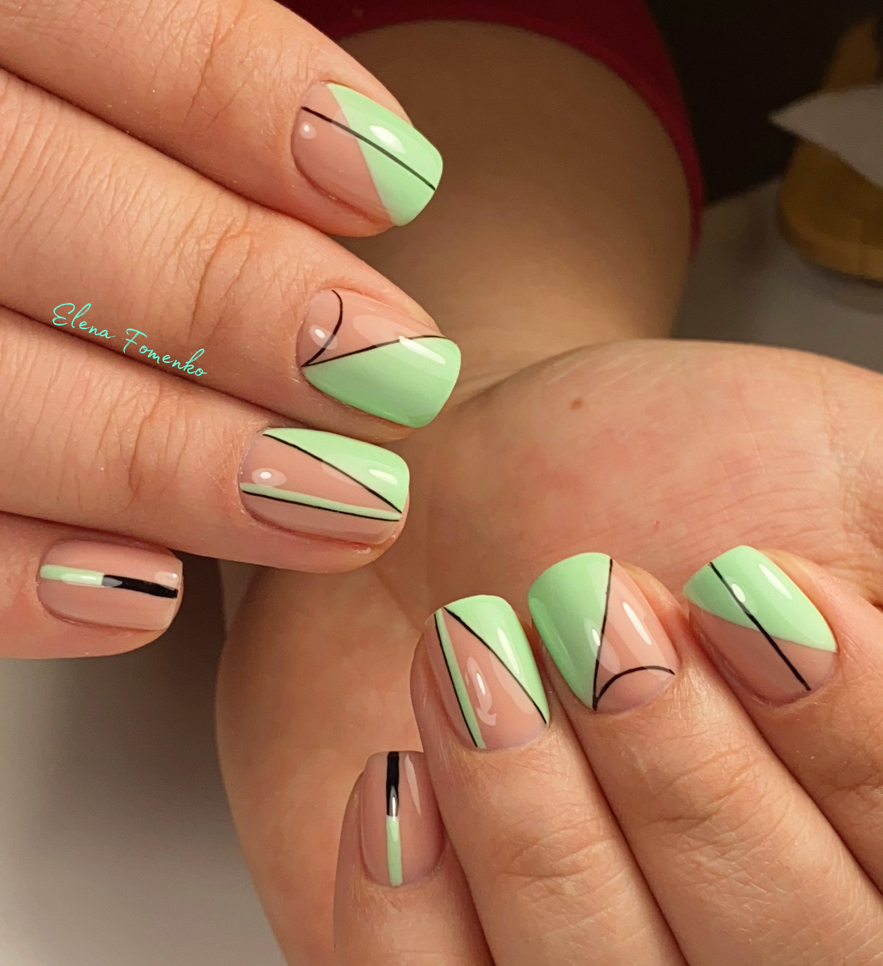 Дизайн геометрия на зеленых ногтях (39 фото)