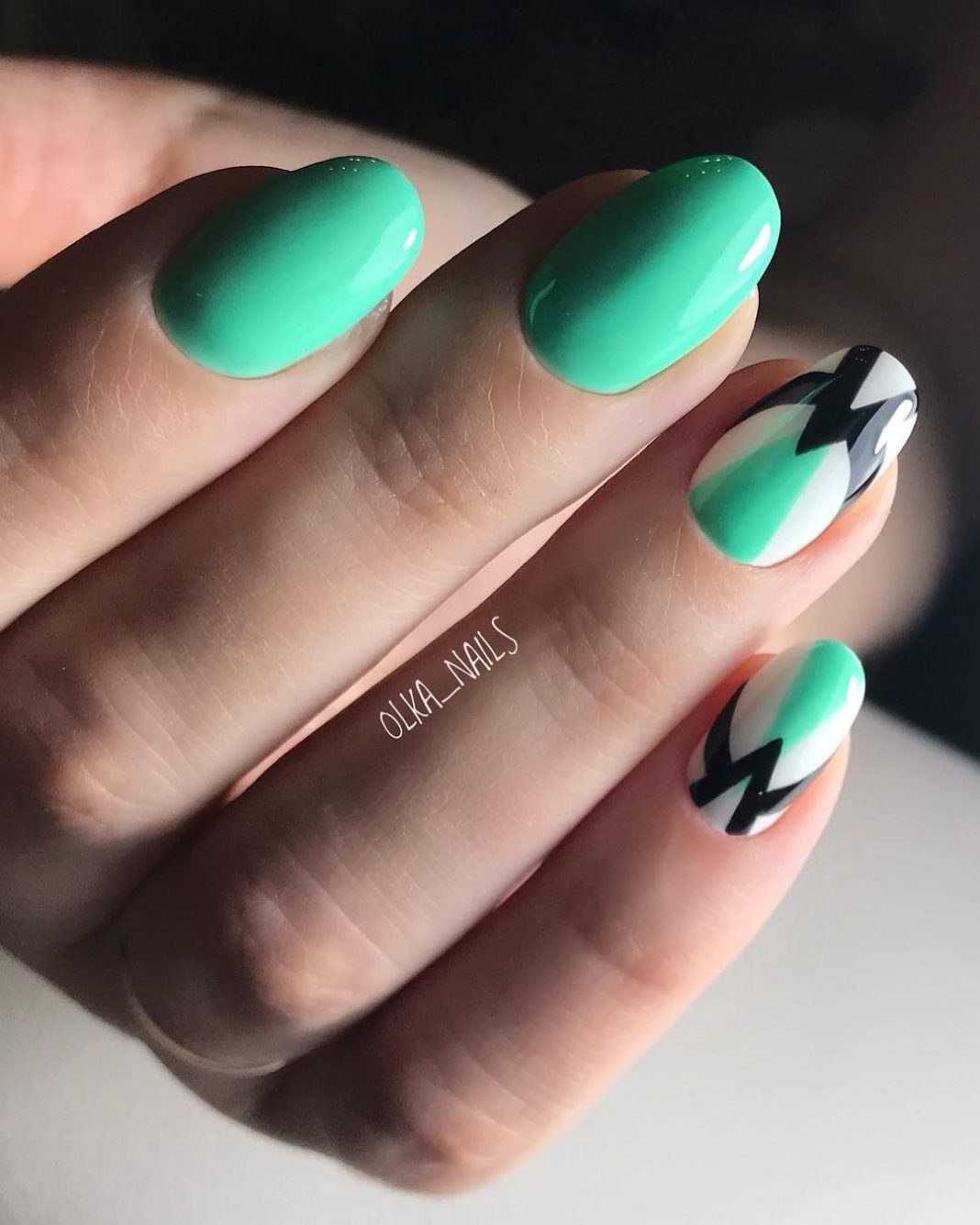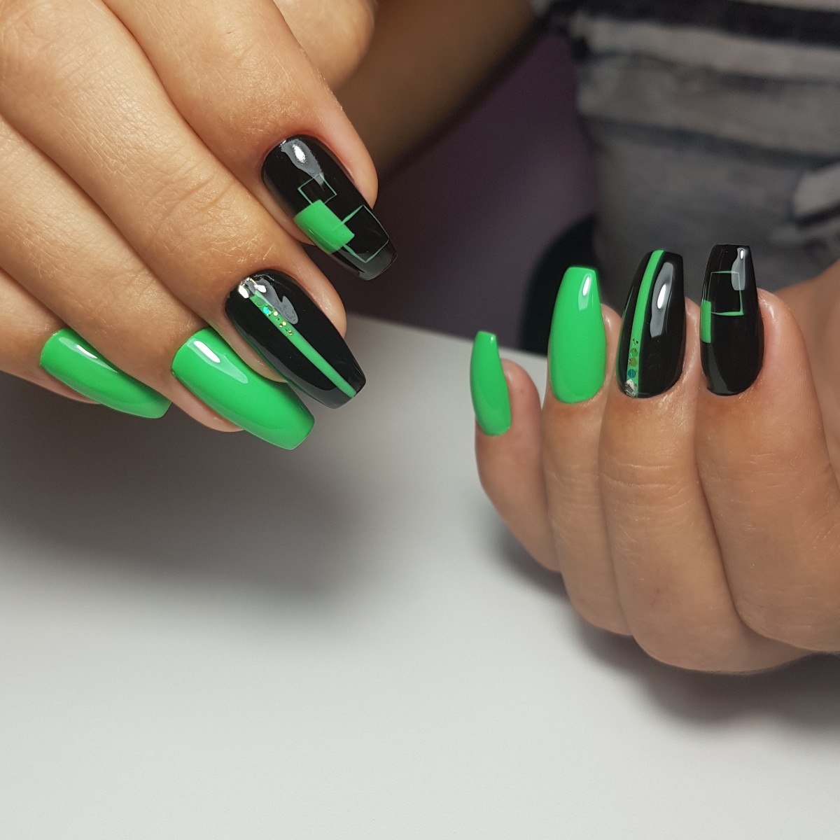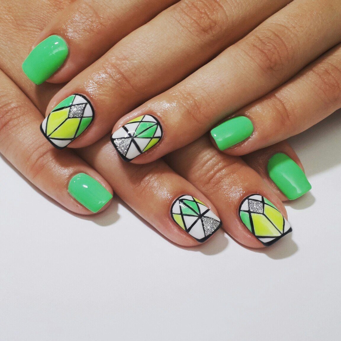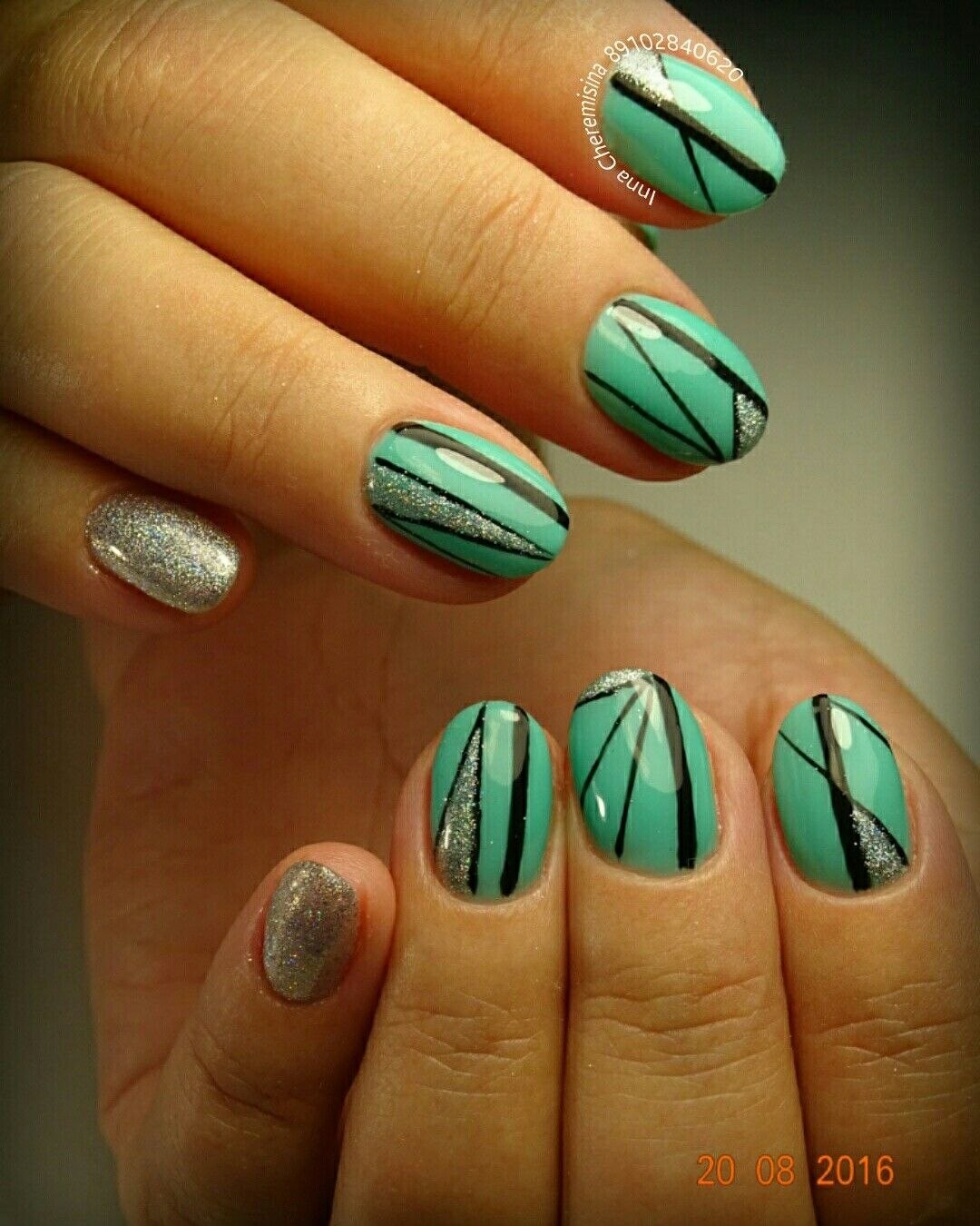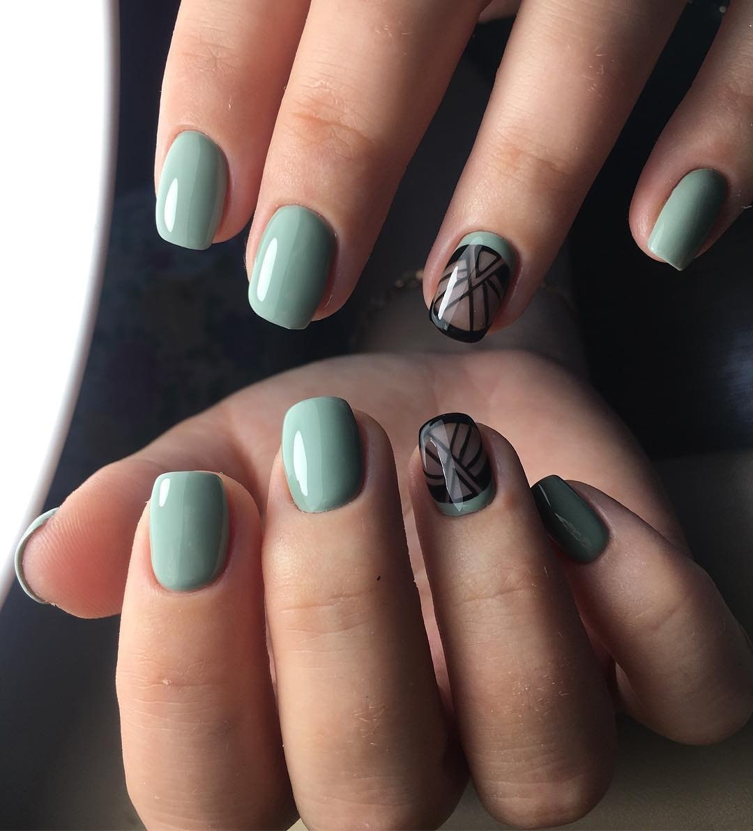 Дизайн геометрия на зеленых ногтях (39 фото)
