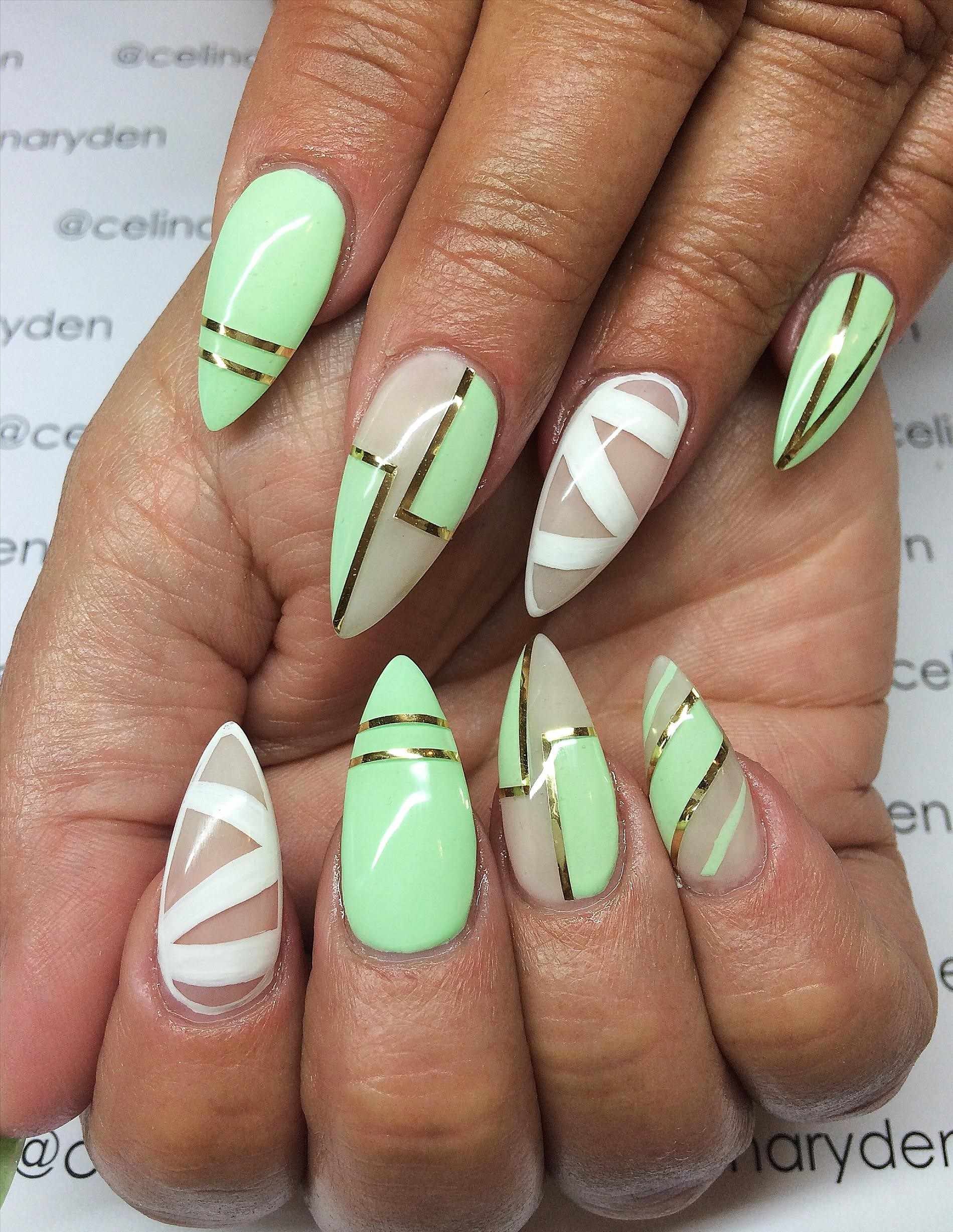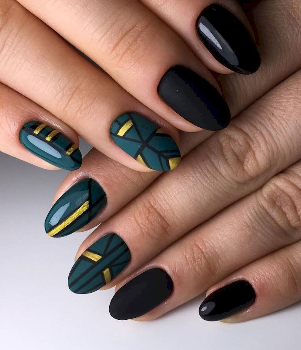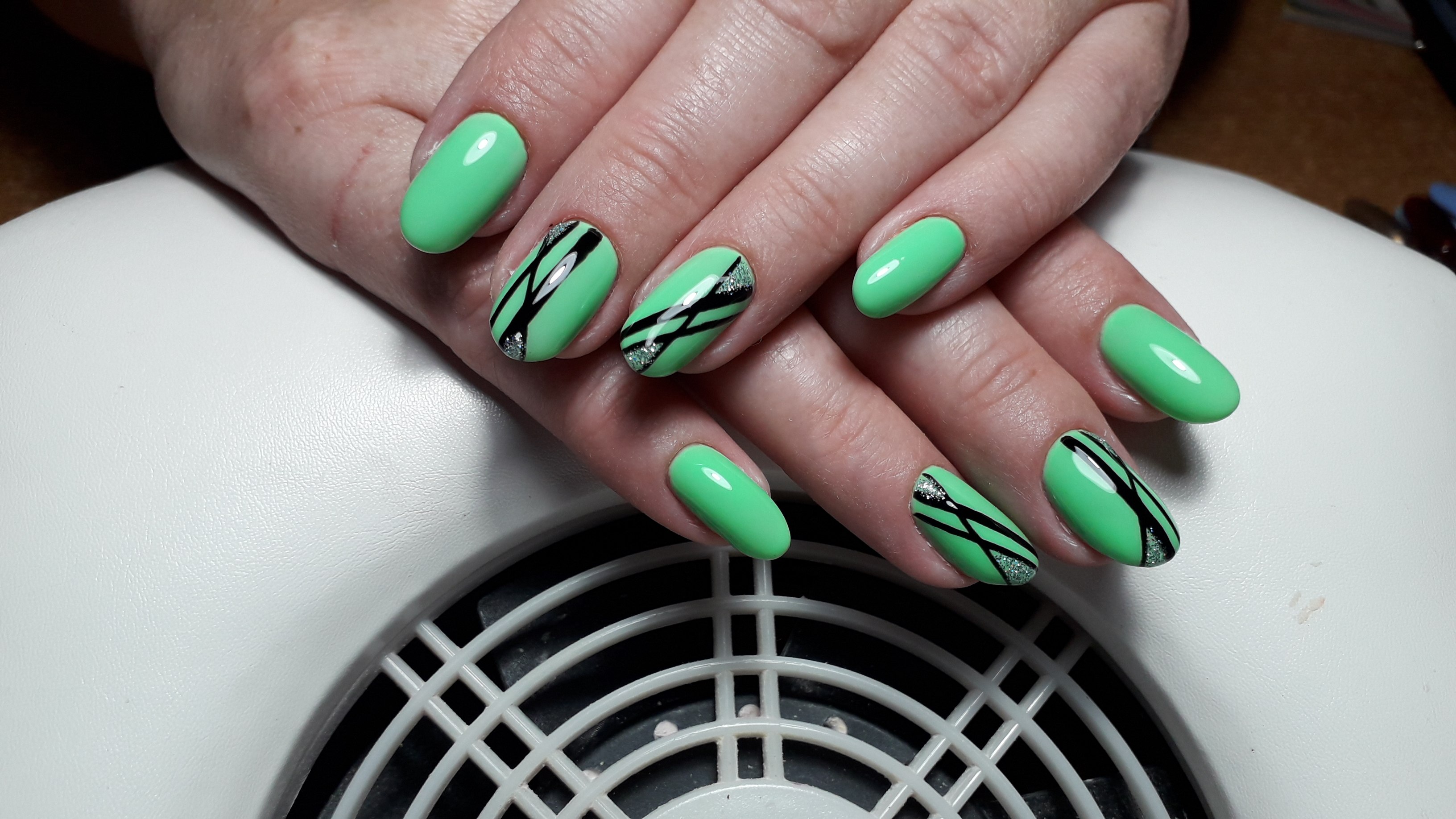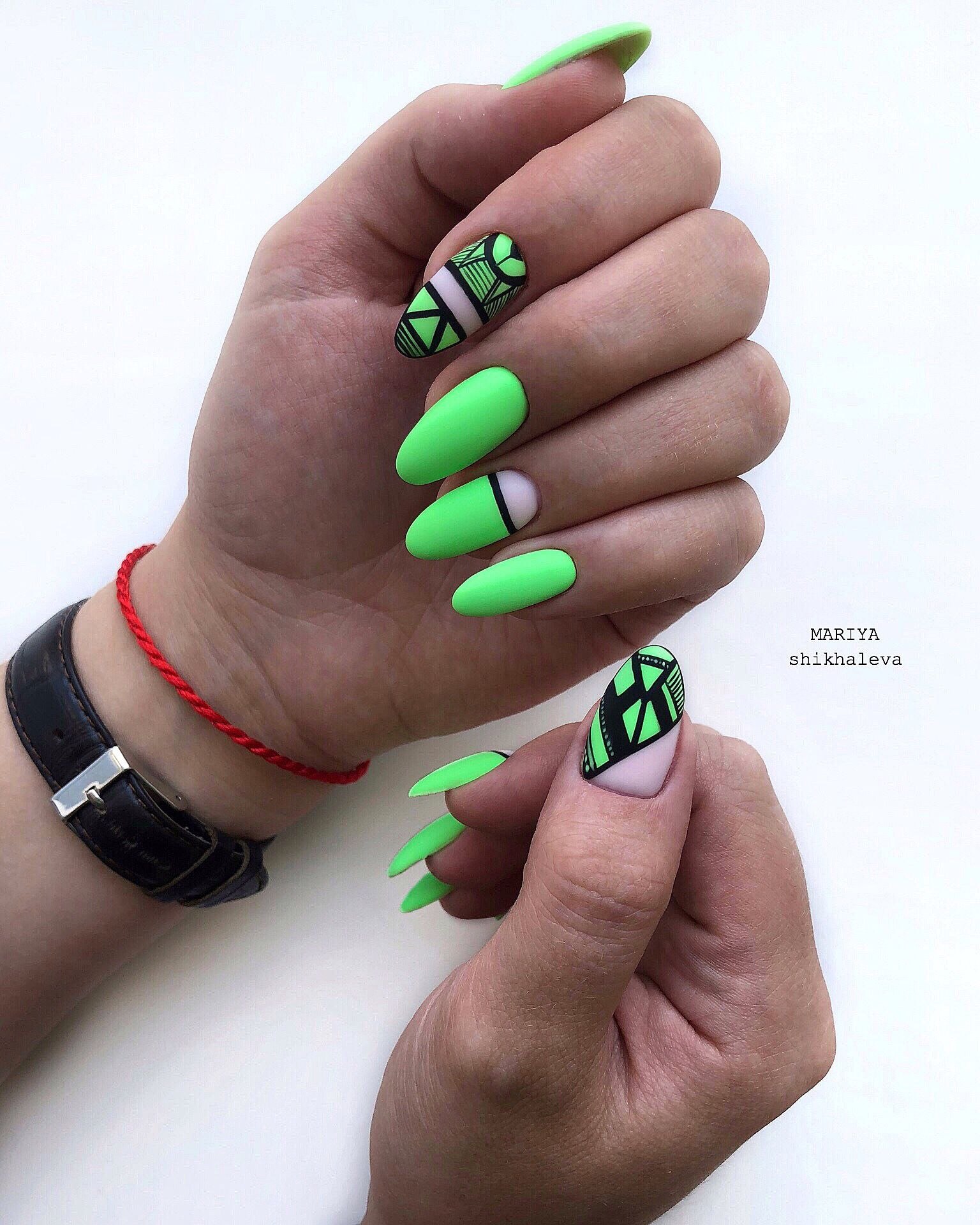 Дизайн геометрия на зеленых ногтях (39 фото)