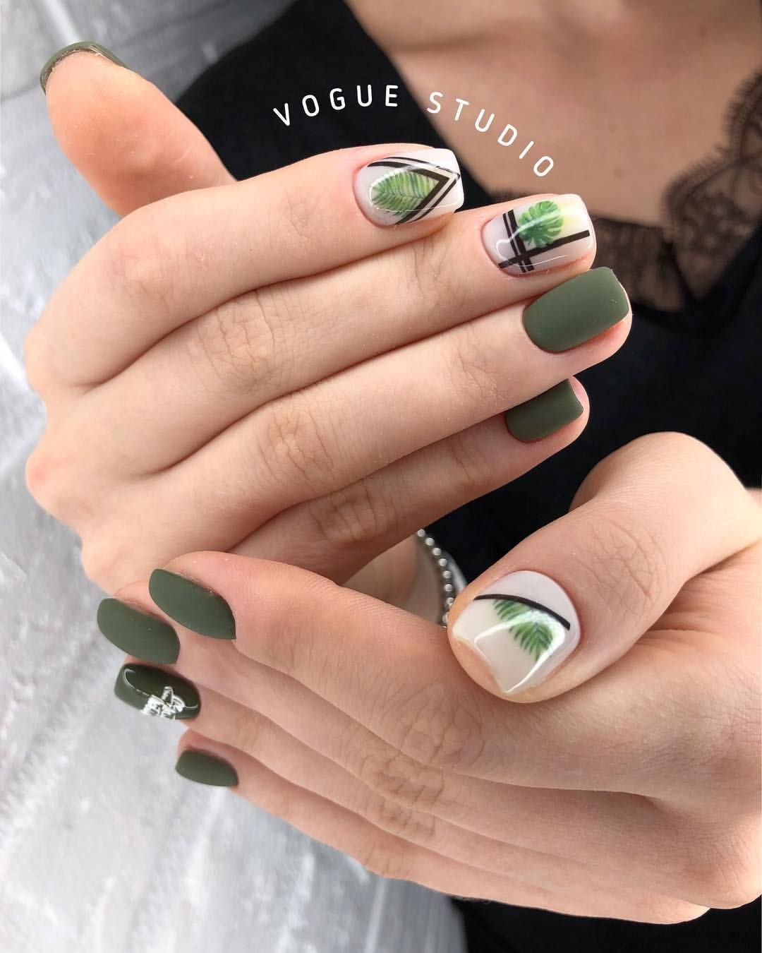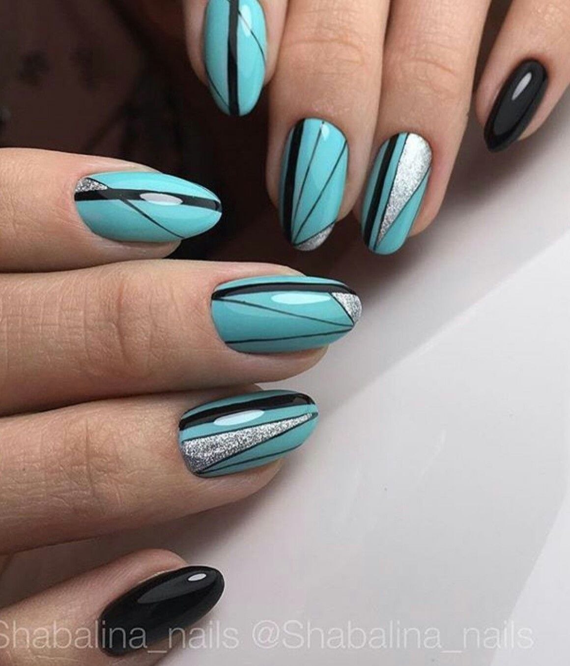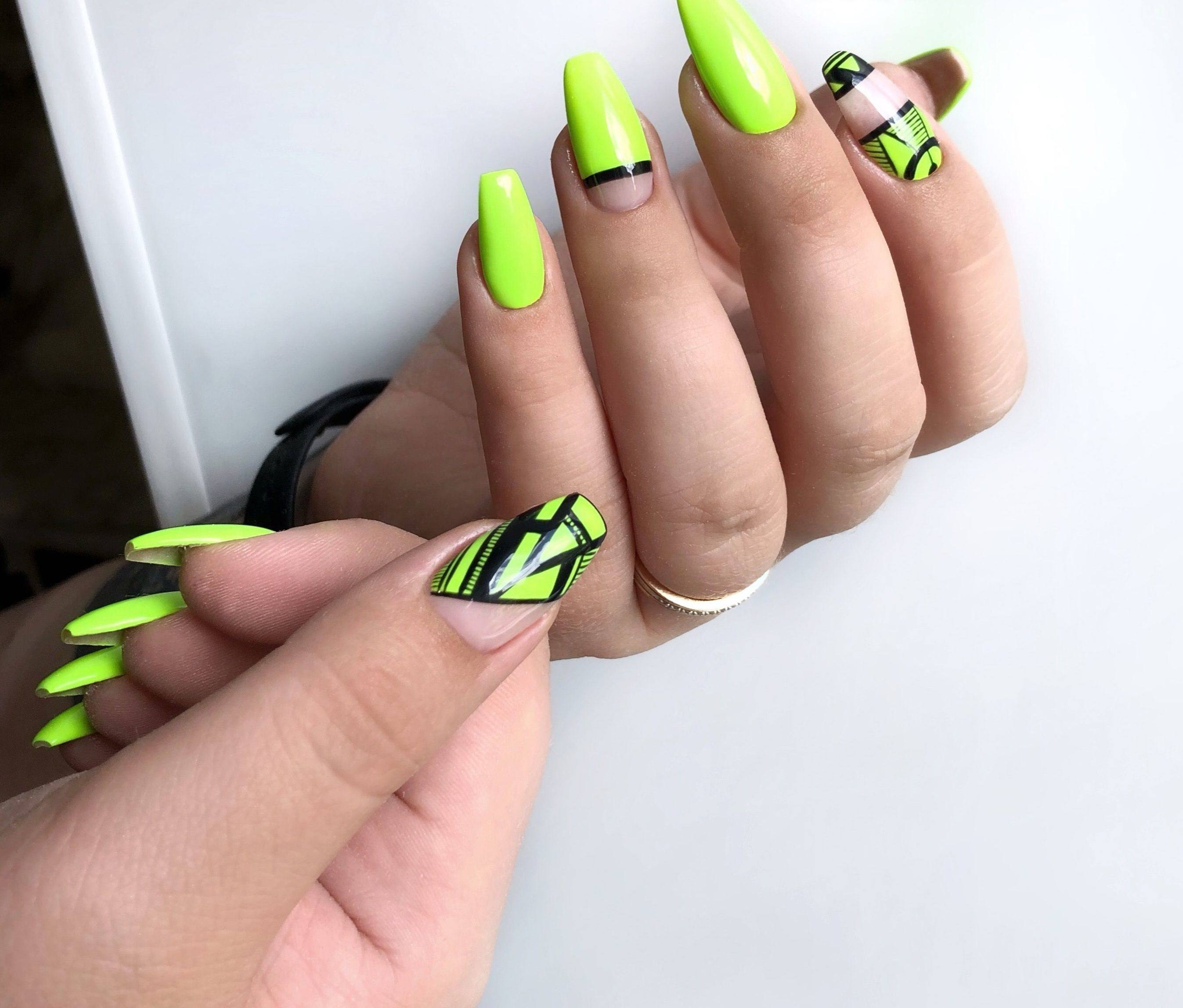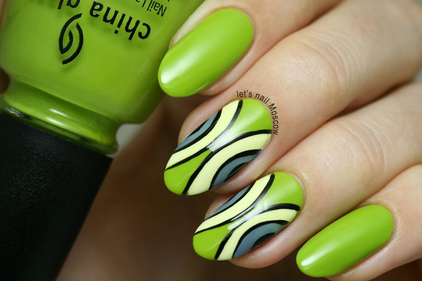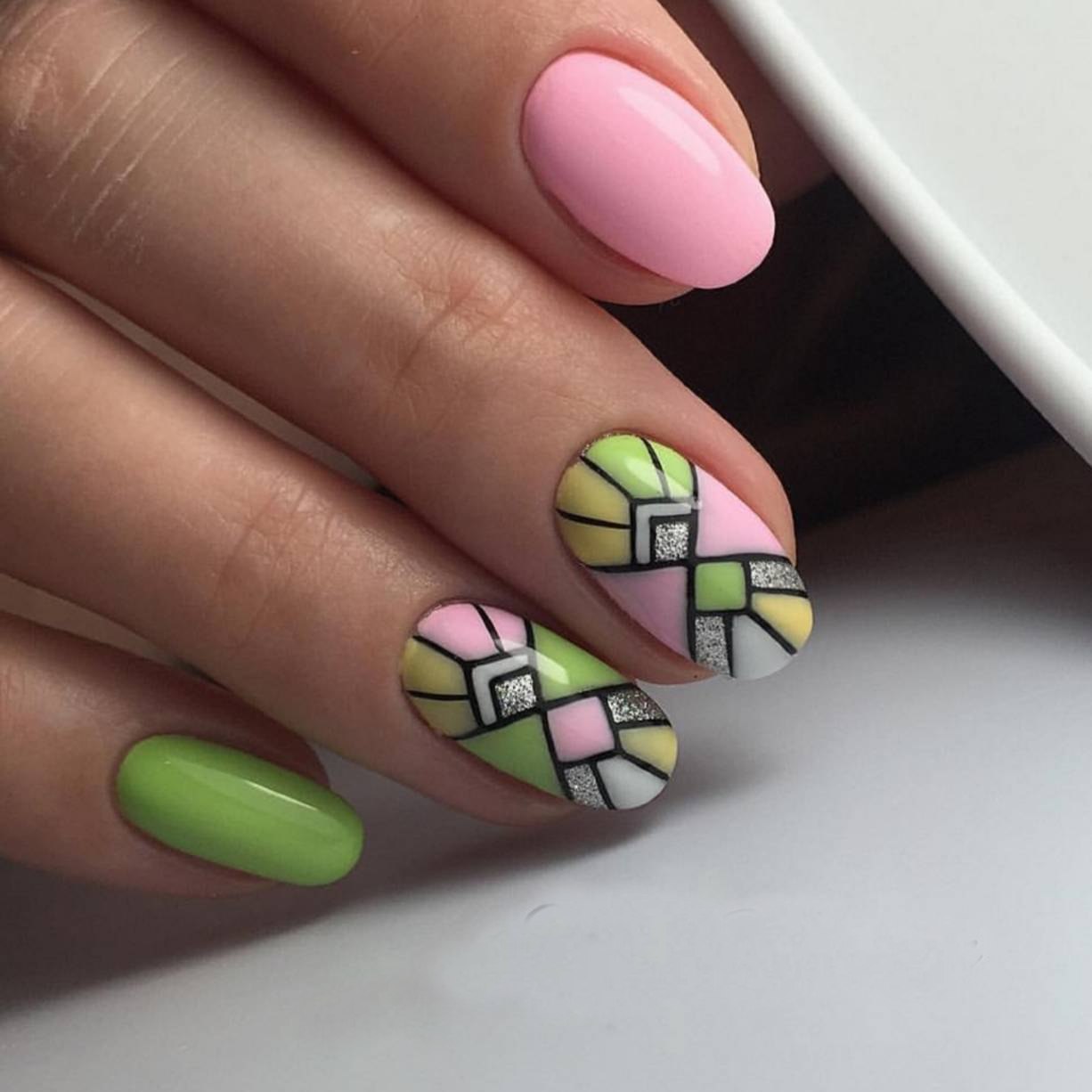 Дизайн геометрия на зеленых ногтях (39 фото)