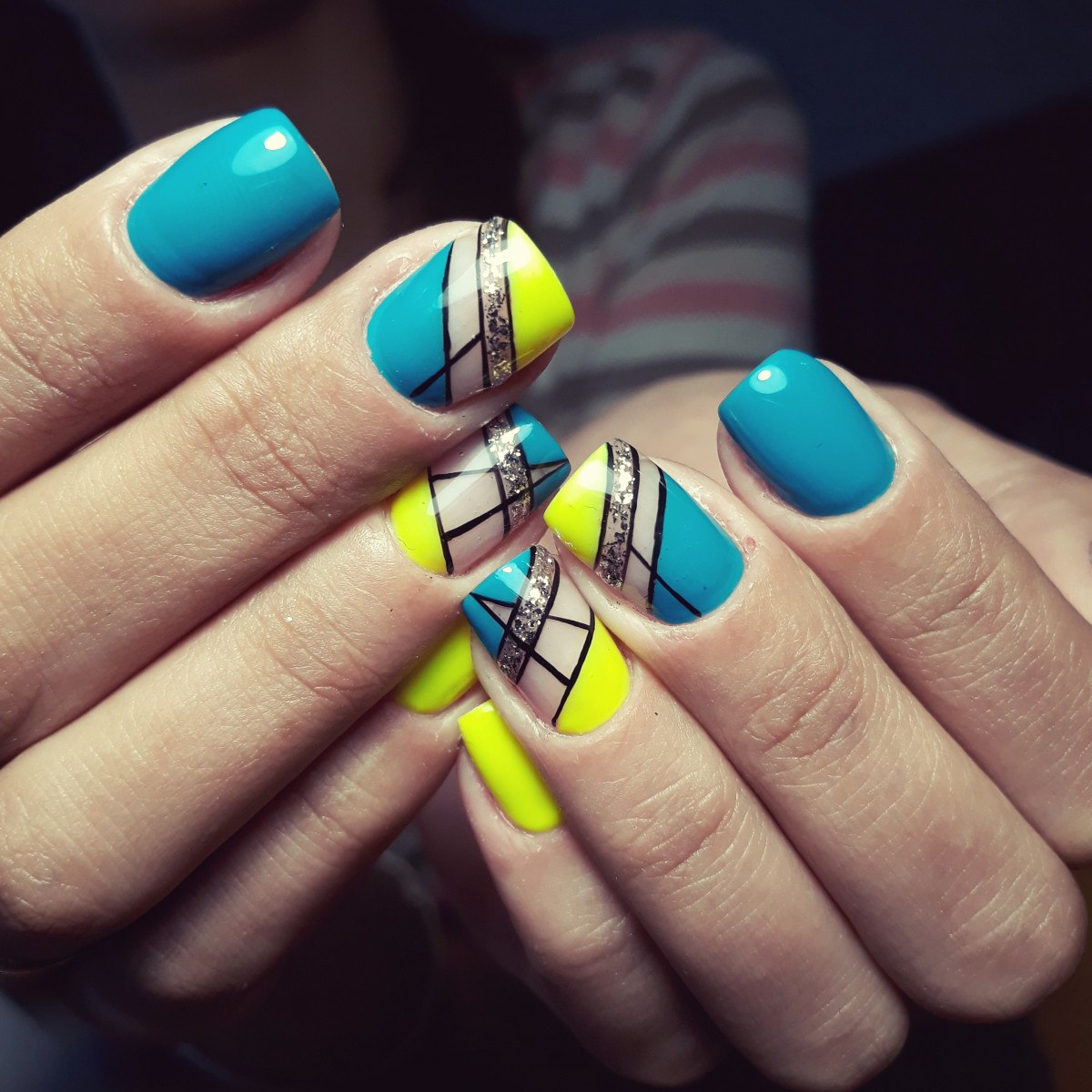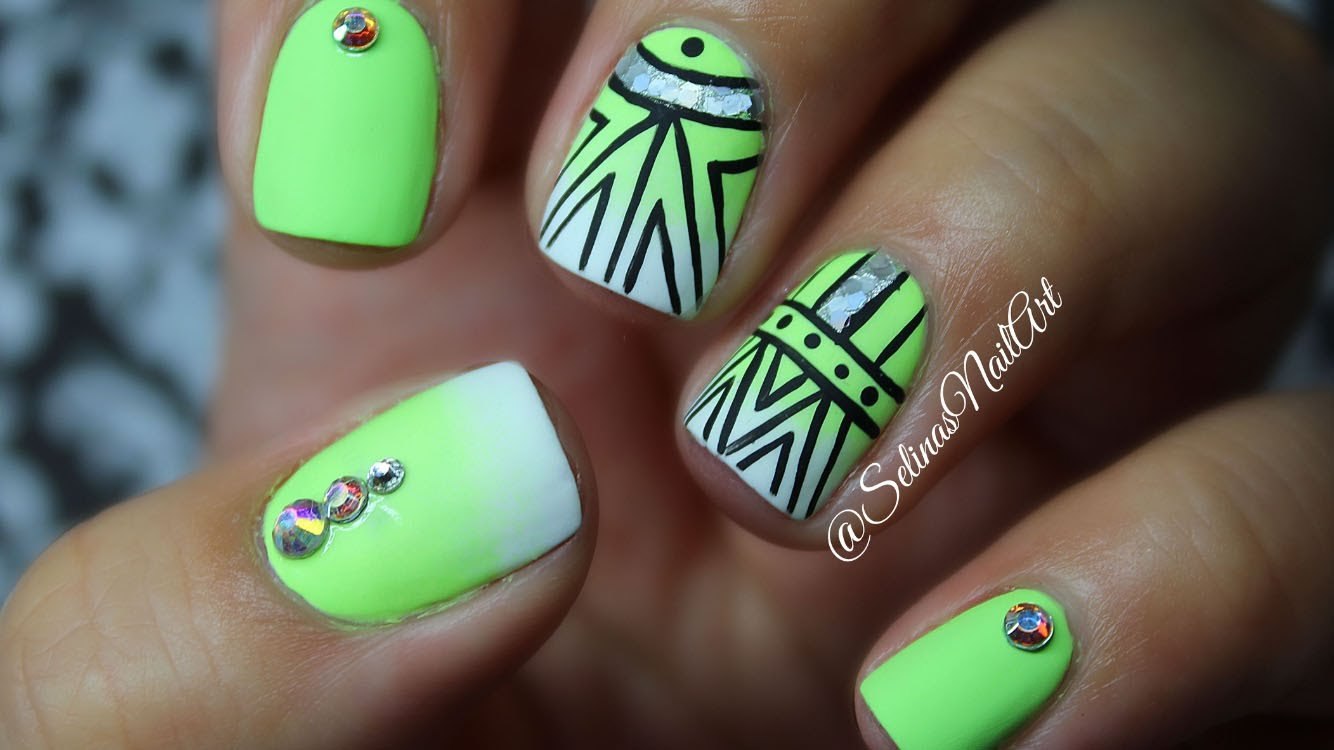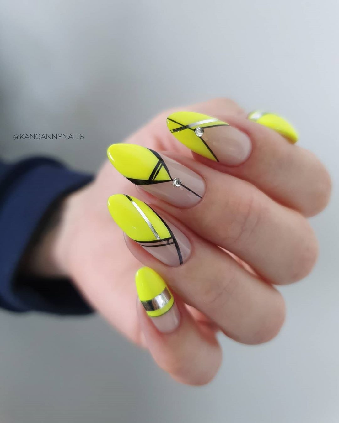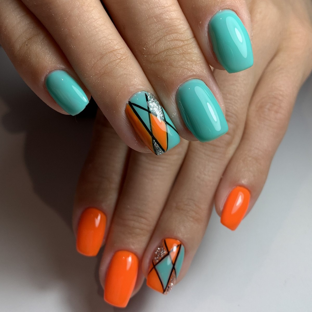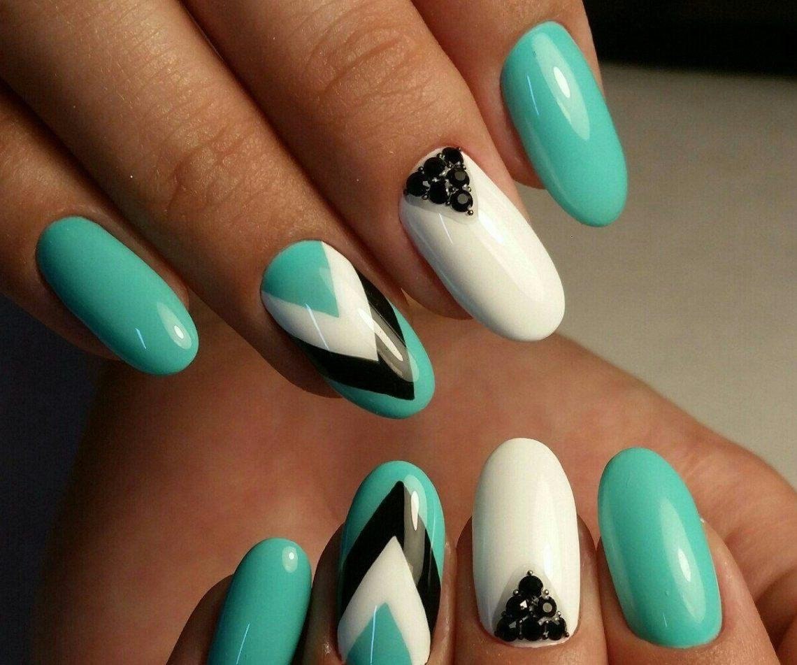 Дизайн геометрия на зеленых ногтях (39 фото)