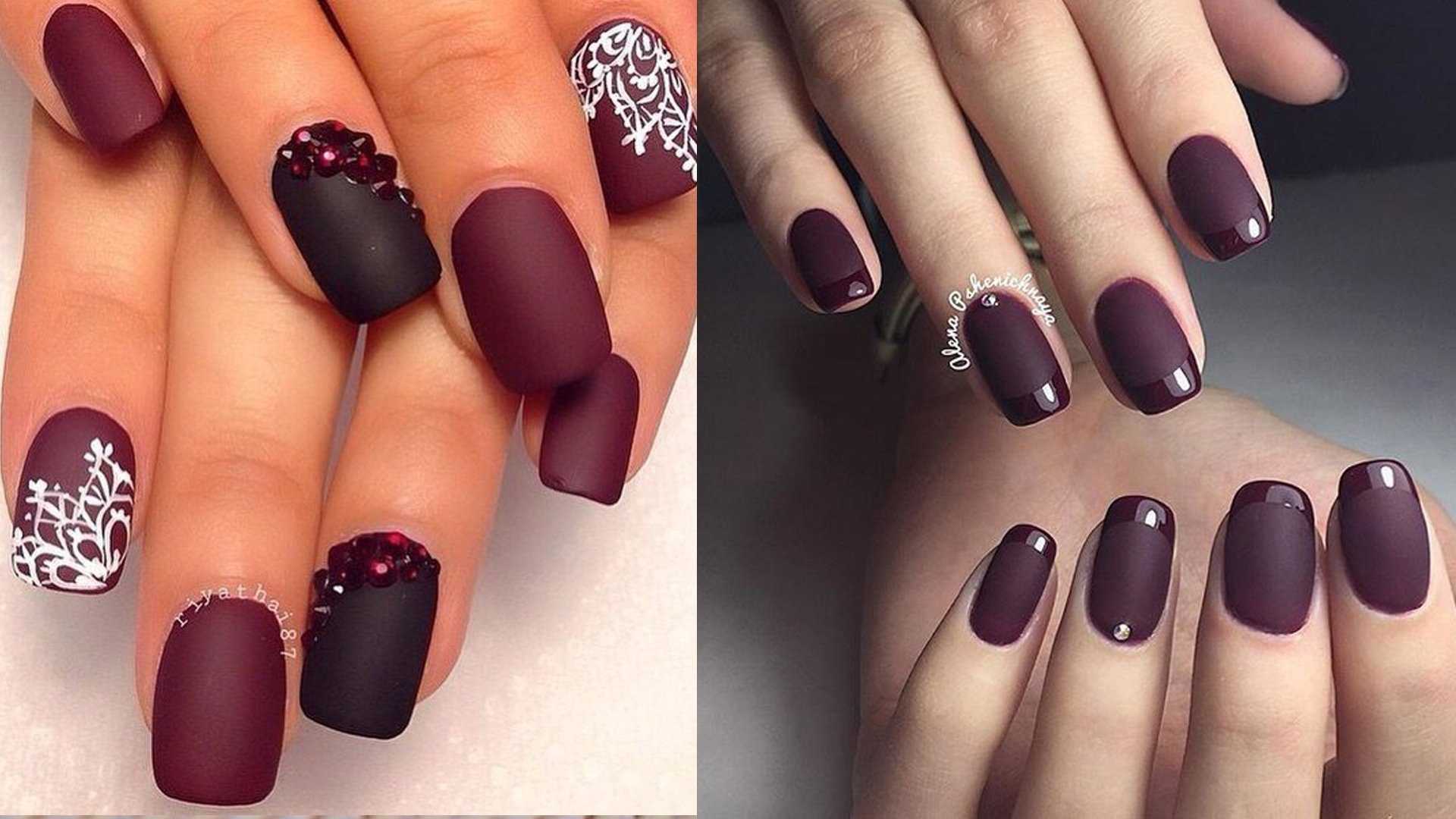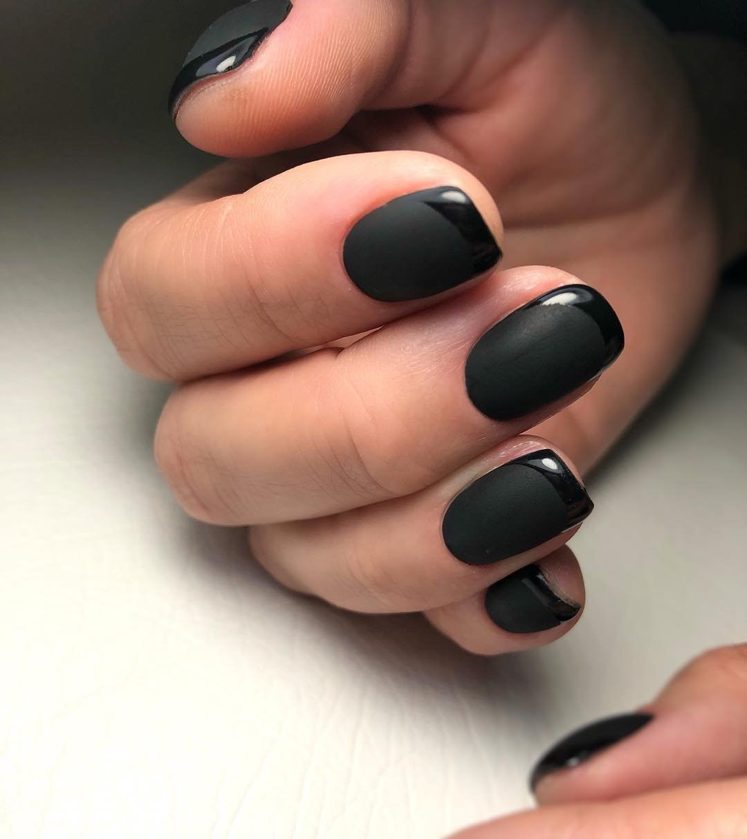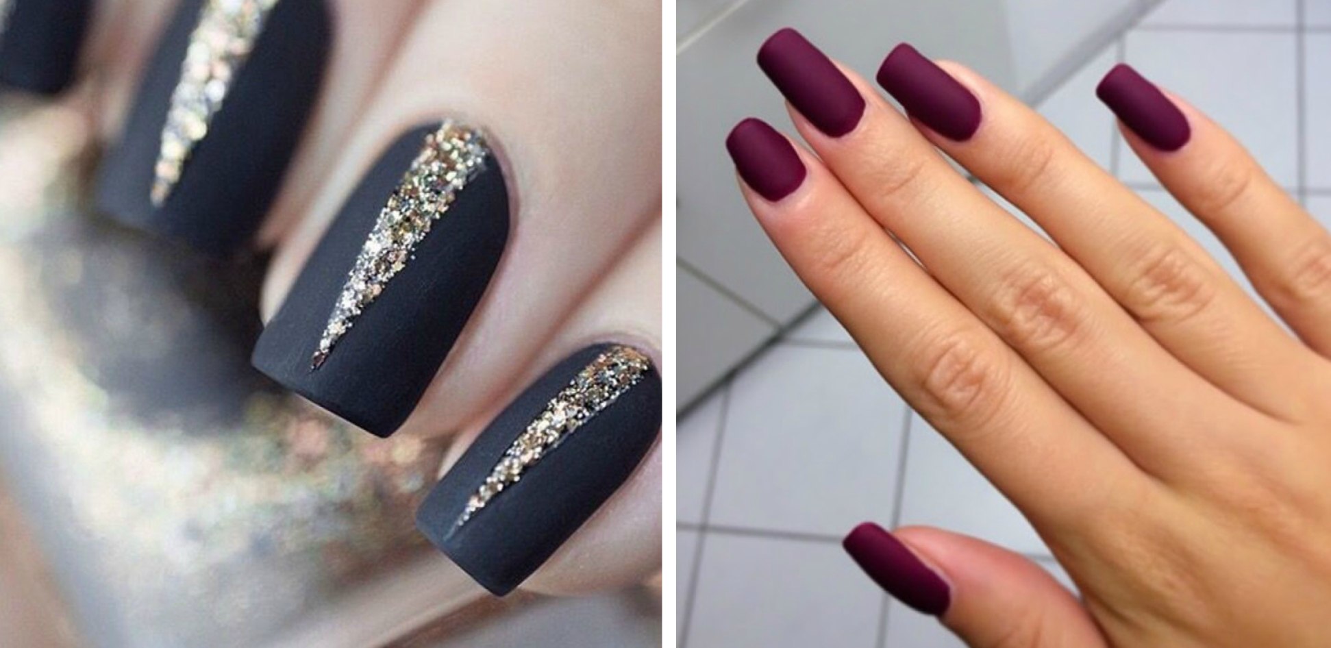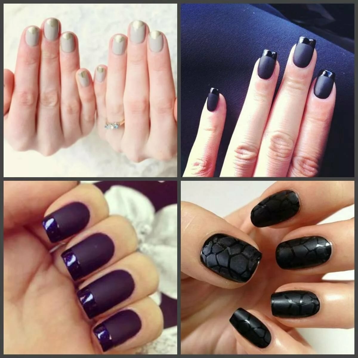 Матовый маникюр с глянцевым дизайном (39 фото)