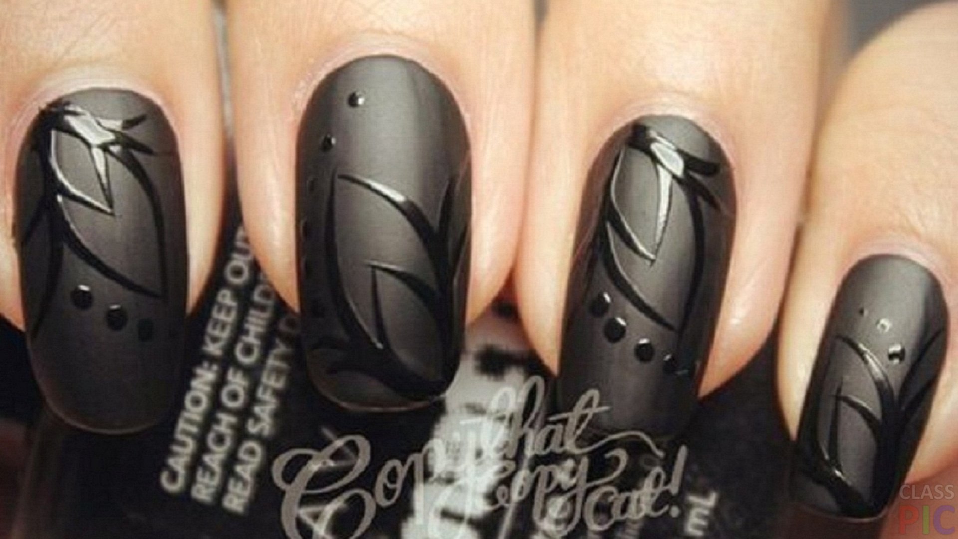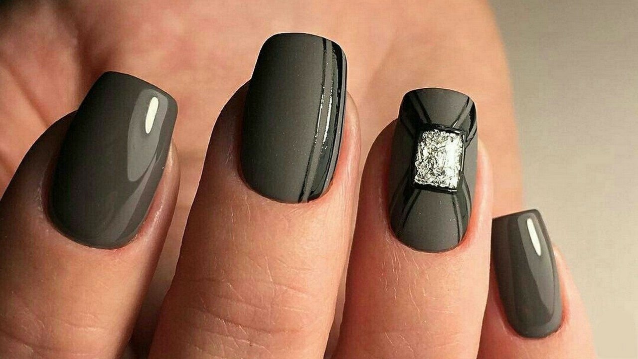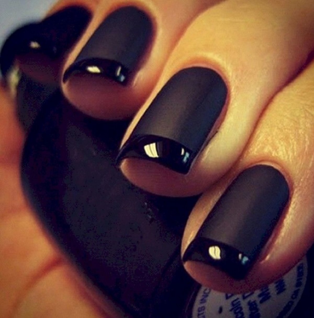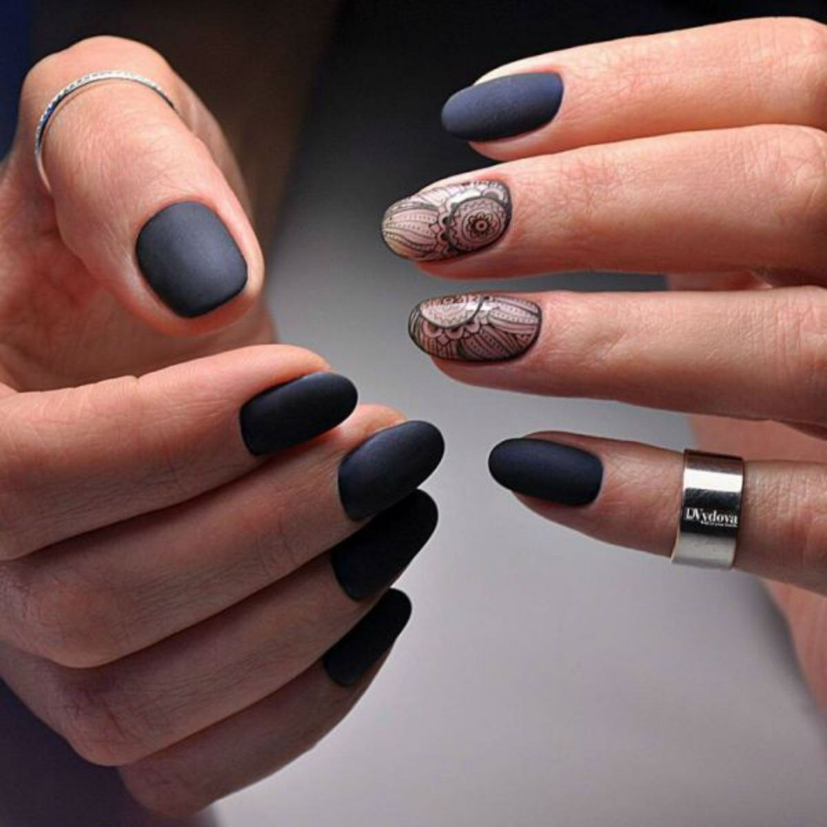 Матовый маникюр с глянцевым дизайном (39 фото)