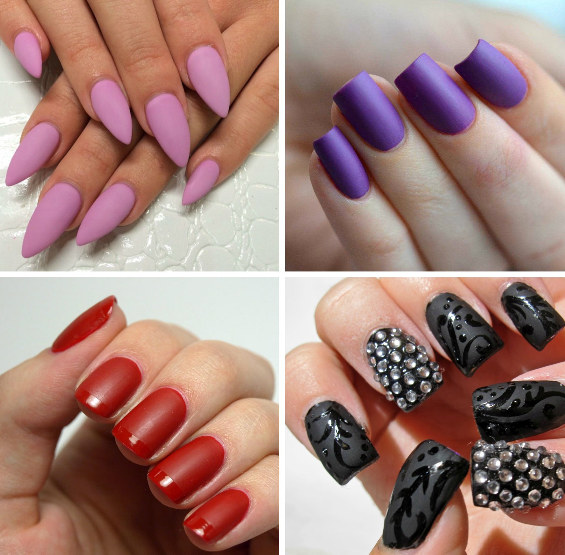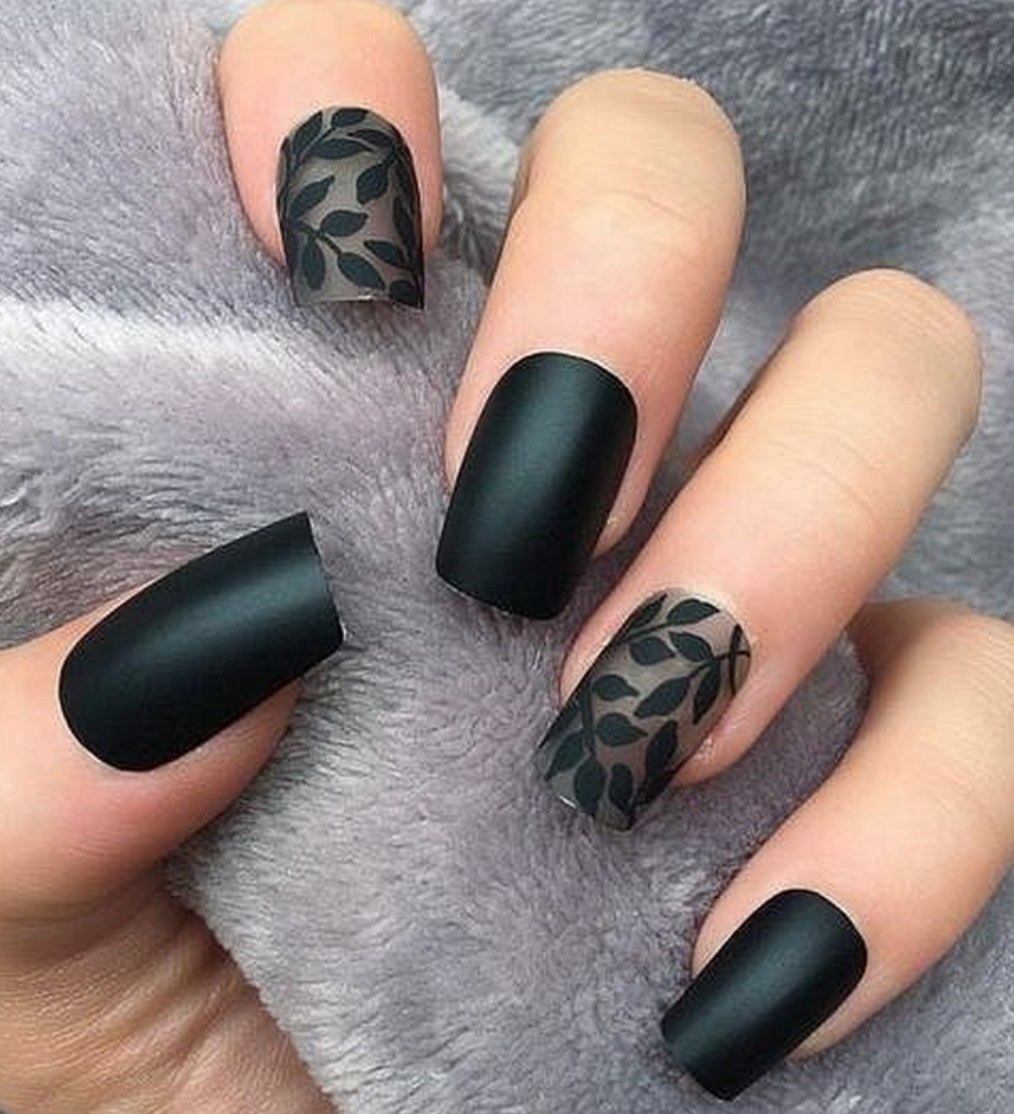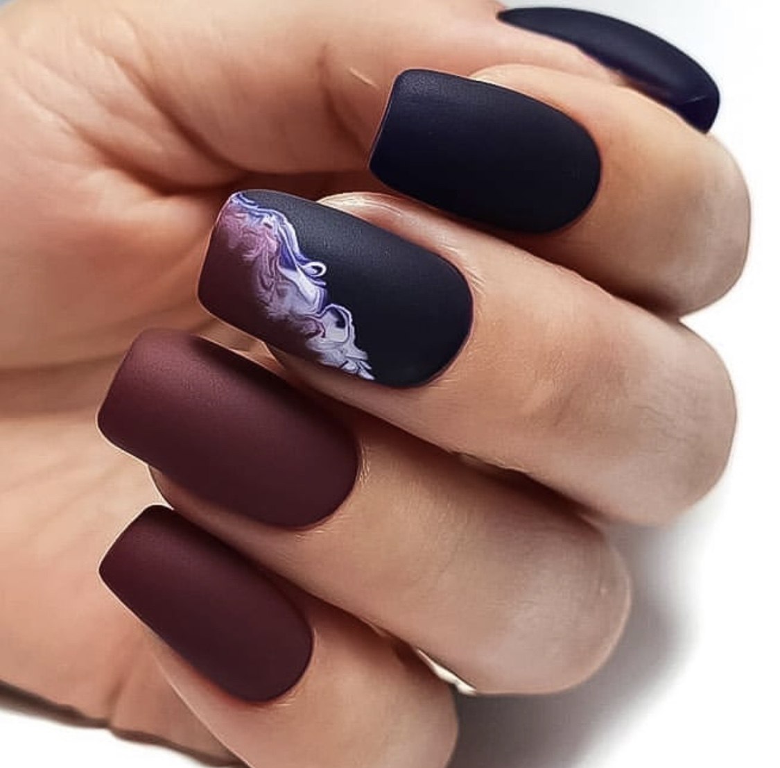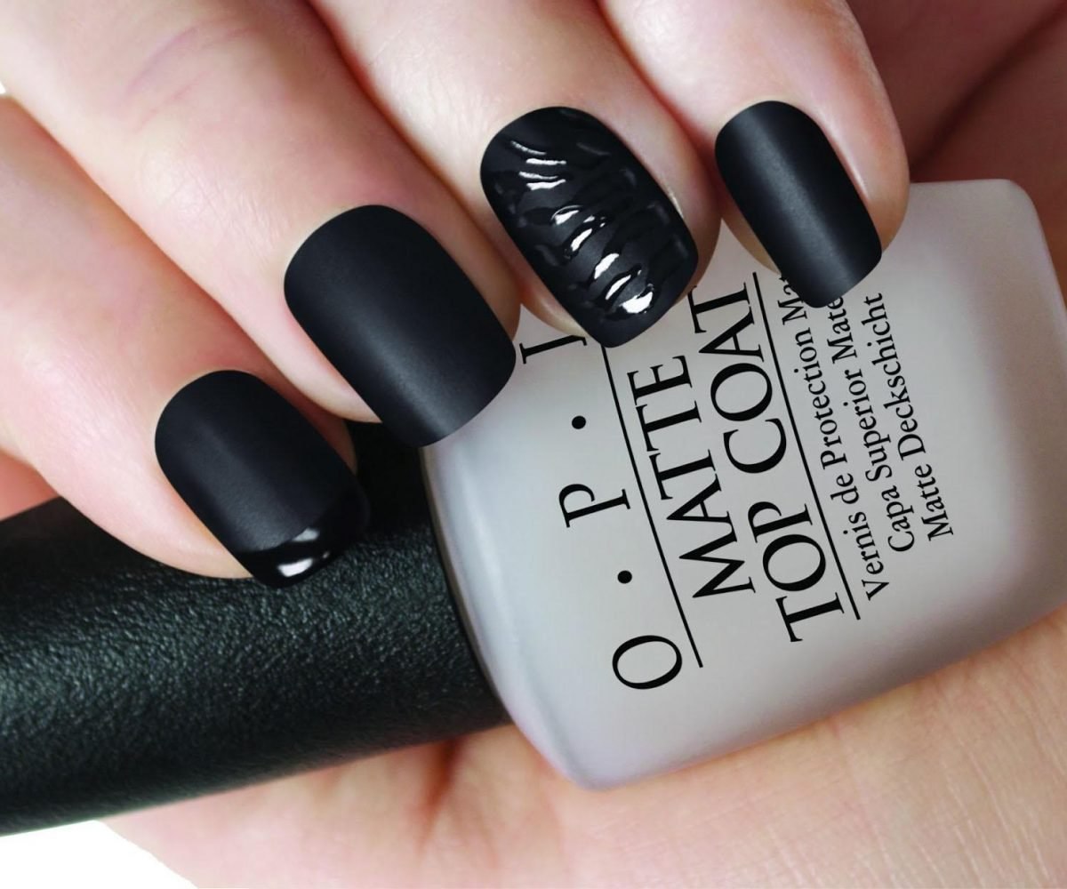 Матовый маникюр с глянцевым дизайном (39 фото)