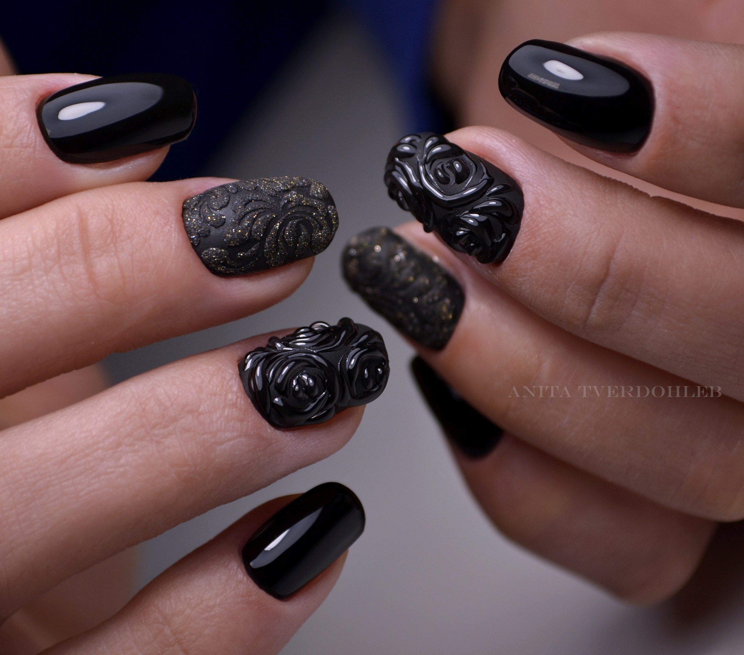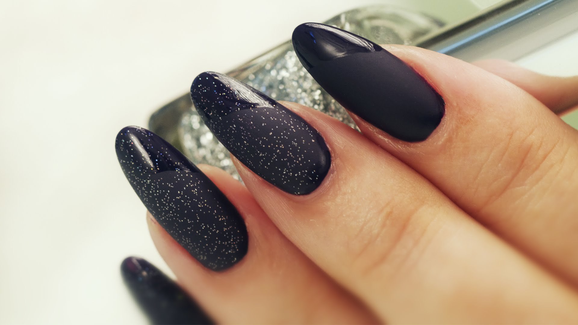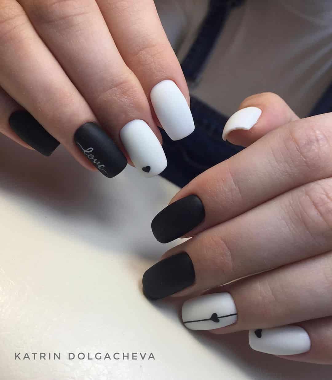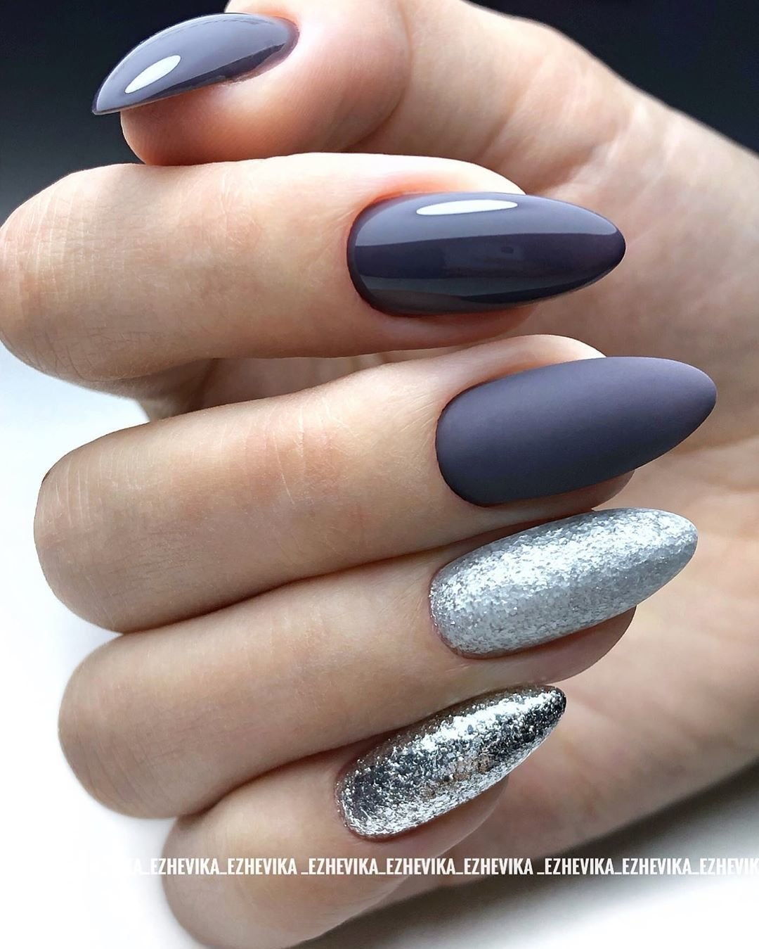Матовый маникюр с глянцевым дизайном (39 фото)