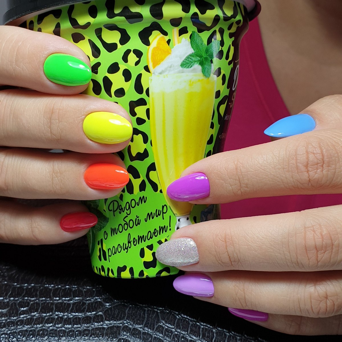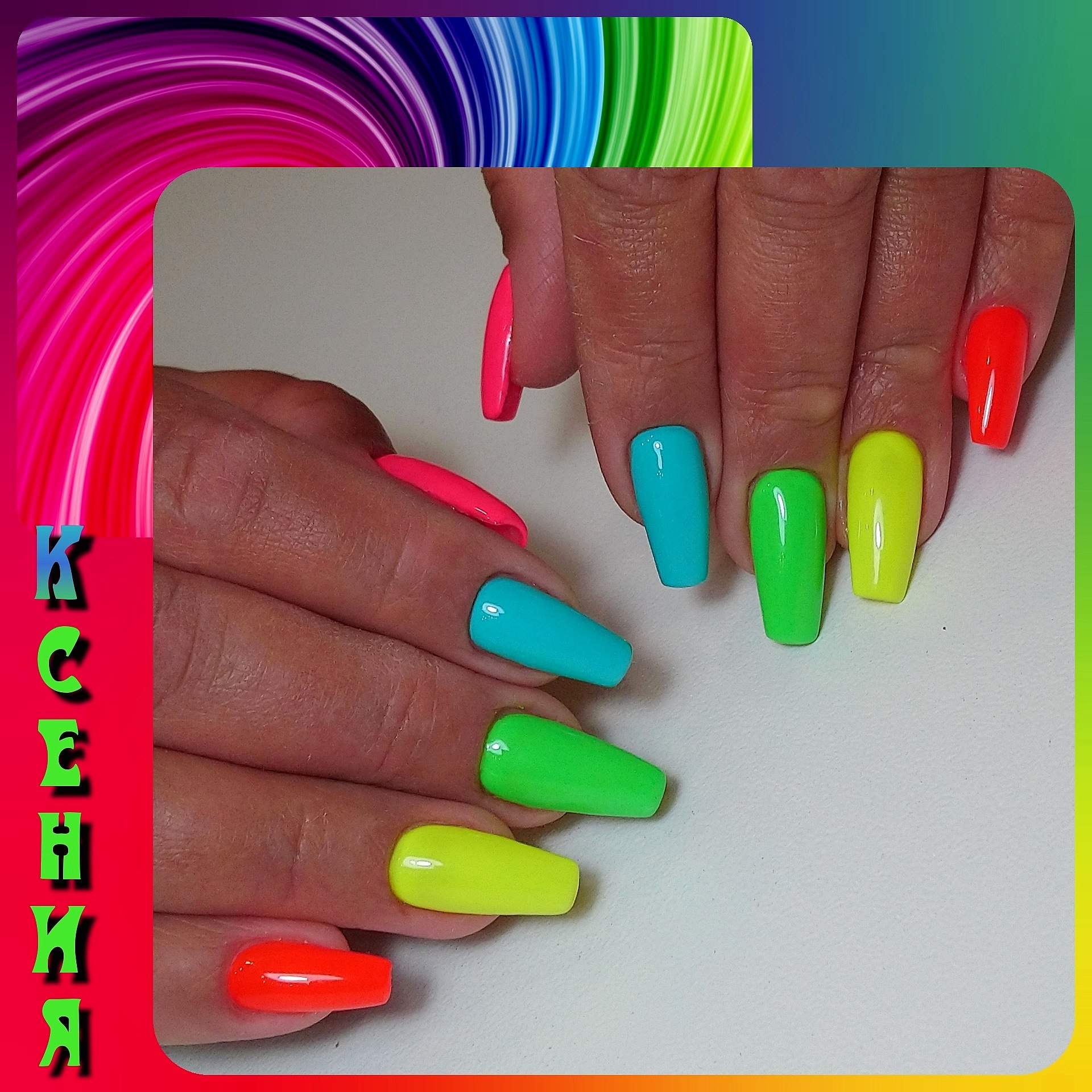 Яркие разноцветные ногти