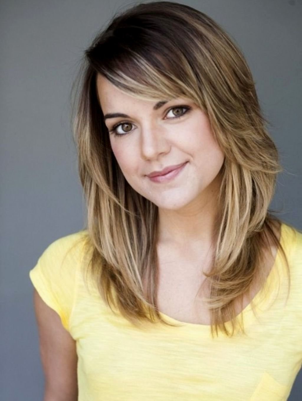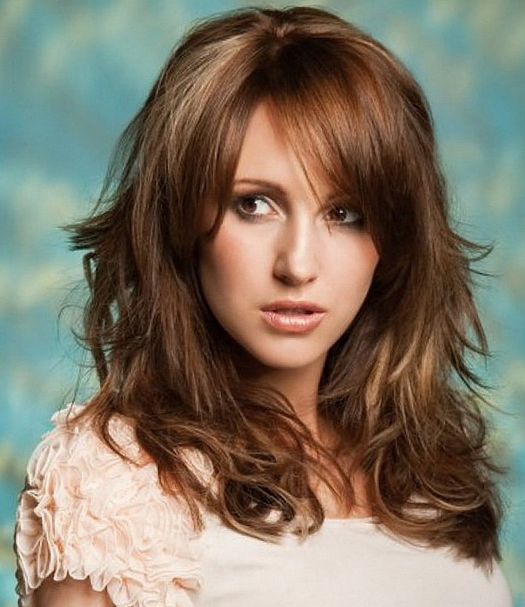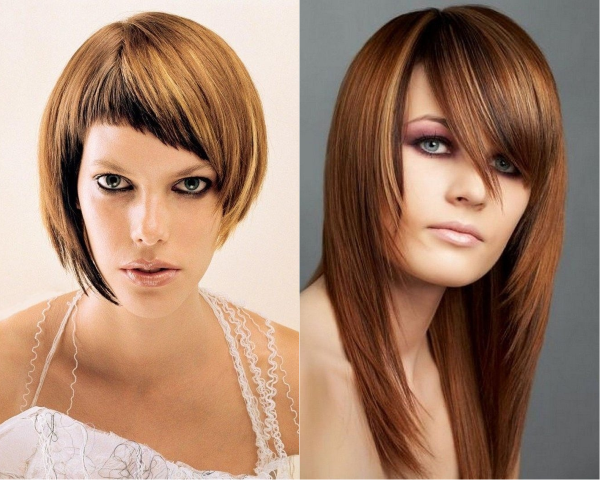 Стрижки Каскад и лесенка на средние волосы с длинной челкой