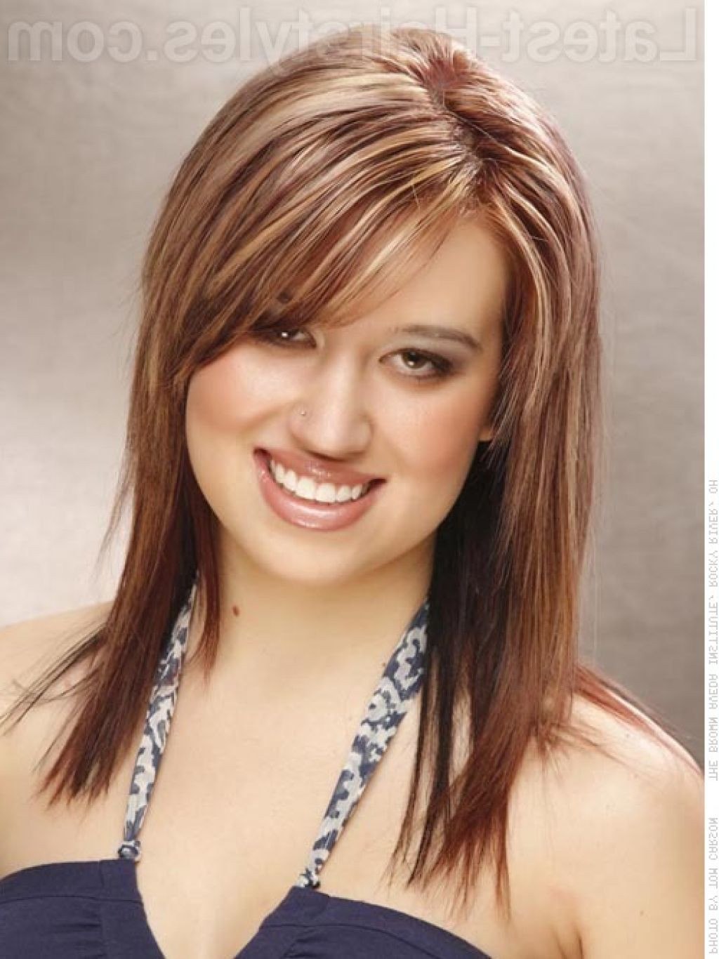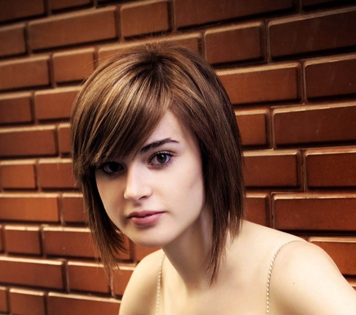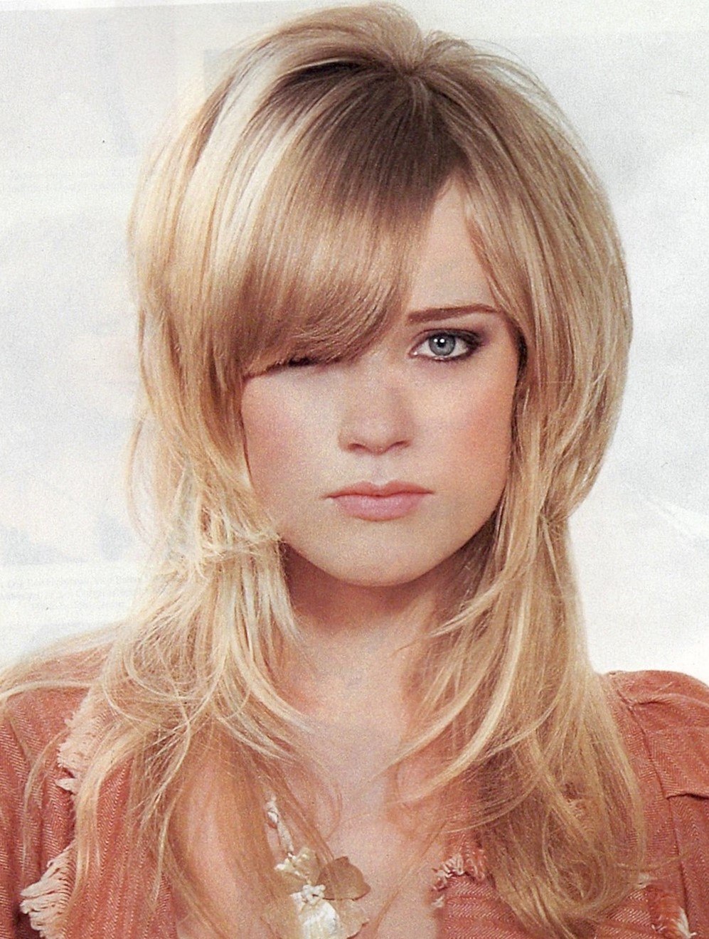 Стрижки Каскад и лесенка на средние волосы с длинной челкой