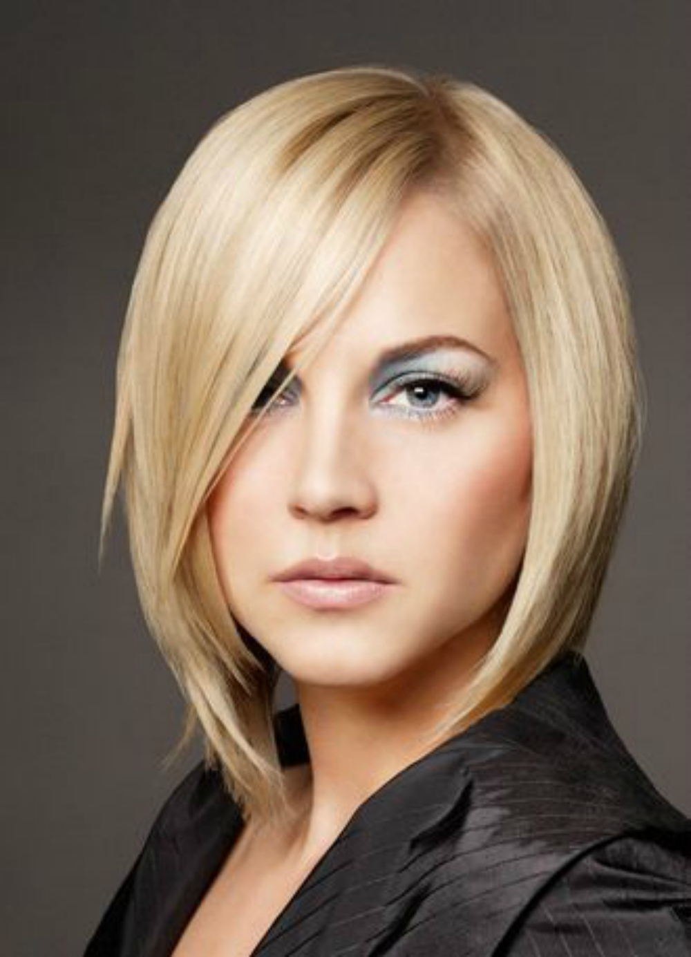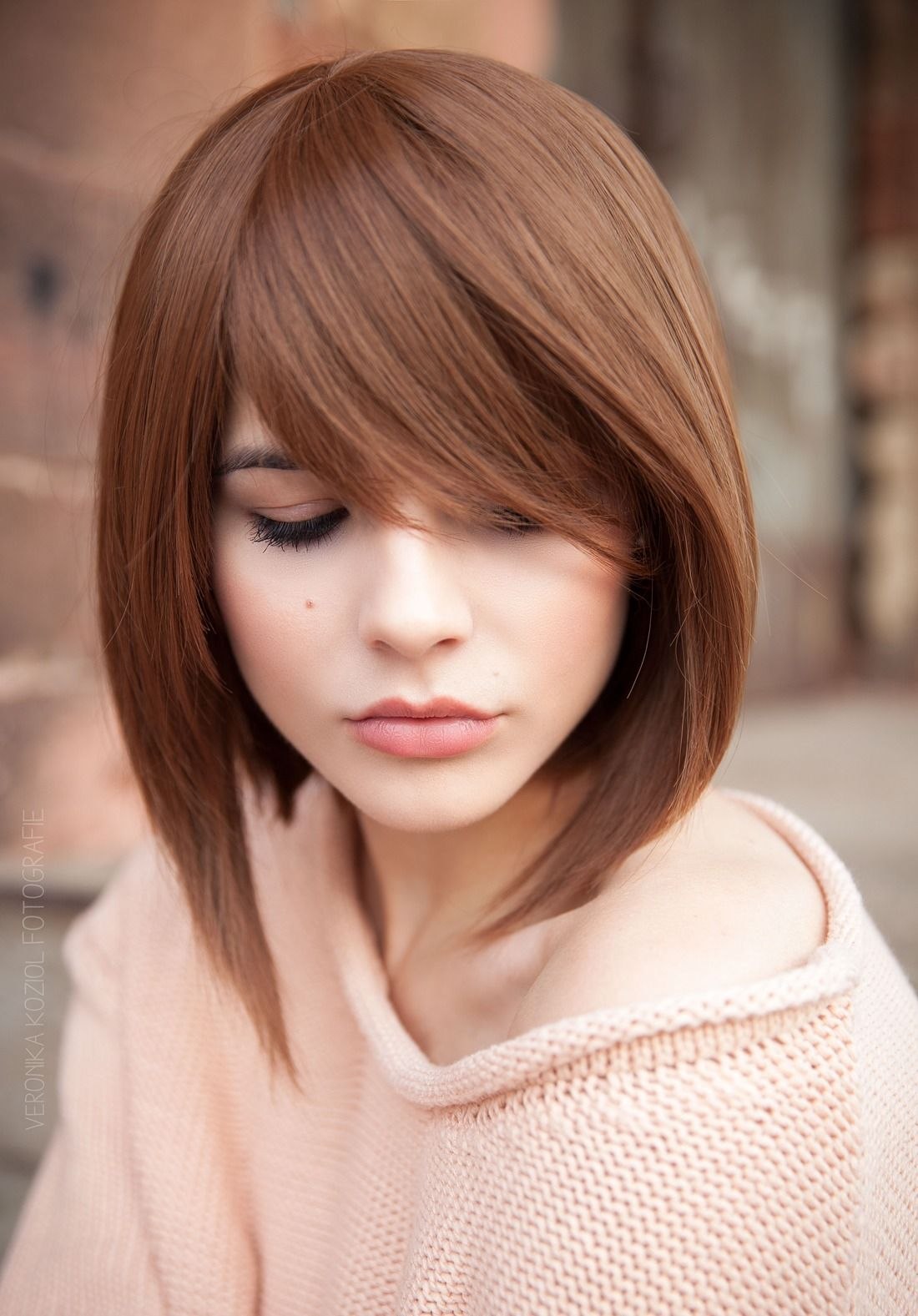 Стрижка Боб с асимметрией на средние волосы с челкой